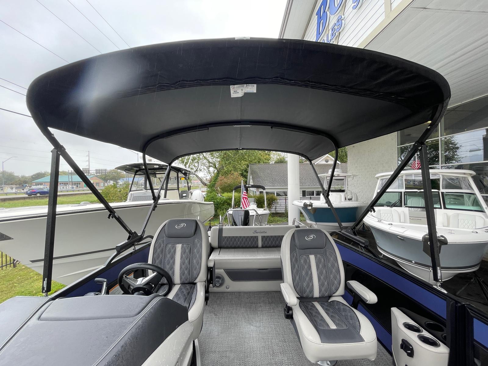 Beyond its recreational appeal, the Barletta Lusso L23UC offers practical benefits that make ownership a breeze. The generous deck space provides plenty of room for storing gear, coolers, and water toys, so you’re always prepared for a day of adventure. The boat’s layout is designed for easy movement and accessibility, making docking and boarding simple and stress-free.Fuel efficiency is another advantage of this pontoon boat, allowing you to spend more time on the water and less time refueling. The Lusso L23UC’s reliable engine and sturdy construction mean you can count on it for years of trouble-free operation, minimizing maintenance and maximizing enjoyment. Whether you’re planning a quick outing or an extended trip, this Barletta boat for sale offers the versatility and convenience you need to make the most of your boating lifestyle.