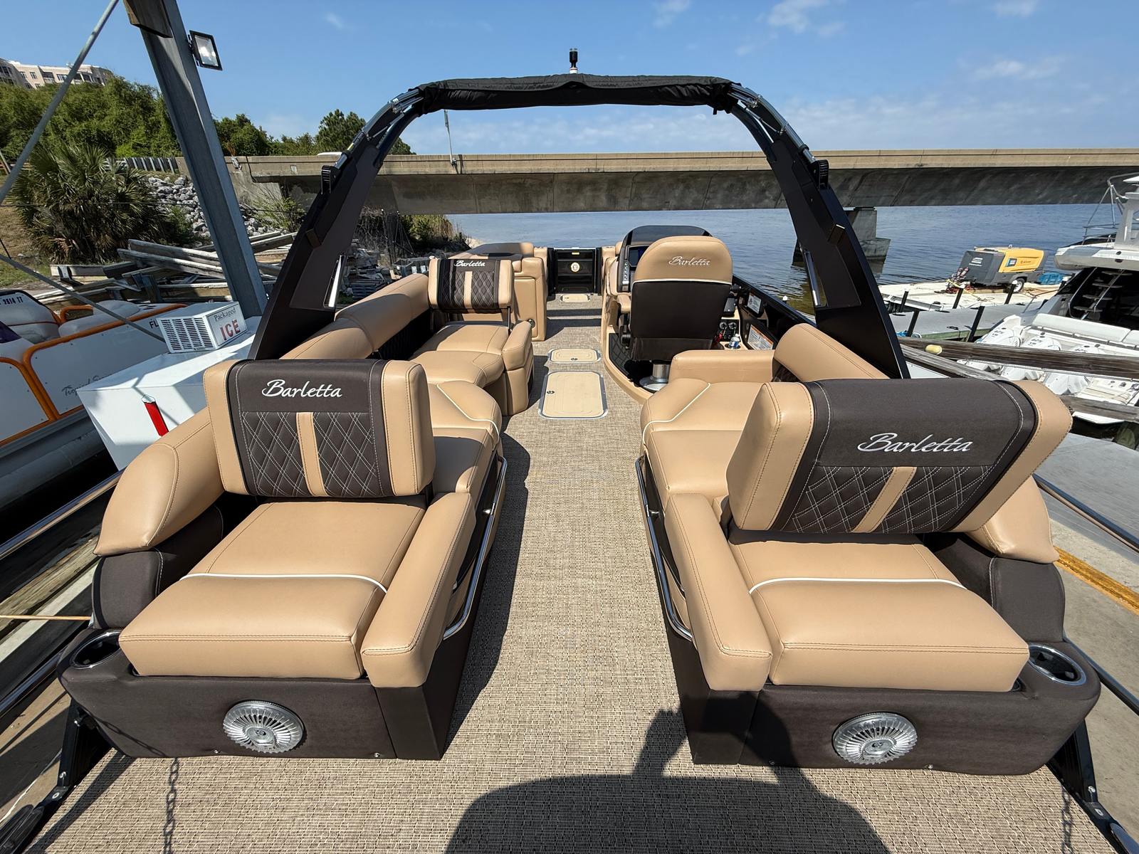 Power and precision come together in the Lusso L25MAT, thanks to its dual engine setup. Equipped with two engines boasting a combined 800 horsepower and only 58 engine hours, this pontoon boat offers exhilarating acceleration and smooth cruising. Whether you’re gliding across calm waters or powering through waves, the Lusso L25MAT delivers a responsive and enjoyable ride. The advanced engineering ensures reliable performance, making every outing on this Barletta boat for sale a thrilling adventure.