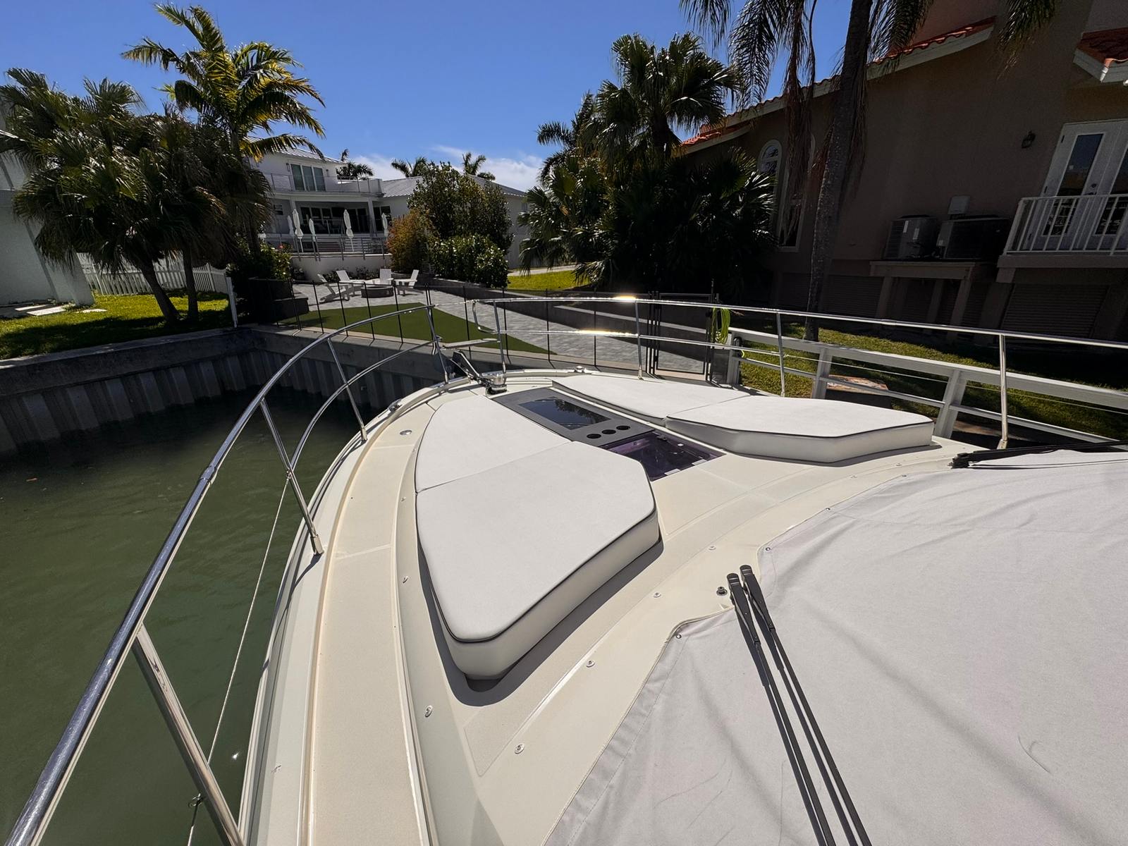 The result is an exterior that looks crisp, fresh, and exceptionally well cared for across the cockpit, bow, and flybridge.