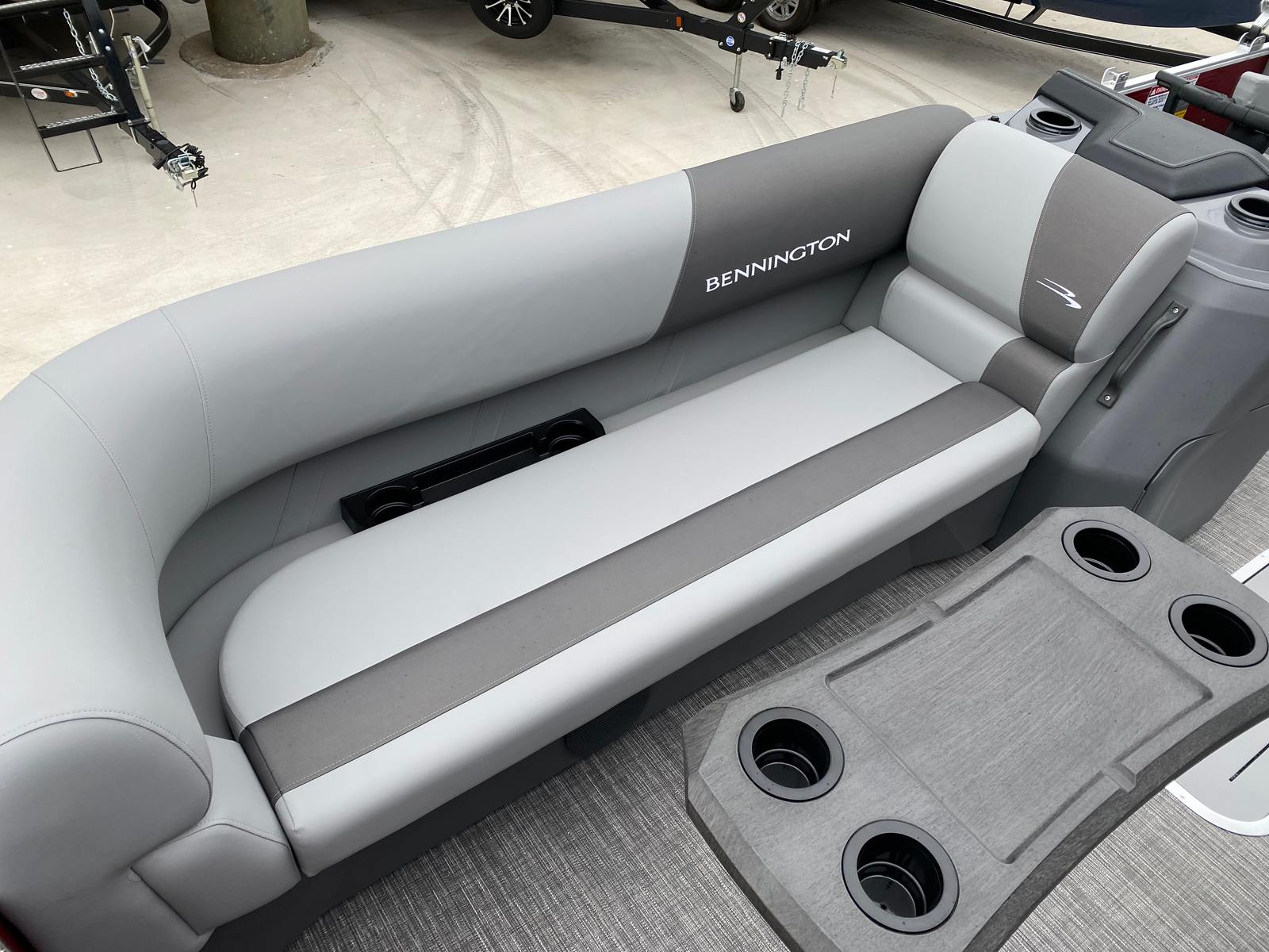 Step aboard the Bennington 20 Svsr SPS and discover a host of special features designed to elevate your boating experience. The boat is equipped with a single battery switch with fuse, ensuring reliable power management and safety. Navigation and fish finding are made effortless with the integrated Garmin Echomap, providing clear and accurate data for confident exploration. The base furniture is adorned with Simtex upholstery, offering plush comfort and durability for long days on the water.Aesthetically, the boat boasts striking Rossa Red panels and matching canvas, complemented by base and accent colors in Shadow Grey and Carbon. The Ironwood dash accent adds a touch of sophistication to the helm, while the Grano Shadow Grey Full flooring provides a stylish and easy-to-clean surface. In-floor storage offers convenient space for stowing gear, water toys, or personal items, keeping the deck clutter-free and organized.