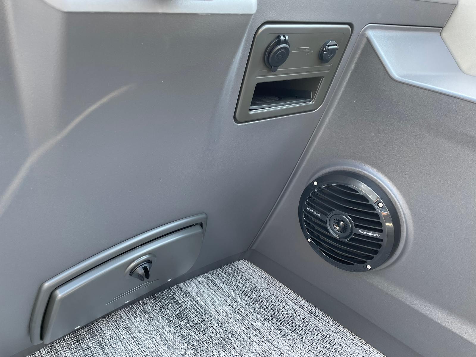 At the heart of the Bennington 21 SSB SPS is a powerful 150 HP 4 Stroke Mechanical engine, equipped with an internal hydraulic cylinder and a 25-inch shaft. This setup delivers impressive acceleration, smooth handling, and reliable performance, whether you are cruising at a leisurely pace or towing water sports enthusiasts. The SPS Performance Package, featuring a 33-gallon transom direct fill, enhances the boat’s agility and stability, ensuring a smooth ride even in choppier waters. With a single engine configuration, maintenance is straightforward, and the 150 horsepower provides the perfect balance of power and fuel efficiency for a wide range of activities.