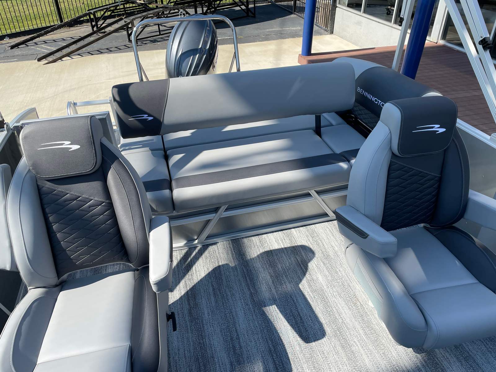 Owning the Bennington 21 SSB SPS pontoon boat means embracing a lifestyle of fun, relaxation, and adventure. The generous seating and open deck layout make it ideal for hosting gatherings, whether you are celebrating a special occasion or simply enjoying a sunny afternoon with loved ones. The premium upholstery and ergonomic seating provide unmatched comfort, allowing you to unwind and soak in the scenery.The advanced engineering and performance features ensure that every outing is smooth and enjoyable, with responsive handling and plenty of power for a variety of activities. The wireless charger and intuitive controls add modern convenience, making it easy to stay connected and in control while on the water. With its eye-catching design and luxurious finishes, this Bennington boat for sale is sure to impress both guests and fellow boaters alike.
