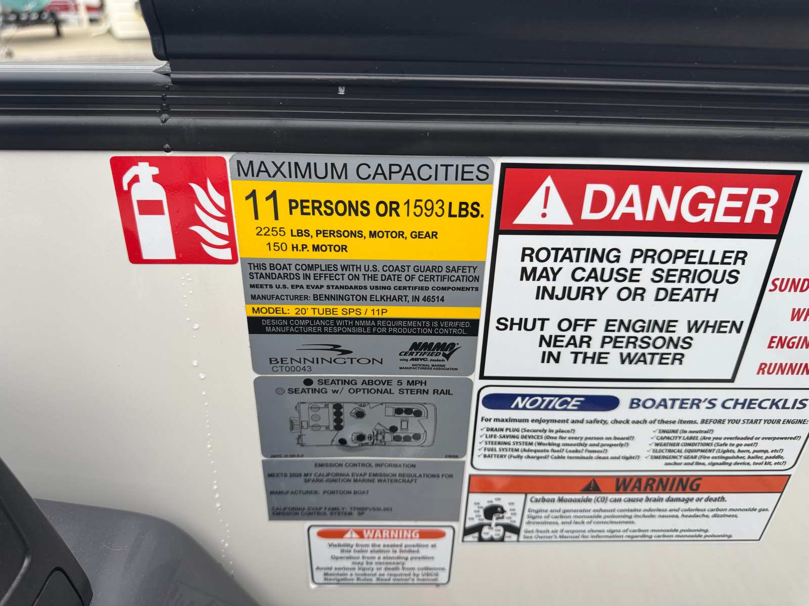 In summary, the 2026 Bennington 21 SSB SPS Pontoon is a remarkable blend of style, performance, and versatility. With its powerful Suzuki DF150ATXW5 engine, advanced water fuel separator systems, single switch battery, and eye-catching design elements like blackout logos and smooth metallic white panels, this Bennington boat for sale stands out as a premier choice for anyone seeking a new pontoon boat for sale. The spacious layout, practical features, and luxurious touches make it perfect for family outings, social gatherings, and relaxing escapes. Don’t miss your chance to experience the ultimate in pontoon boating – contact your local dealer today to learn more about the Bennington 21 SSB SPS and start your next adventure on the water.
