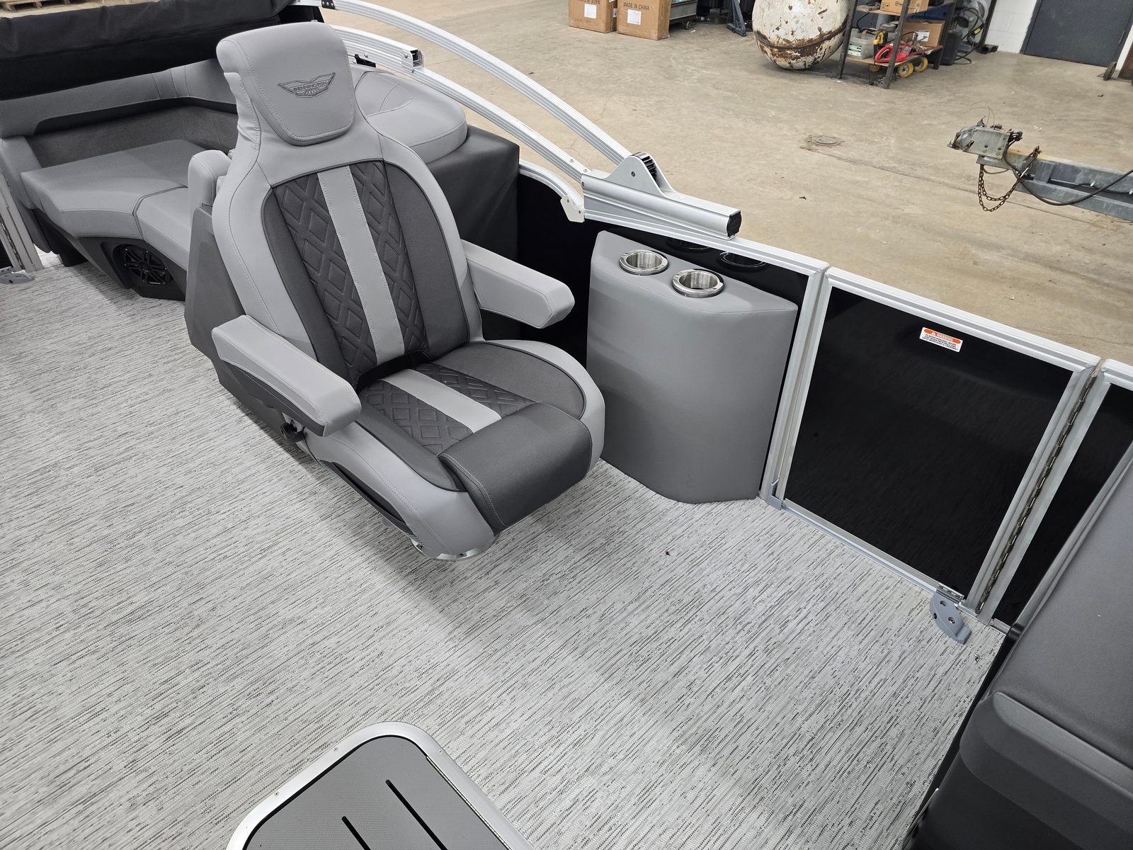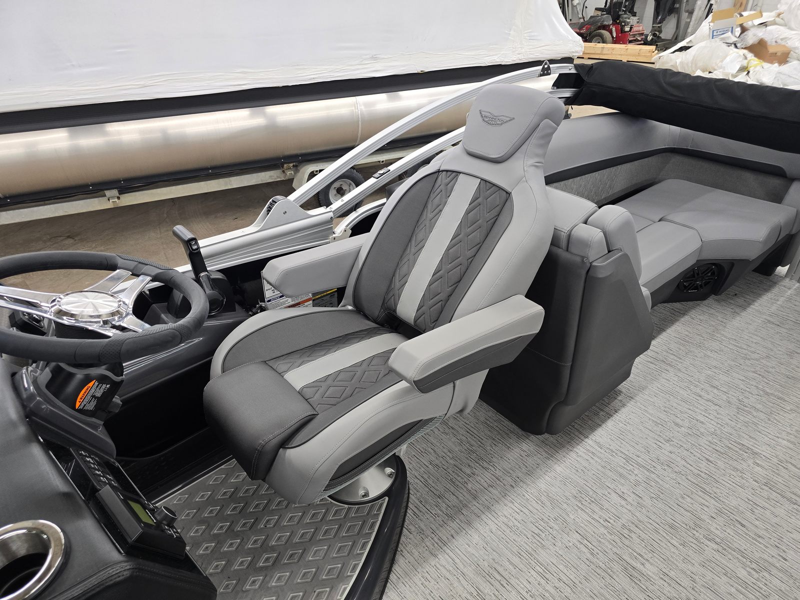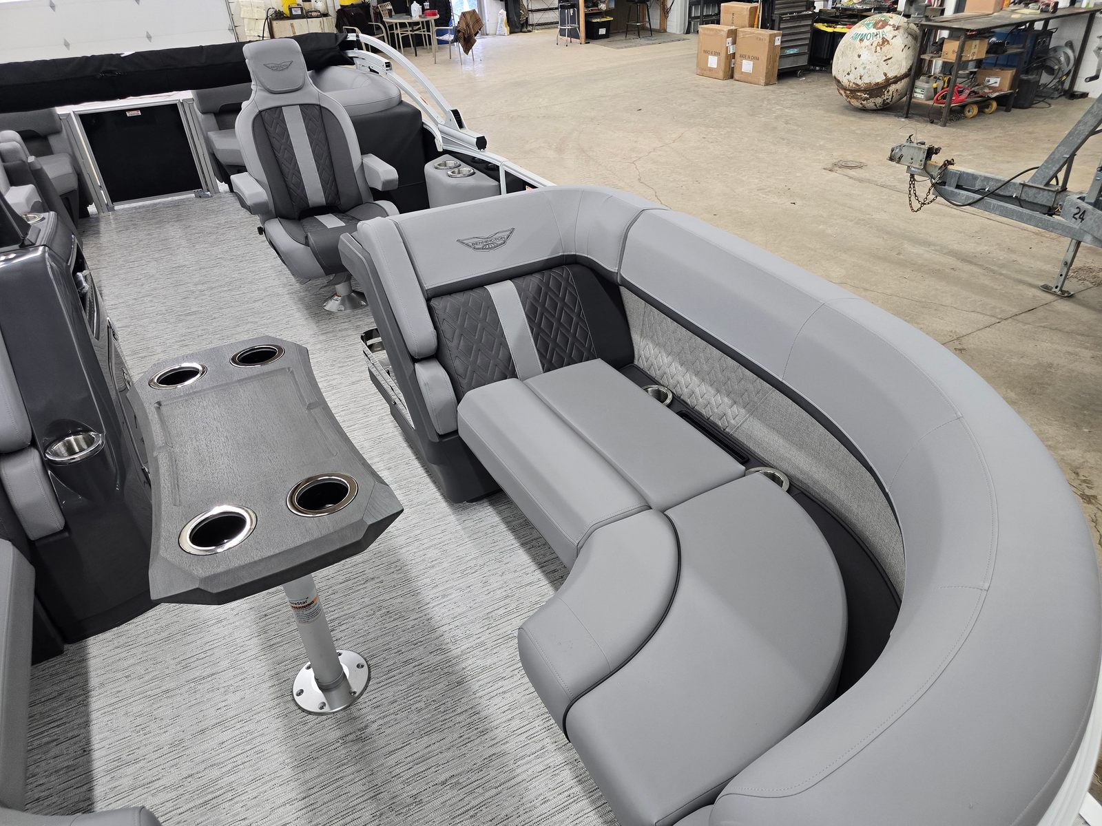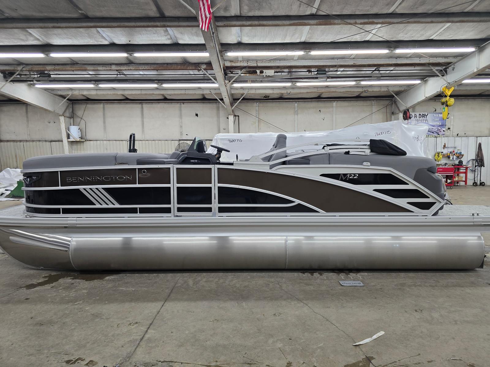 The 2026 Bennington 22 MFB SPS Pontoon stands out as a premier choice for those who demand excellence in their boating experience. Measuring an impressive 24.25 feet in length, this new pontoon offers ample space for relaxation, entertainment, and adventure. The sleek Valencia Grey exterior, paired with the sophisticated Zebrawood Matte Slate accents, creates a modern and inviting atmosphere that is sure to turn heads at any marina or lakefront gathering.Every detail of the Bennington 22 MFB SPS has been thoughtfully crafted to provide maximum comfort and enjoyment. The Base Furniture M Series ensures plush seating and ergonomic design, making long days on the water a true pleasure. Whether you are cruising, entertaining, or simply soaking up the sun, this pontoon delivers a perfect blend of style and functionality.