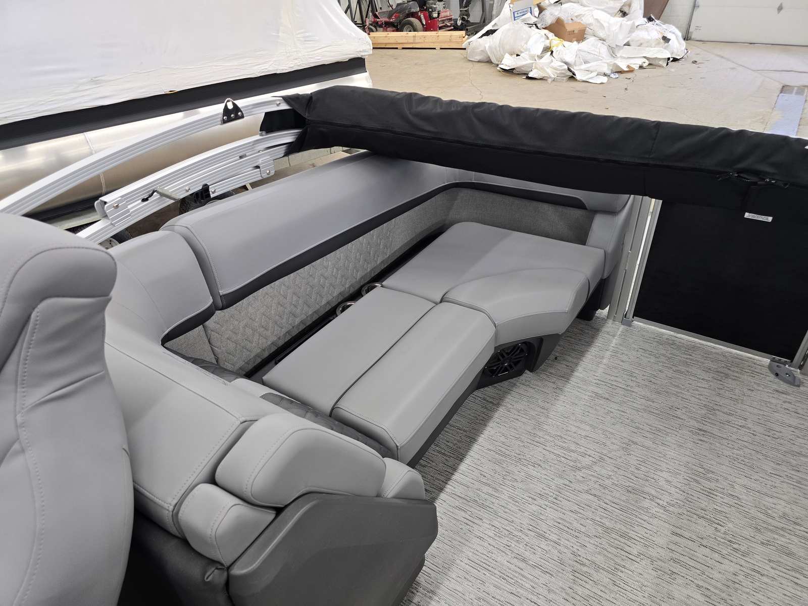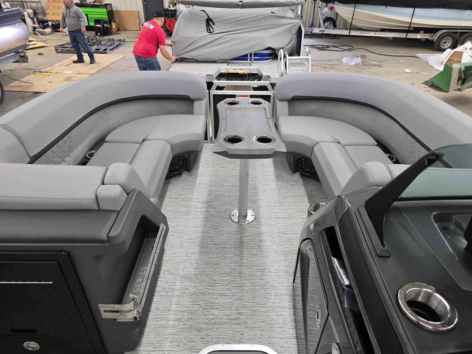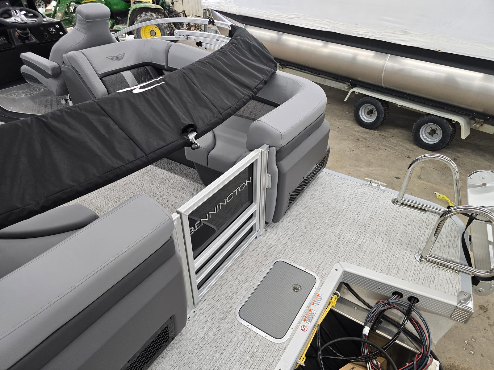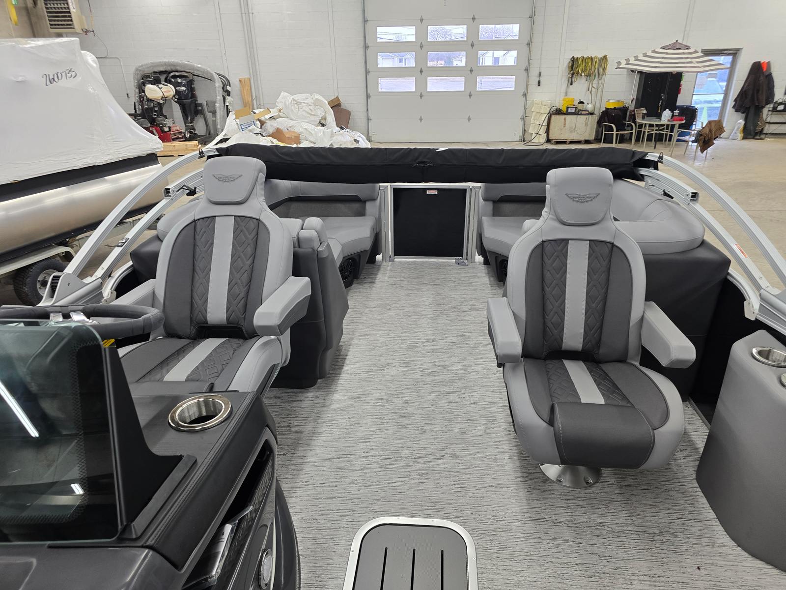 The 2026 Bennington 22 MFB SPS Pontoon stands out as a premier choice for those who demand excellence in their boating experience. Measuring an impressive 24.25 feet in length, this new pontoon offers ample space for relaxation, entertainment, and adventure. The sleek Valencia Grey exterior, paired with the sophisticated Zebrawood Matte Slate accents, creates a modern and inviting atmosphere that is sure to turn heads at any marina or lakefront gathering.Every detail of the Bennington 22 MFB SPS has been thoughtfully crafted to provide maximum comfort and enjoyment. The Base Furniture M Series ensures plush seating and ergonomic design, making long days on the water a true pleasure. Whether you are cruising, entertaining, or simply soaking up the sun, this pontoon delivers a perfect blend of style and functionality.