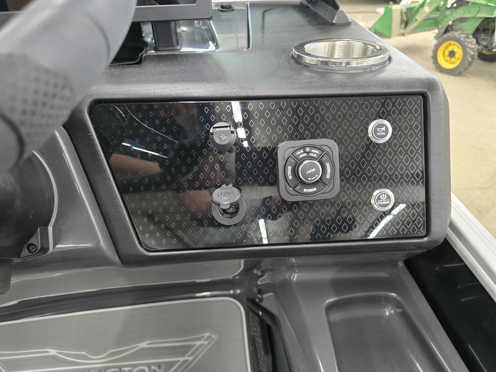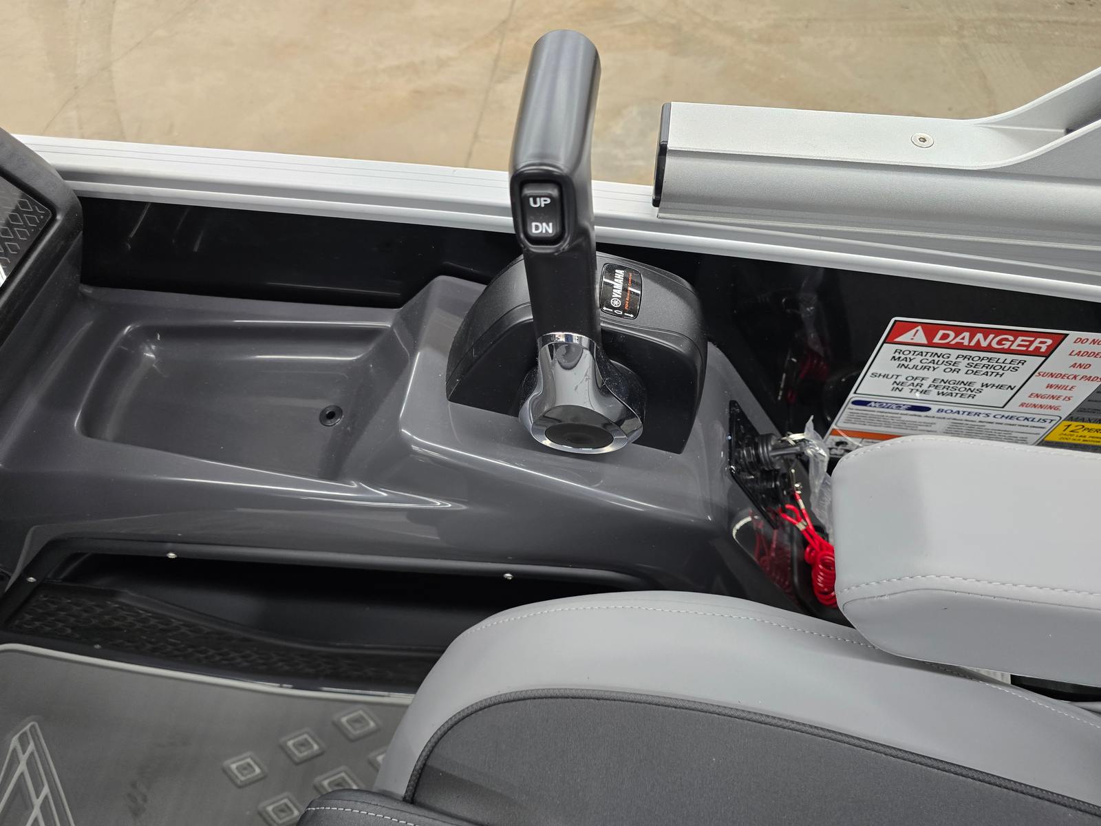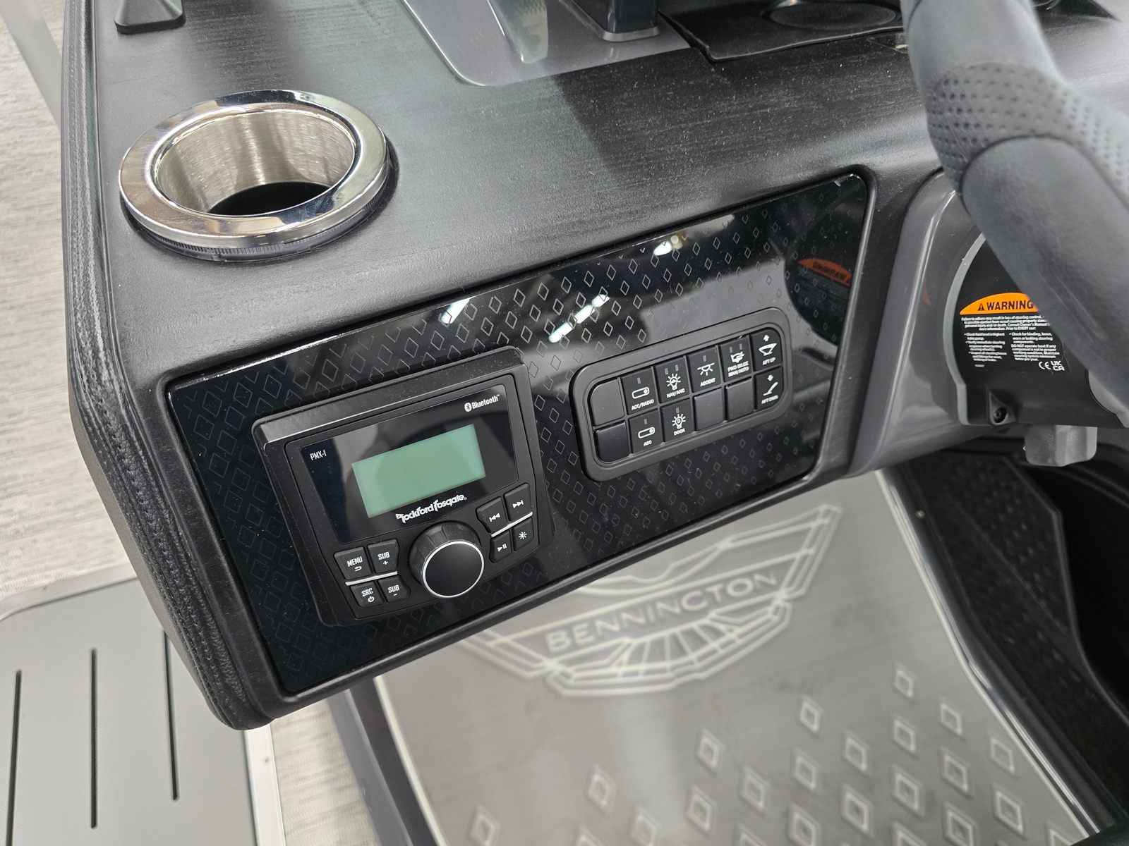 This Bennington pontoon boat for sale is loaded with premium features designed to elevate your boating experience. The Yamaha F175XA engine ensures reliable and powerful performance, while the RGB Control M Series allows you to customize the onboard lighting to match your mood or occasion. The Rockford Fosgate M1 Lighted Speakers provide crystal-clear sound and vibrant illumination, creating the perfect ambiance for any gathering.The Bimini - Electric Power Top Curved 12B S/M Slv offers effortless shade and protection from the sun, while the Bimini Cable Stays ensure stability and durability. The elevated console with pocket Mythos adds a touch of sophistication and convenience, keeping your essentials within easy reach. The ski tow bar is perfect for water sports enthusiasts, and the Valencia Grey color scheme adds a modern, stylish touch to the overall design.
