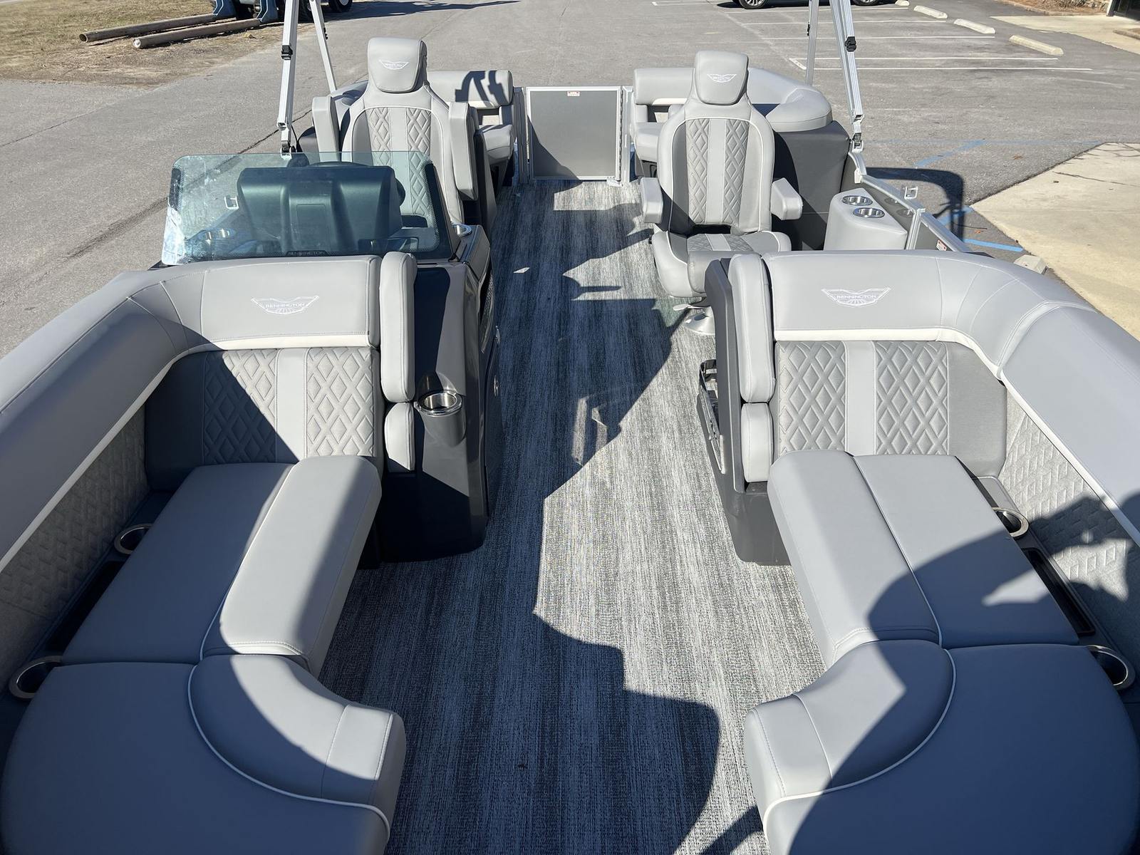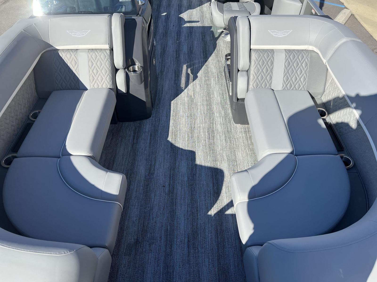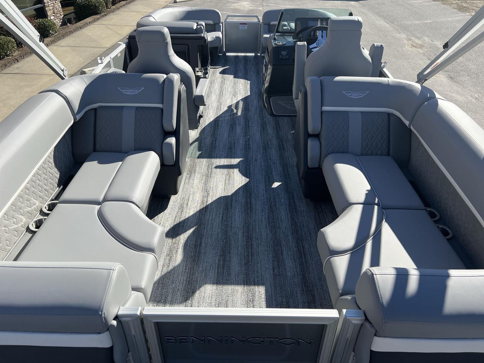 The Bennington 22 MFB SPS is packed with innovative features that set it apart from other pontoon boats for sale. The 12 Button Digital Switching system puts control at your fingertips, allowing you to manage onboard systems with ease. The 7" Vivid UX Touchscreen Display provides intuitive access to navigation, entertainment, and boat information, ensuring you stay connected and informed throughout your journey. The Master Power switch offers added convenience and safety, while the horn ensures you’re always prepared for any situation.For modern connectivity, the USBP Panel with Wireless Charging Dock keeps your devices powered up and ready to go, so you can capture every moment and stay in touch with loved ones. The interior and exterior design features a sophisticated combination of Panel – Smooth Silver, Accent – Smooth Metallic White, Canvas – Metallic Silver, and Shadow Gray Veneto, all complemented by striking Chrome Logos. These premium finishes create a contemporary, upscale atmosphere that’s sure to impress.
