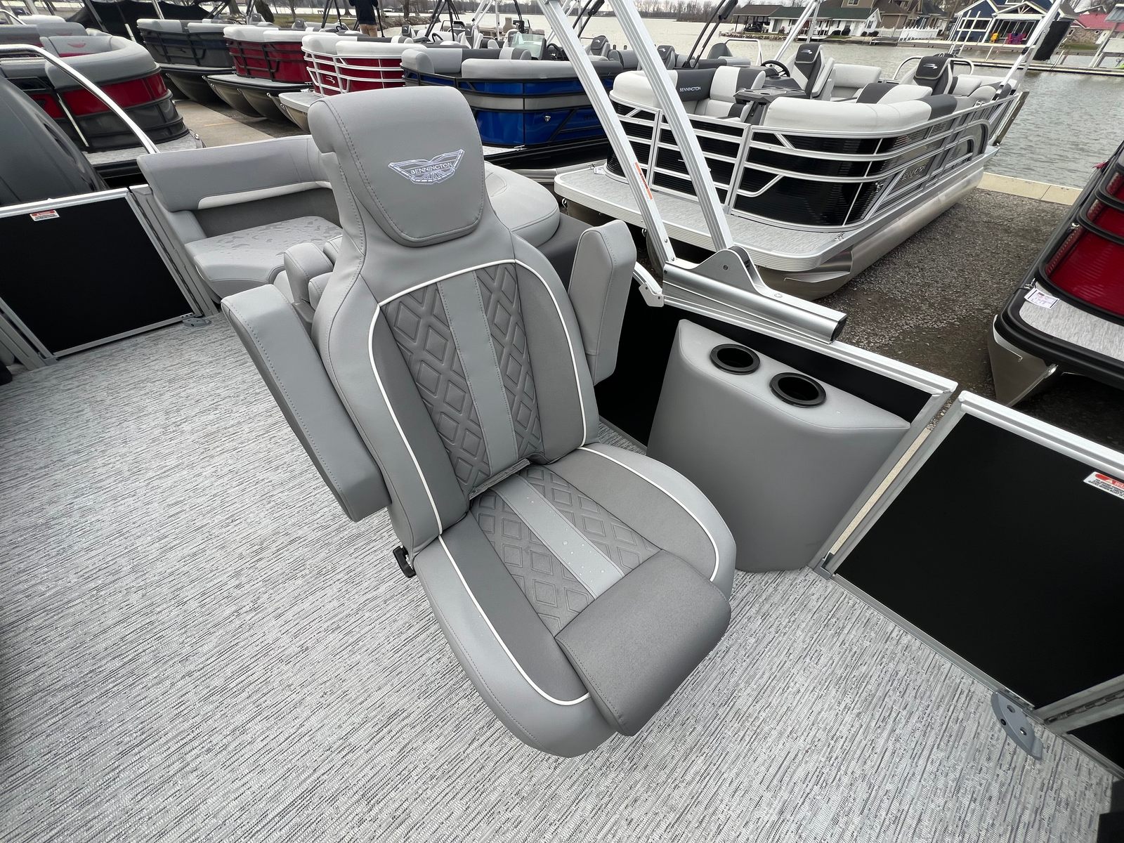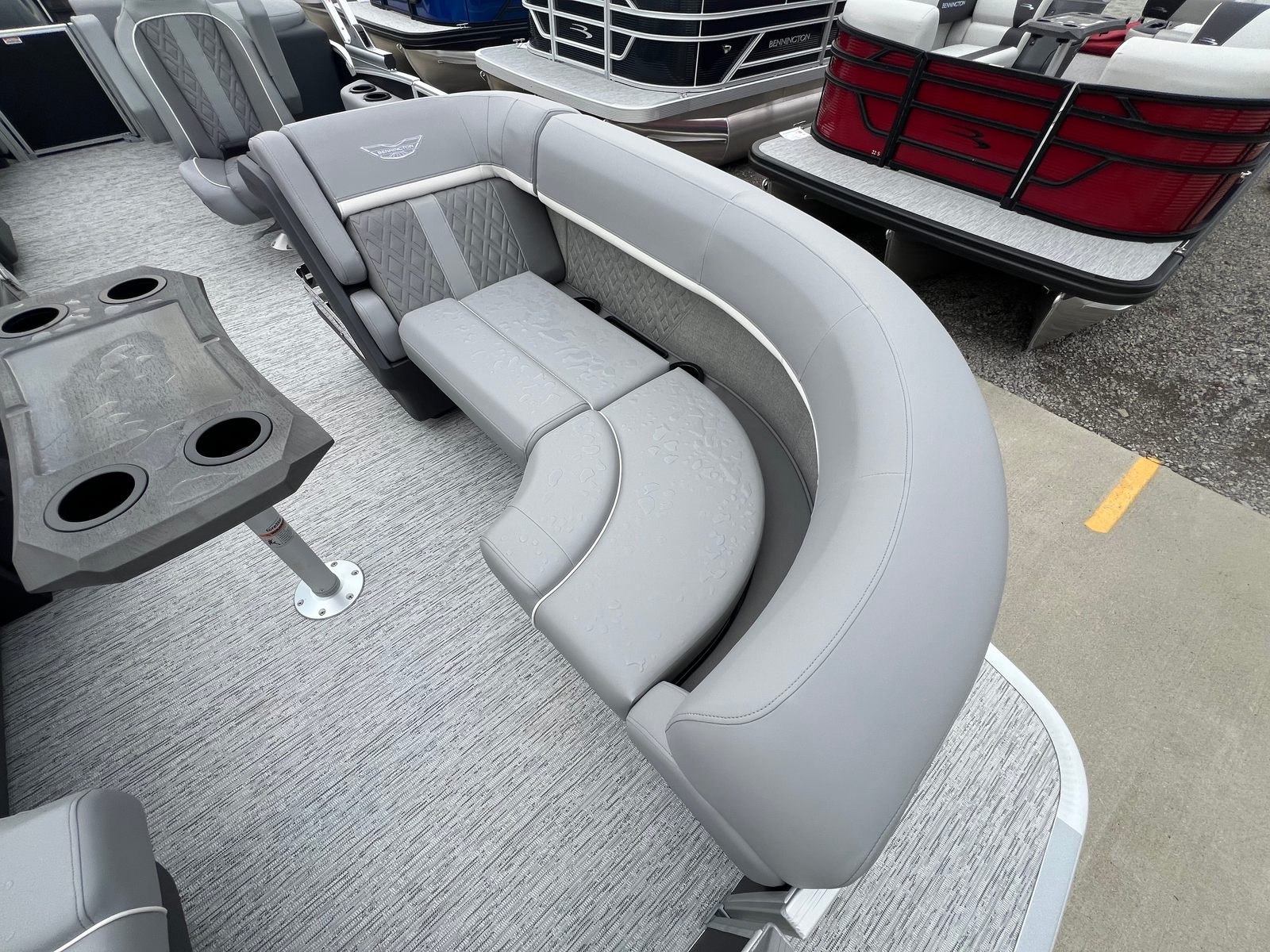 The 2026 Bennington 22 MFB SPS Pontoon measures just over 21 feet in length, offering the perfect balance between spacious comfort and easy maneuverability. As a new model, it boasts the latest advancements in pontoon design and technology, ensuring a smooth and enjoyable ride for you and your guests. The Bennington name is synonymous with quality and craftsmanship, and this model continues that proud tradition with its attention to detail and premium materials.