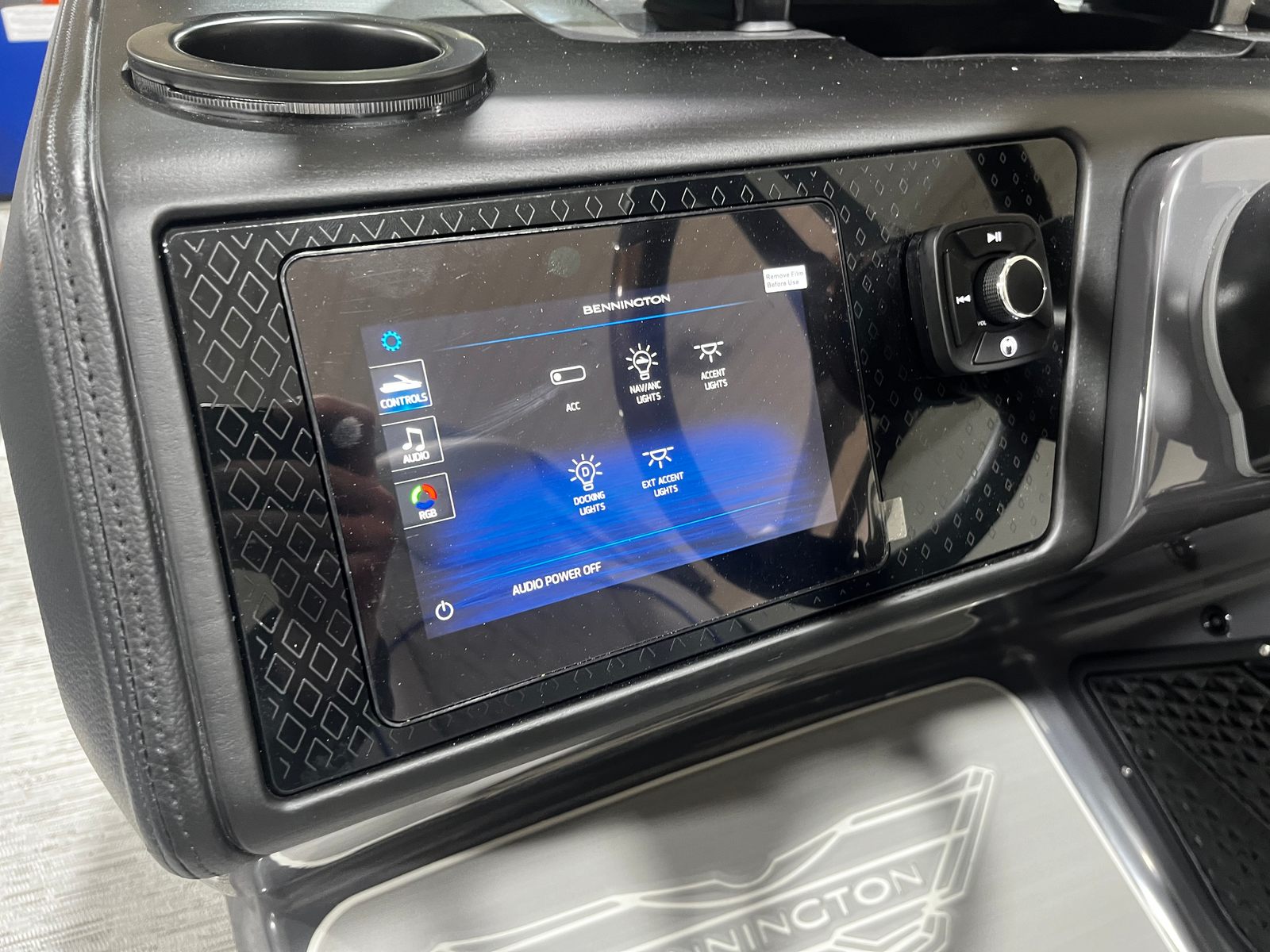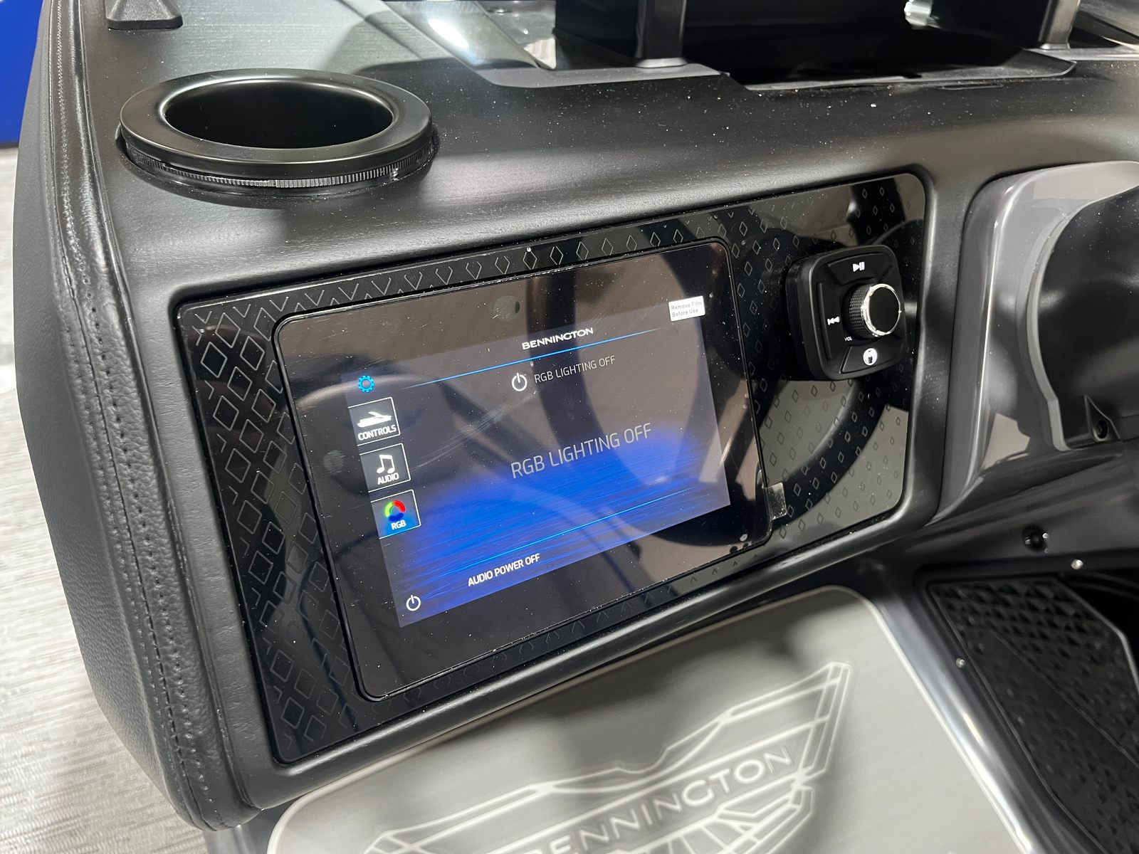 Step aboard and discover a world of premium features designed to maximize your enjoyment. The Zebrawood Matte Slate finish adds a touch of modern elegance, complemented by the Accent - Smooth Gemini Black detailing for a sleek, sophisticated look. The Black Rub Rail Insert not only enhances the boat’s aesthetics but also provides added protection along the hull.Navigation and control are effortless thanks to the 9" Garmin Multi-Function Display, offering intuitive access to vital information and entertainment options. The Premium, Retractable Keeper Rail ensures safety and convenience, while the Bow Pop-Up Cleats make docking and securing your pontoon a breeze. Shade and comfort are always within reach with the Bimini - Curved M/LXS No Light Blk, allowing you to relax in style even on the sunniest days.