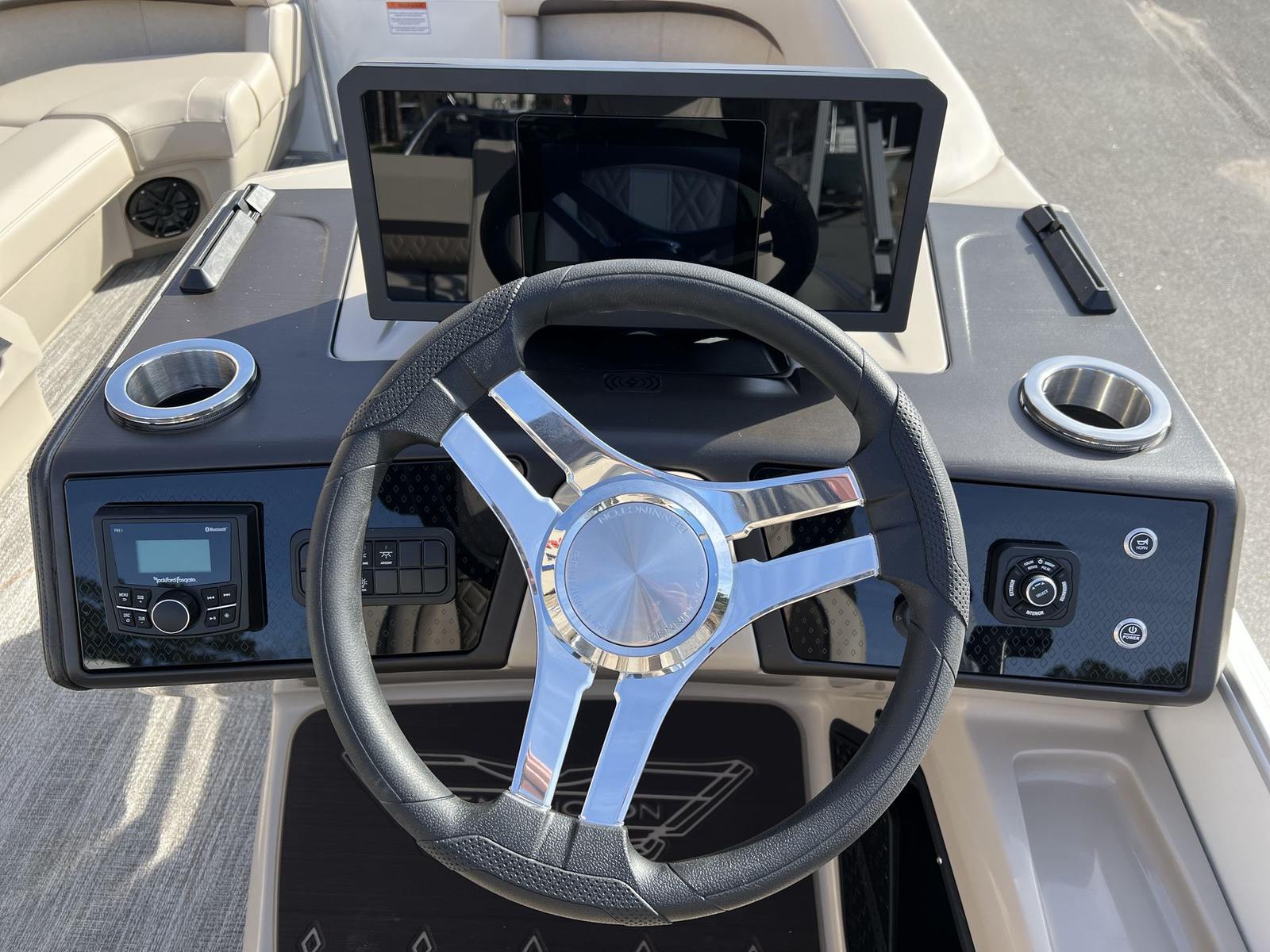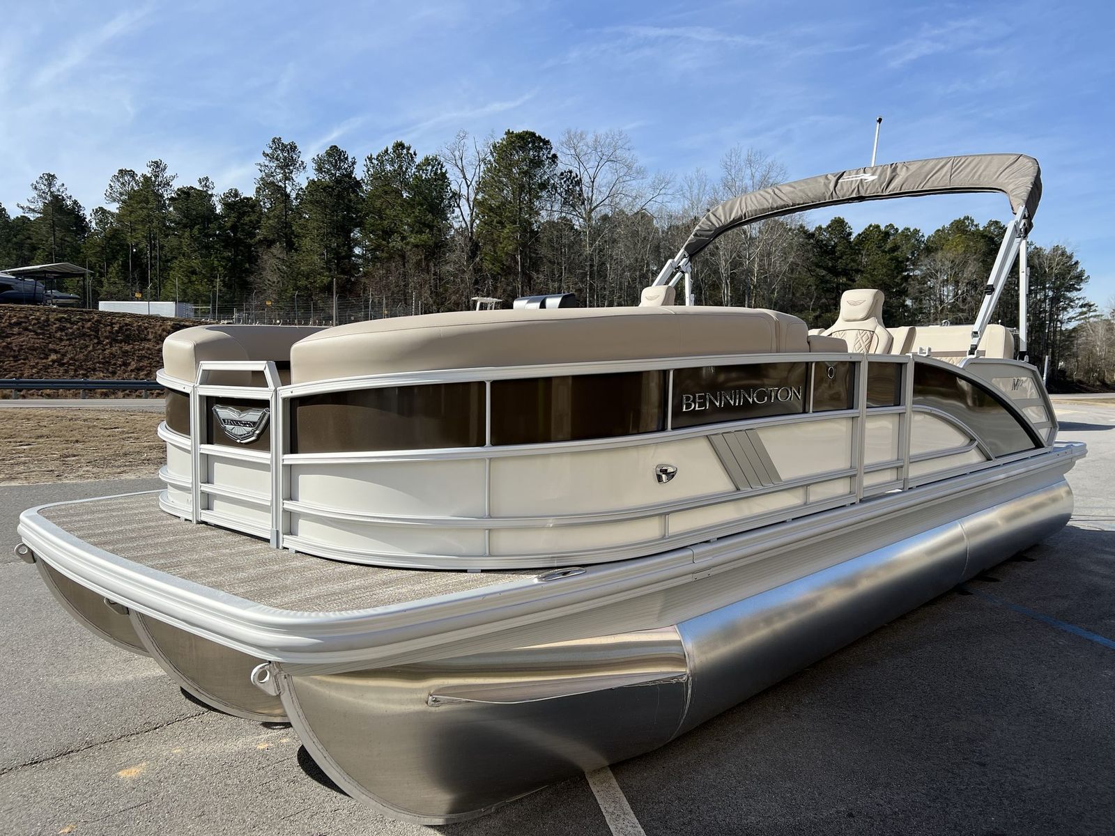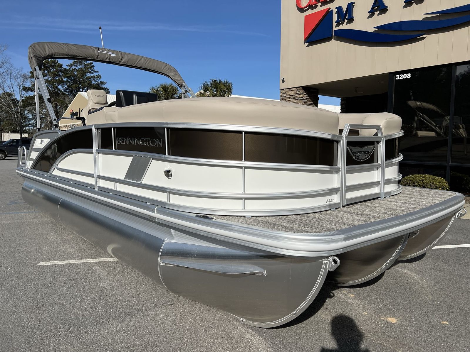 The 2025 Bennington 22 MSB SPS is loaded with premium features designed to enhance your boating experience. The 12 Button Digital Switching system offers intuitive control over the boat’s functions, allowing you to manage lighting, navigation, and more with ease. The 7" Vivid UX Touchscreen Display provides clear, real-time information at your fingertips, making navigation and system monitoring effortless. The Master Power feature ensures reliable operation, while the Horn USBP Panel with Wireless Charging Dock keeps your devices powered and ready for use.Aesthetically, this pontoon boat is a masterpiece. The Panel in Smooth Metallic White, accented by Smooth Metallic Sorrel, creates a sophisticated and modern look. The Canvas in Metallic Sorrel Tweed adds a touch of elegance, while the Dolce Veneto upholstery offers plush comfort for all passengers. Chrome logos complete the stylish appearance, ensuring your Bennington boat for sale stands out wherever you go.