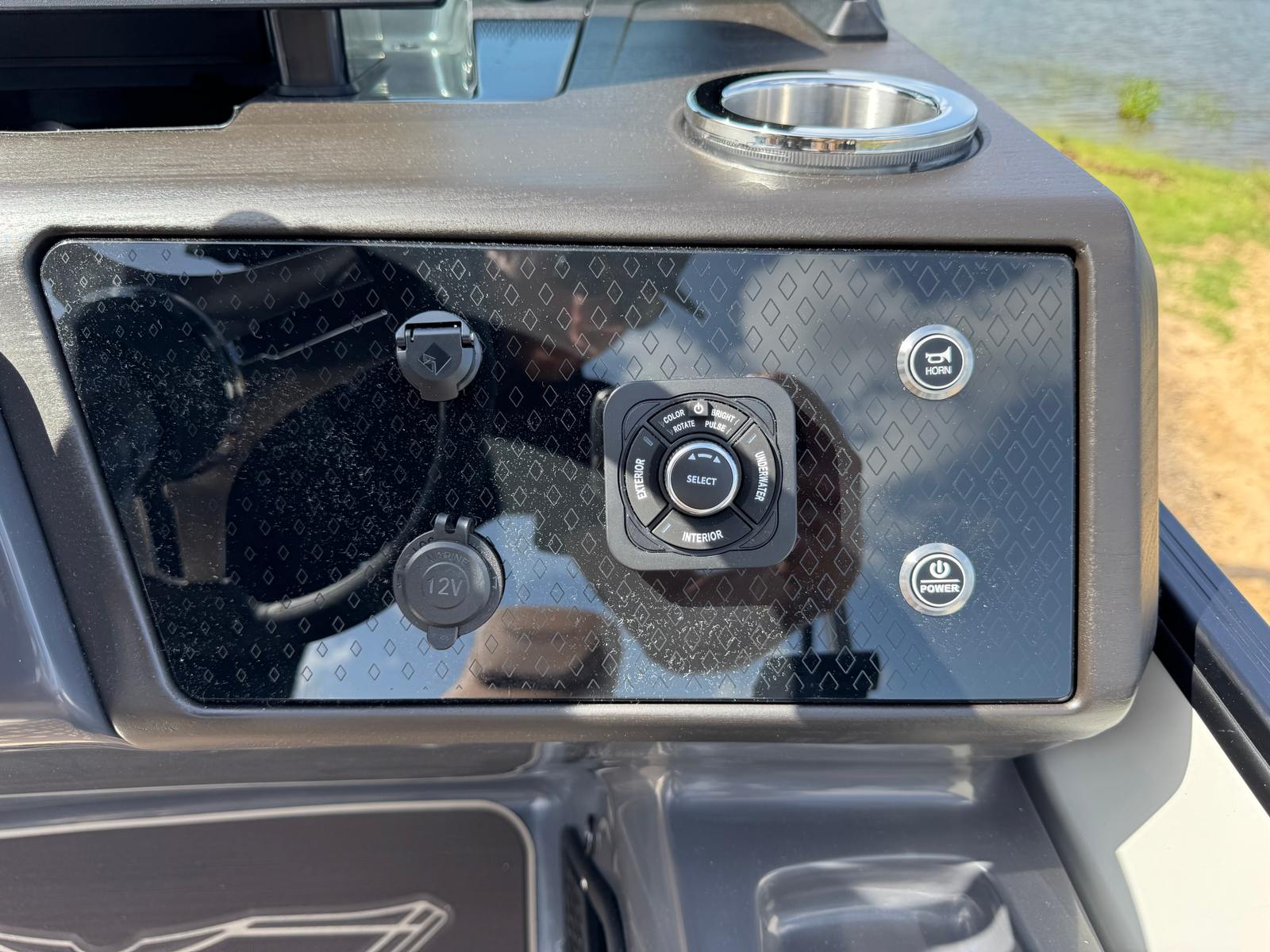 This 2026 Bennington 22 MSB SPS pontoon boat for sale is loaded with premium features designed to elevate your boating experience. The dual battery switch with fuse provides reliable power management, ensuring your onboard systems run smoothly throughout the day. Set the mood with the RGB Control M Series lighting, which allows you to customize the ambiance to suit any occasion. Toekick lights (1-37" and 1-41") add a sophisticated touch, illuminating the deck for evening cruises and late-night gatherings.Music lovers will appreciate the Rockford Fosgate M1 lighted speakers, with six strategically placed throughout the boat for immersive, high-quality sound. Eight illuminated cupholders keep your favorite beverages within easy reach, while the elevated console with Pocket Mythos offers enhanced visibility and convenient storage for your essentials. The base furniture from the M Series provides plush seating and ergonomic design, ensuring every passenger enjoys maximum comfort.