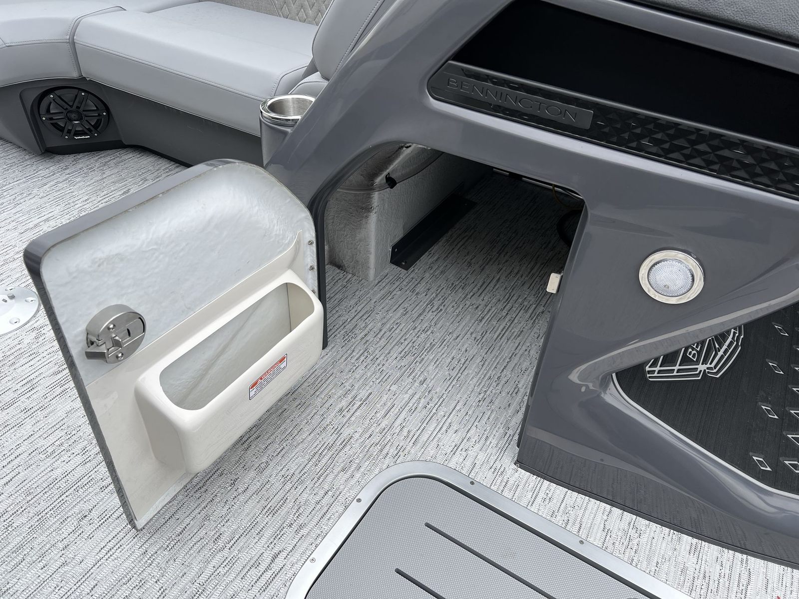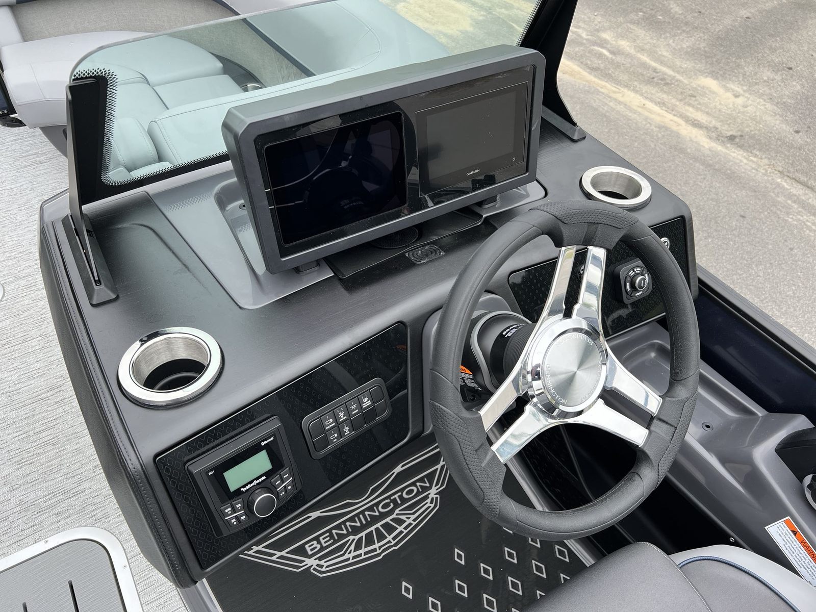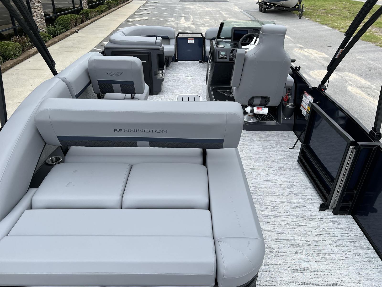 The 2026 Bennington 22 MSB SPS is packed with special features that set it apart from other pontoon boats for sale. The Yamaha F200XD engine and Yamaha Mechanical Pre-Rig – Delete Hydraulic Cylinder ensure top-tier performance and reliability. The single switch battery system provides straightforward power management, making it easy to keep your boat running smoothly.For those who love entertainment, the Rockford Fosgate PMX-3 Headunit with Sirius Satellite Radio offers endless music options, while the Rockford Fosgate M1 Lighted Speakers deliver crystal-clear sound and vibrant illumination. The RGB Control M Series, RGB Speakers, and exterior side lighting create a customizable ambiance, perfect for evening cruises or lively gatherings. Toekick lights (1-37" and 1-41") add a stylish touch and enhance visibility, making nighttime boating both safe and enjoyable.The elevated console with Pocket Mythos not only adds a touch of sophistication but also improves ergonomics, ensuring that all controls are within easy reach. Every feature is designed to maximize comfort, convenience, and enjoyment, making this Bennington boat for sale a standout choice for discerning buyers.