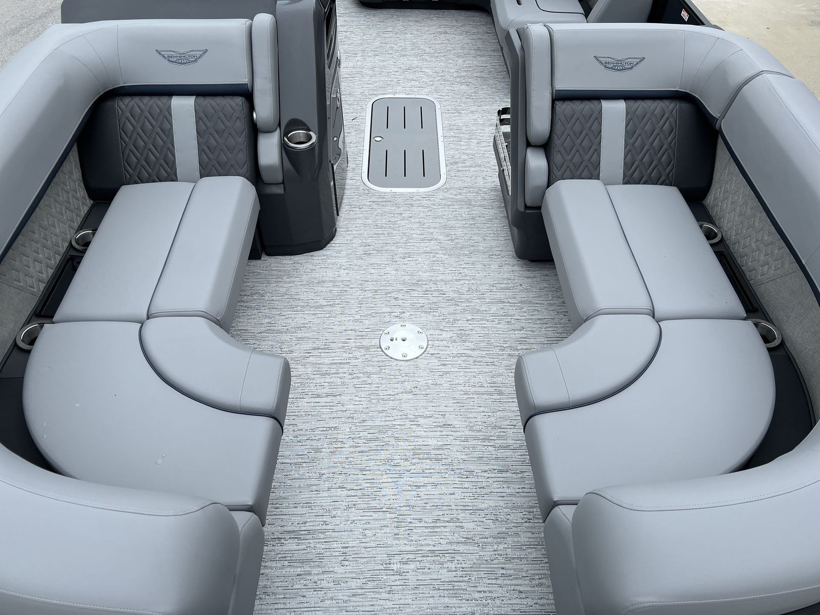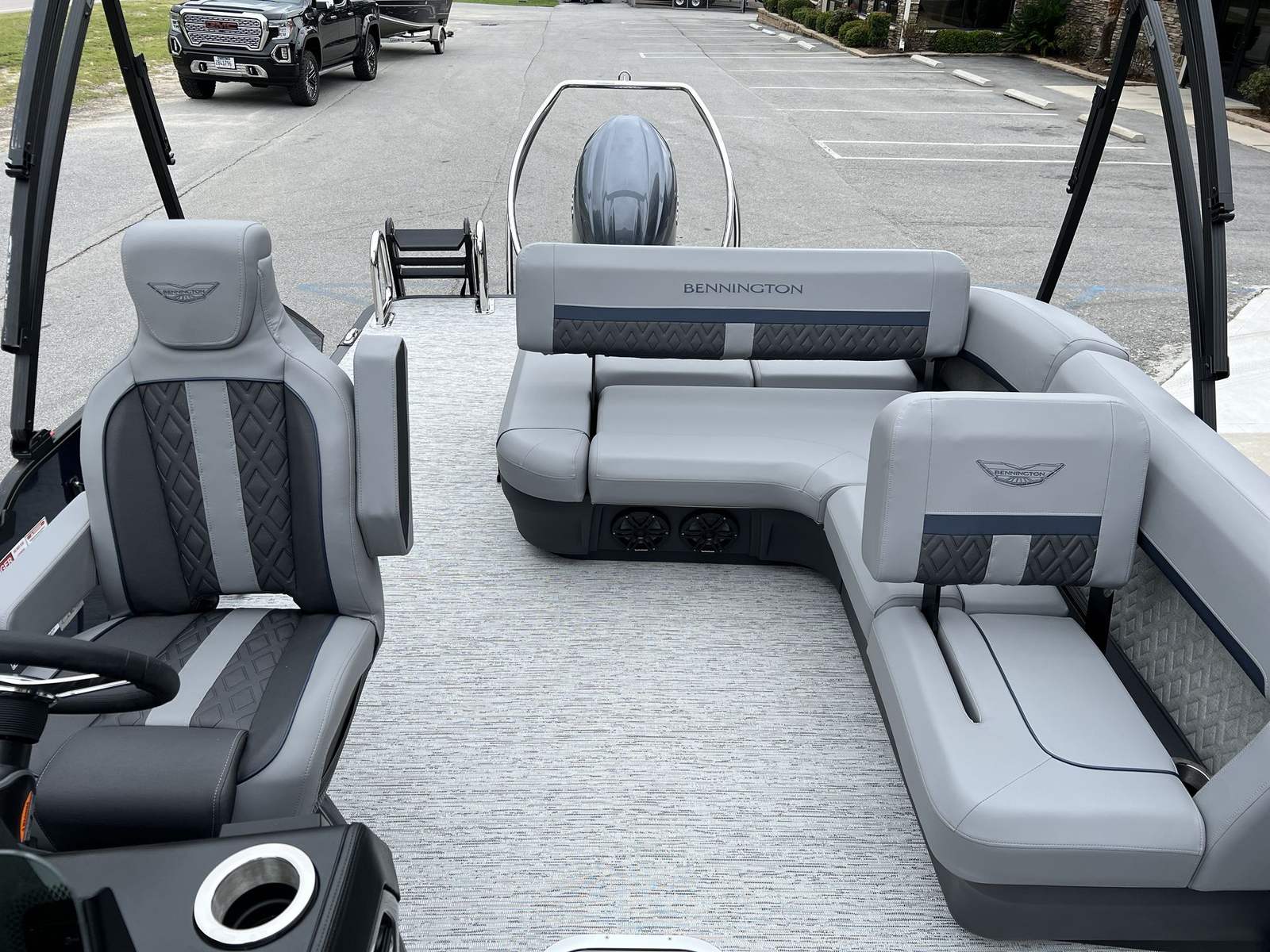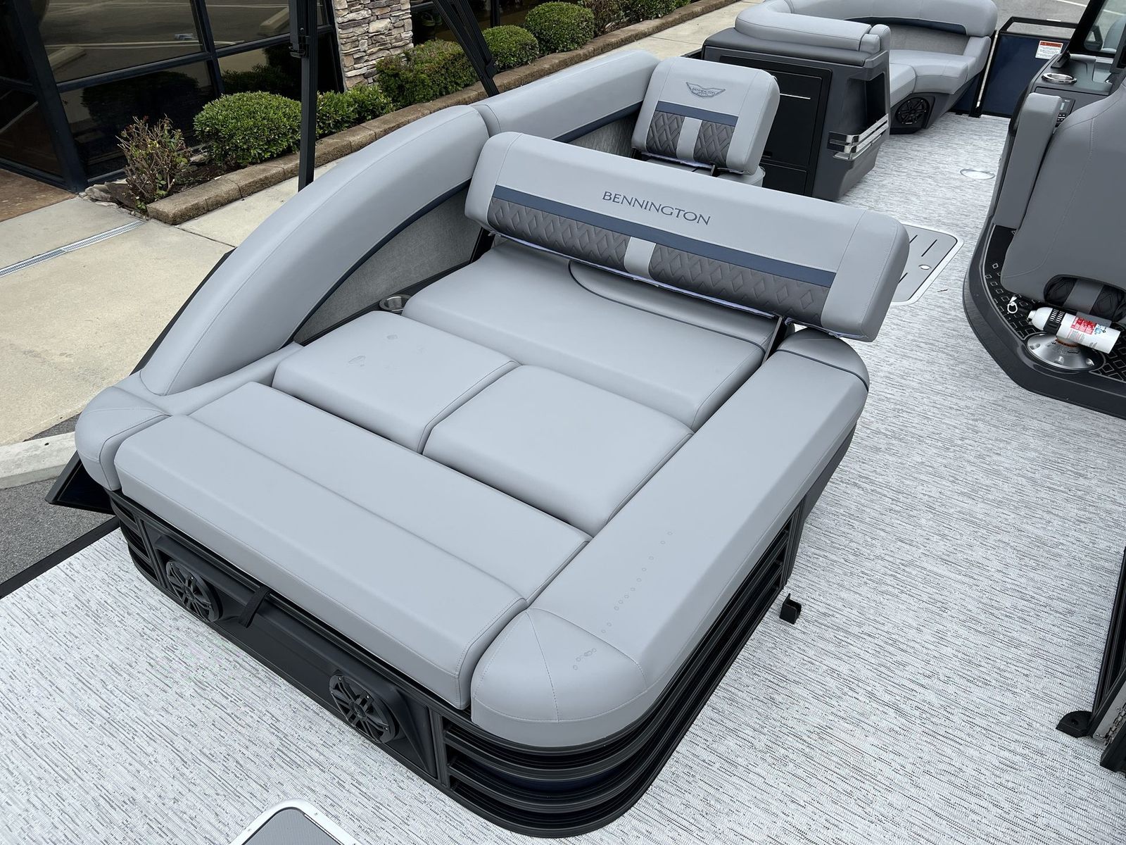 The 2026 Bennington 22 MSB SPS is packed with special features that set it apart from other pontoon boats for sale. The Yamaha F200XD engine and Yamaha Mechanical Pre-Rig – Delete Hydraulic Cylinder ensure top-tier performance and reliability. The single switch battery system provides straightforward power management, making it easy to keep your boat running smoothly.For those who love entertainment, the Rockford Fosgate PMX-3 Headunit with Sirius Satellite Radio offers endless music options, while the Rockford Fosgate M1 Lighted Speakers deliver crystal-clear sound and vibrant illumination. The RGB Control M Series, RGB Speakers, and exterior side lighting create a customizable ambiance, perfect for evening cruises or lively gatherings. Toekick lights (1-37" and 1-41") add a stylish touch and enhance visibility, making nighttime boating both safe and enjoyable.The elevated console with Pocket Mythos not only adds a touch of sophistication but also improves ergonomics, ensuring that all controls are within easy reach. Every feature is designed to maximize comfort, convenience, and enjoyment, making this Bennington boat for sale a standout choice for discerning buyers.