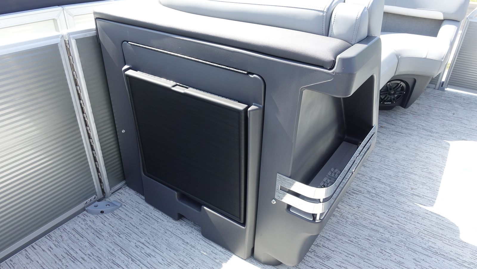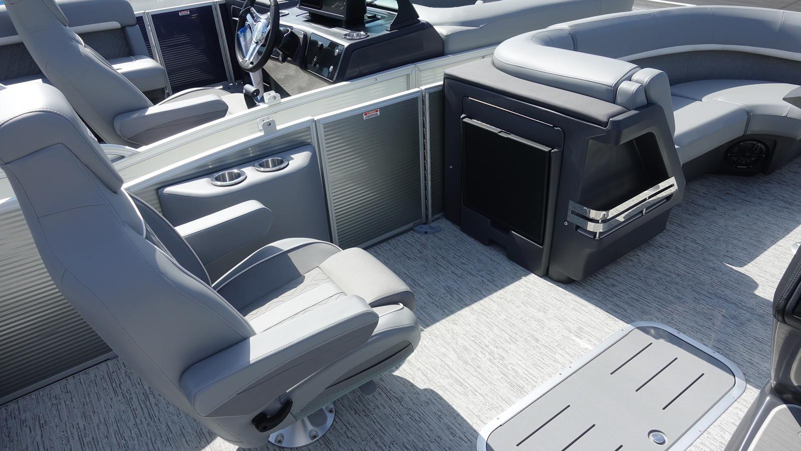 Step aboard and discover a world of premium features designed to maximize comfort and entertainment. The dual battery switch with fuse ensures reliable power management, keeping your electronics running smoothly throughout your adventures. The RGB Control M Series, RGB speakers, and toekick lights (1-37" and 1-41") create a customizable ambiance, allowing you to set the mood for any occasion, from lively gatherings to tranquil evenings on the water.Music lovers will appreciate the Rockford Fosgate PMX-1R Head Unit Remote with Sirius Satellite Radio, offering endless entertainment options and crystal-clear sound. The six Rockford Fosgate M1 lighted speakers deliver immersive audio, transforming your pontoon into a floating concert venue. These advanced features not only enhance your enjoyment but also set the Bennington 22 MSB SPS apart from other pontoon boats for sale.