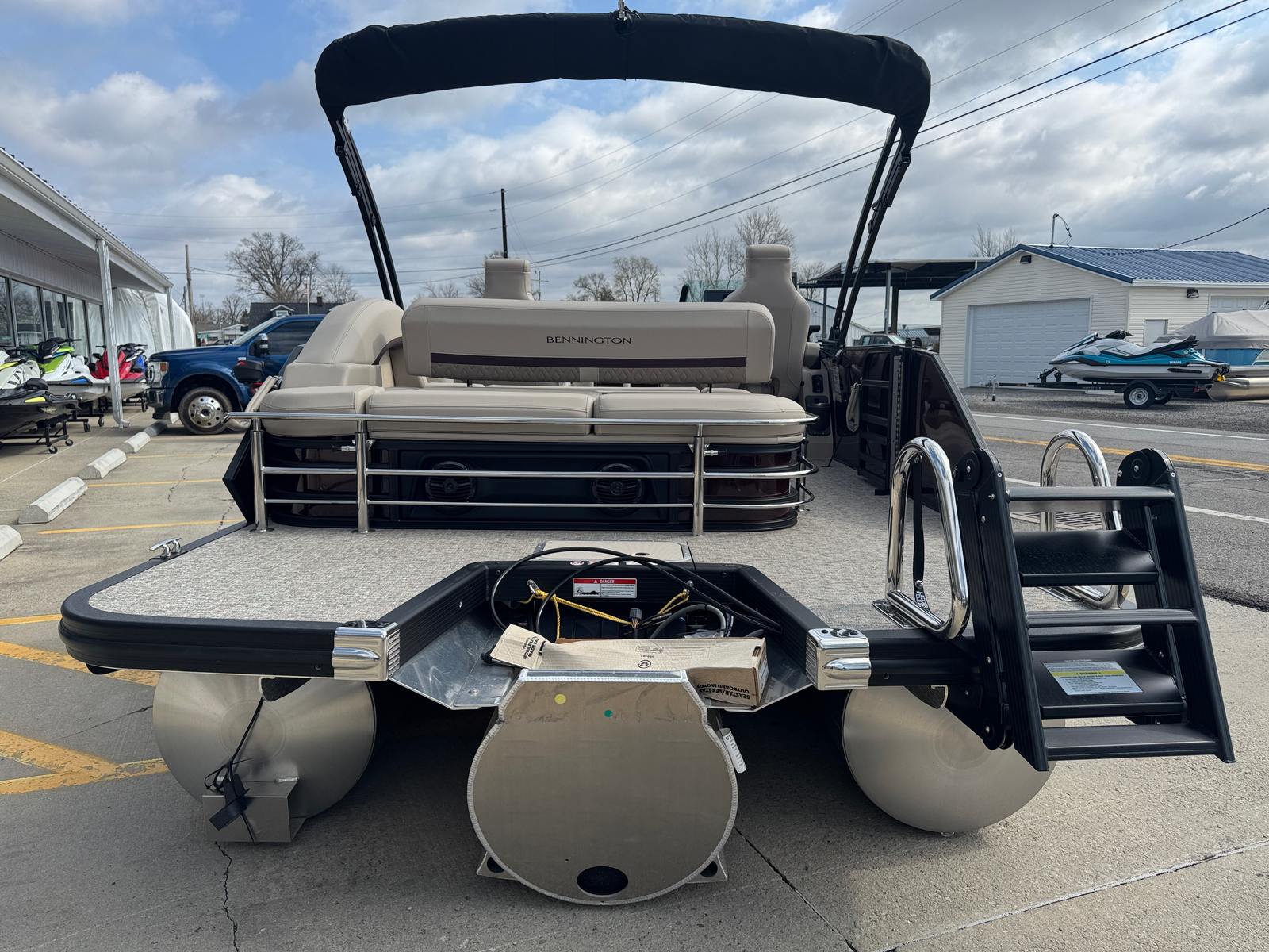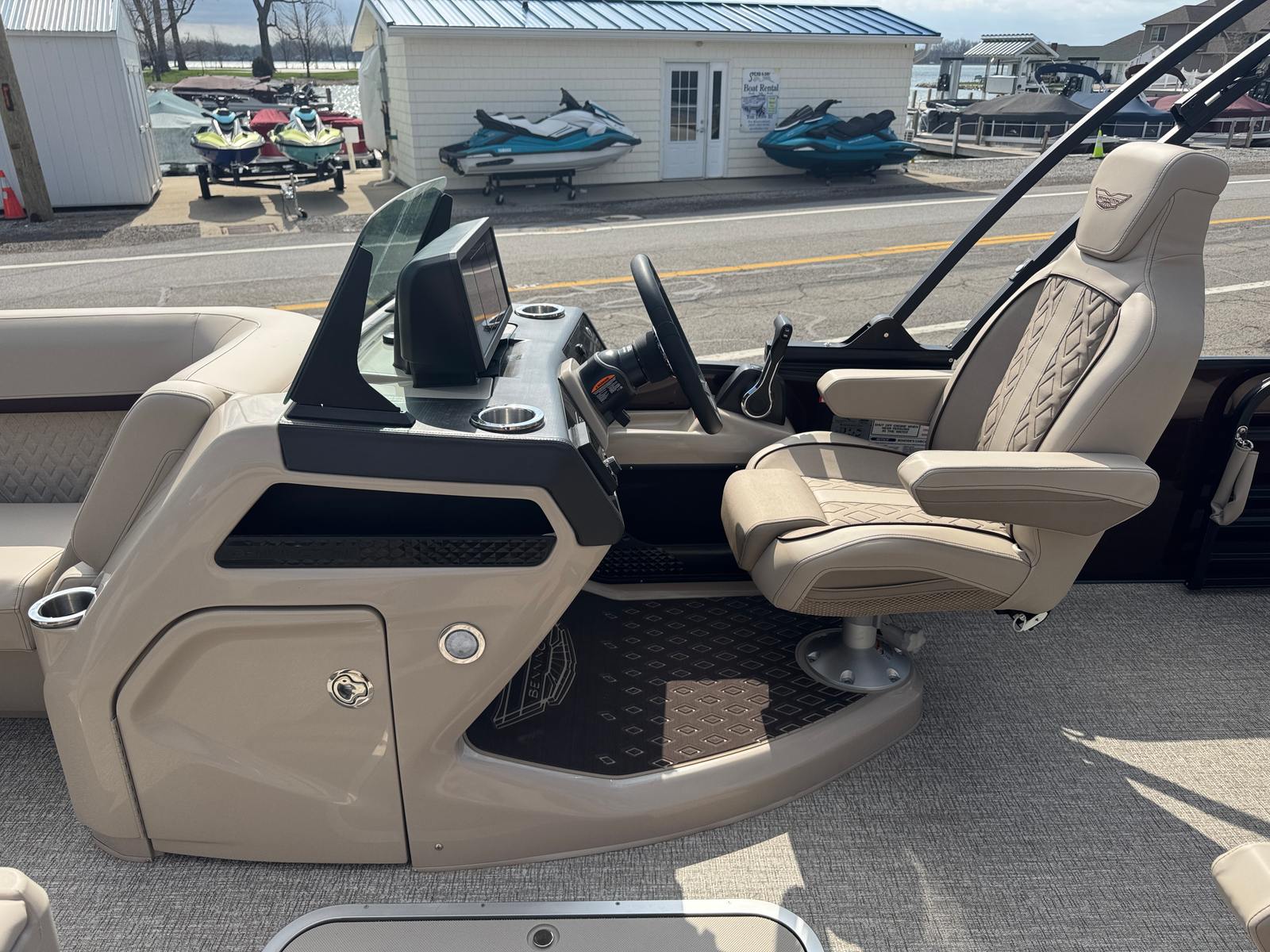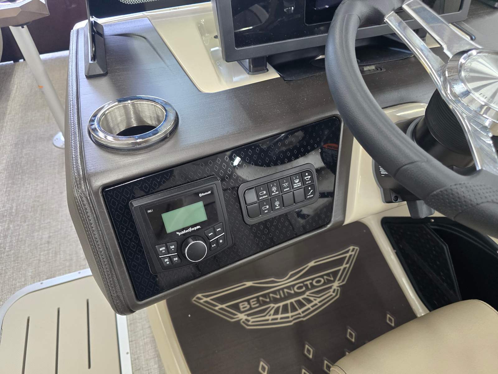 Owning the Bennington 22 MSB SPS pontoon means embracing a lifestyle of relaxation, fun, and social connection. The spacious layout is perfect for hosting gatherings, whether you’re sharing a meal, playing games, or simply soaking up the sun. The plush Dolce Veneto seating invites you to unwind in comfort, while the elevated console ensures the captain enjoys both style and superior control.The electric power top Bimini makes it easy to adapt to changing weather, providing shade and protection when you need it most. The removable flag pole with American flag adds a festive touch to your adventures, making every outing feel like a celebration. With its smooth handling and powerful engine, this Bennington boat for sale is designed to create lasting memories on the water.