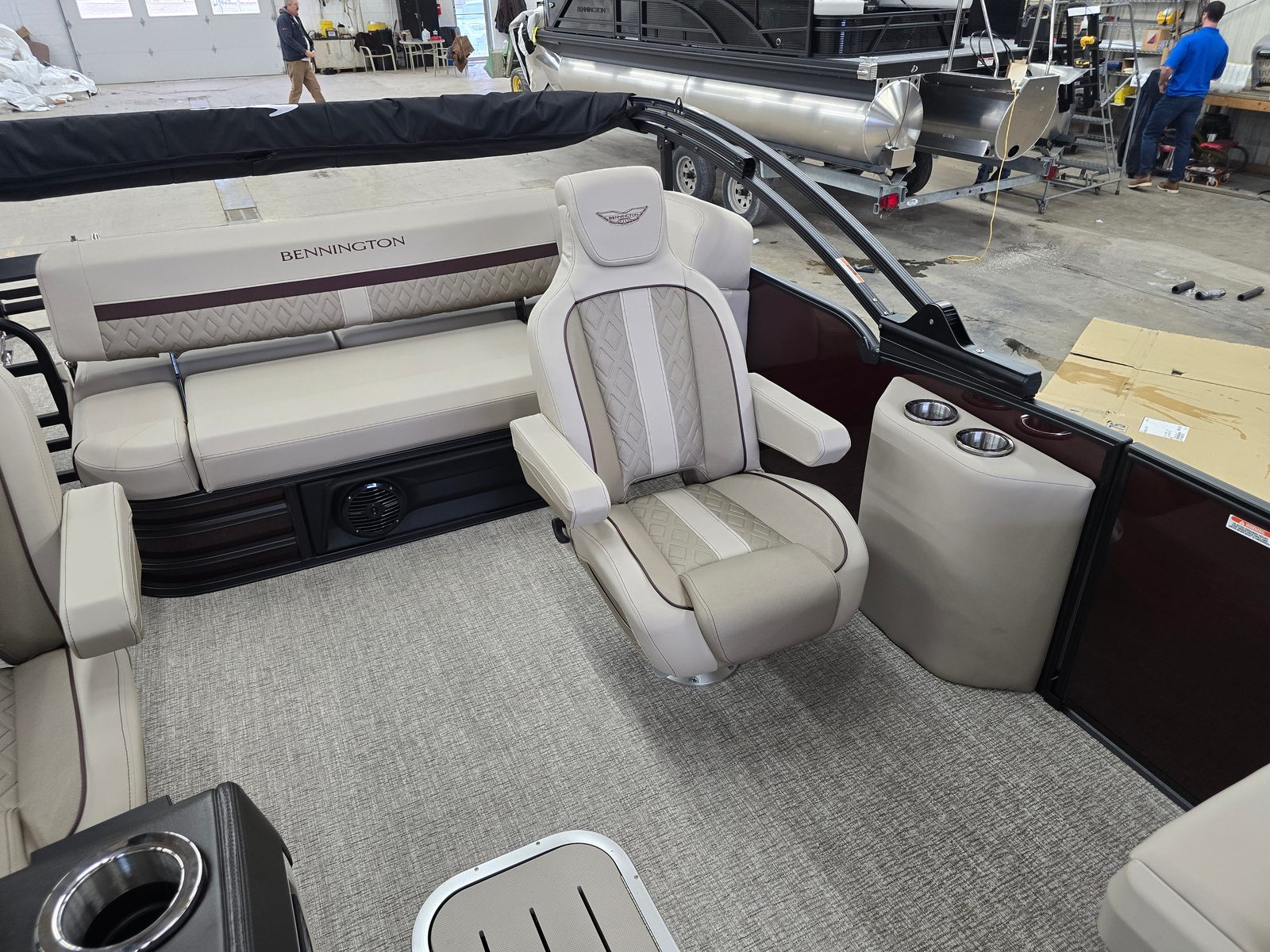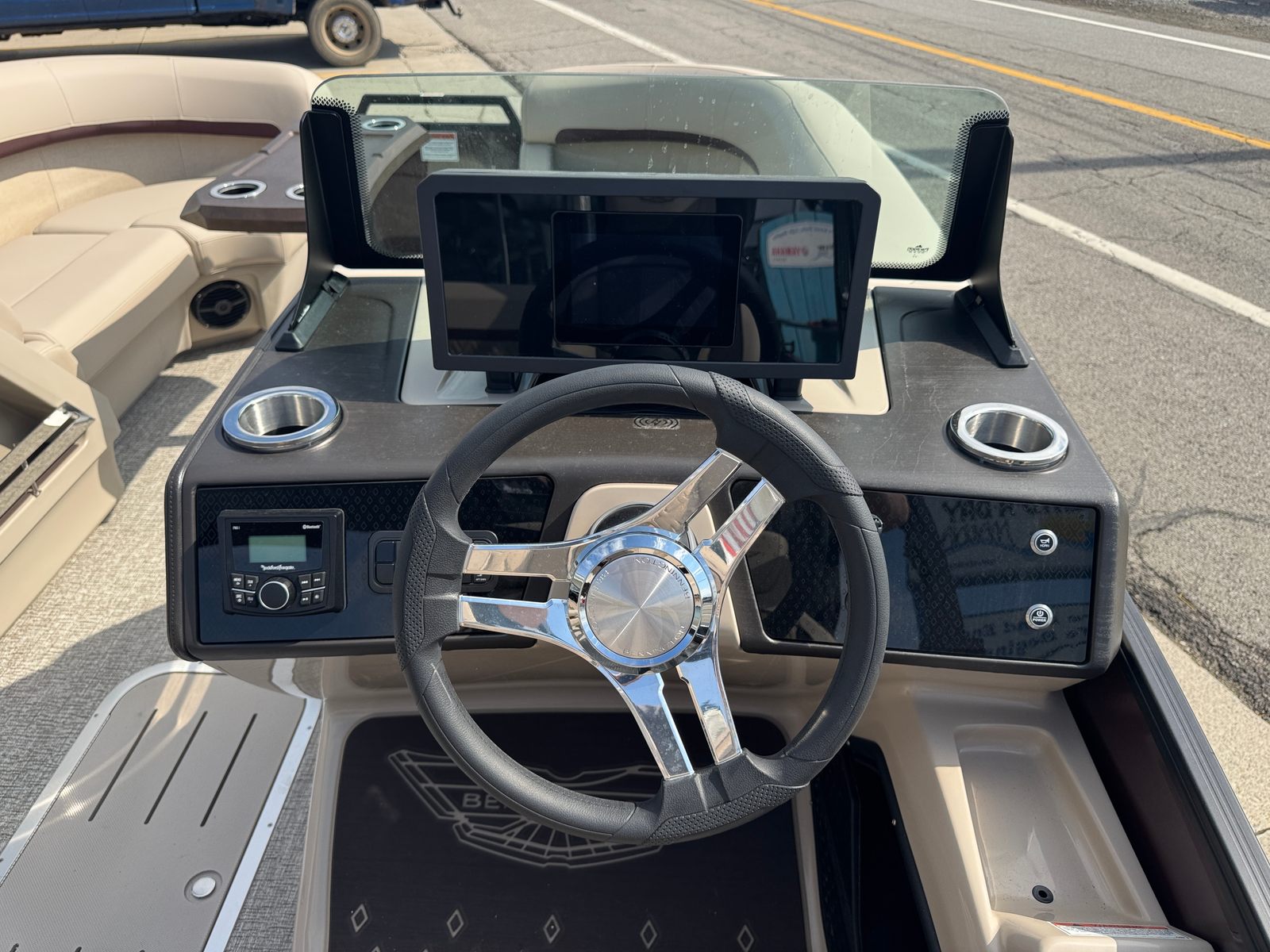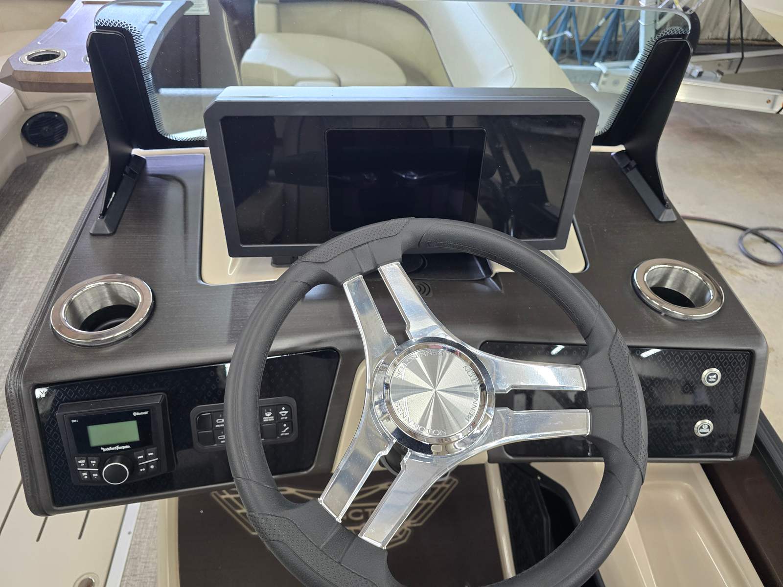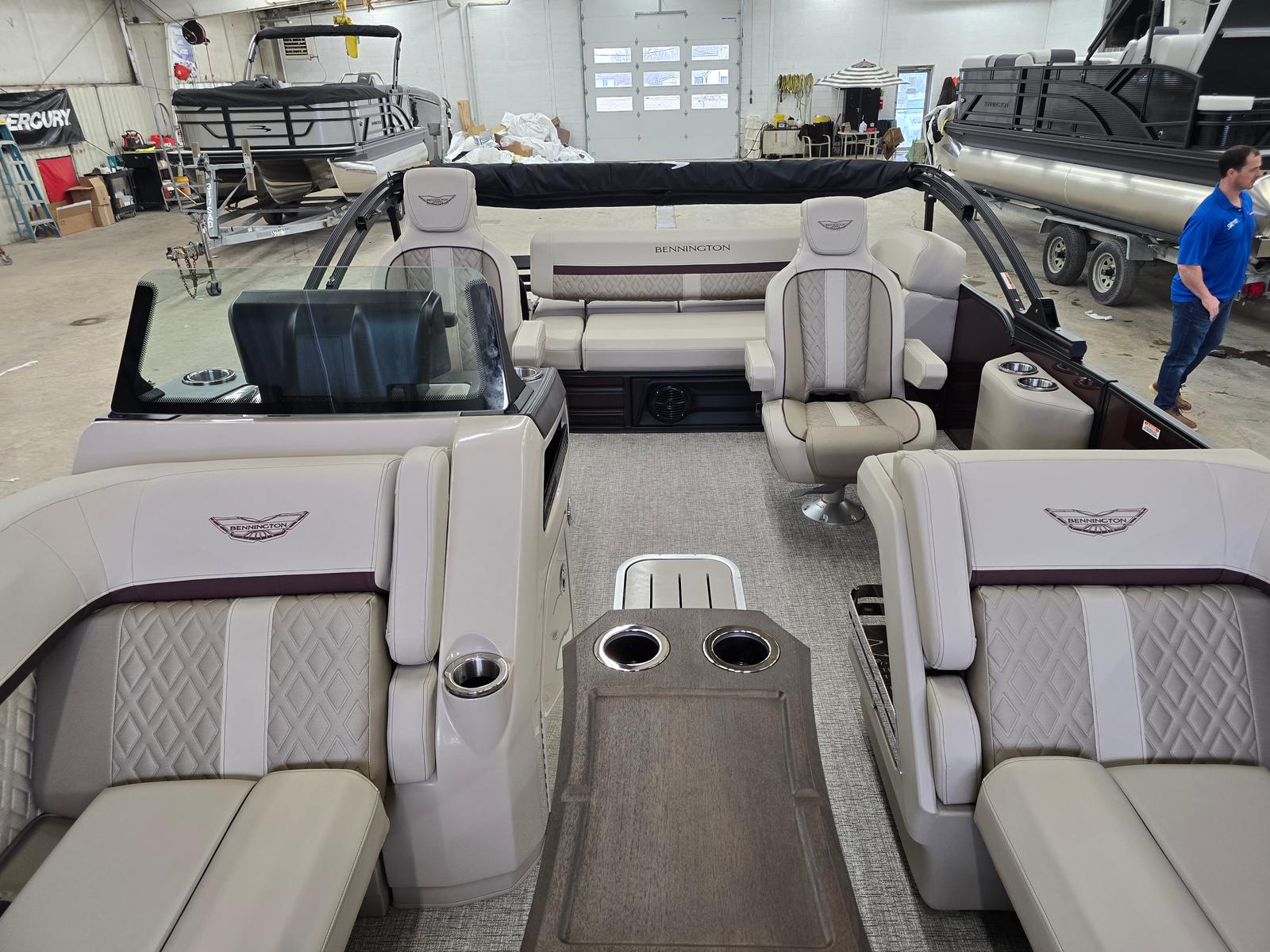 Owning the Bennington 22 MSB SPS pontoon means embracing a lifestyle of relaxation, fun, and social connection. The spacious layout is perfect for hosting gatherings, whether you’re sharing a meal, playing games, or simply soaking up the sun. The plush Dolce Veneto seating invites you to unwind in comfort, while the elevated console ensures the captain enjoys both style and superior control.The electric power top Bimini makes it easy to adapt to changing weather, providing shade and protection when you need it most. The removable flag pole with American flag adds a festive touch to your adventures, making every outing feel like a celebration. With its smooth handling and powerful engine, this Bennington boat for sale is designed to create lasting memories on the water.