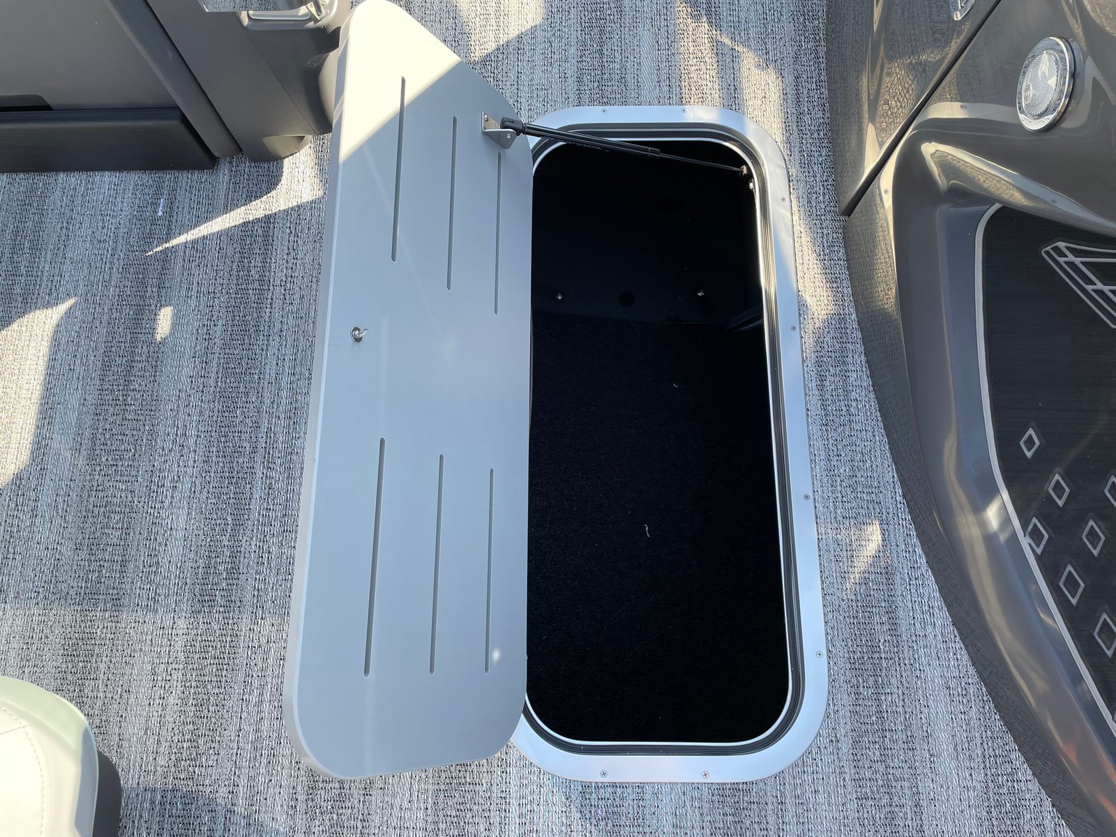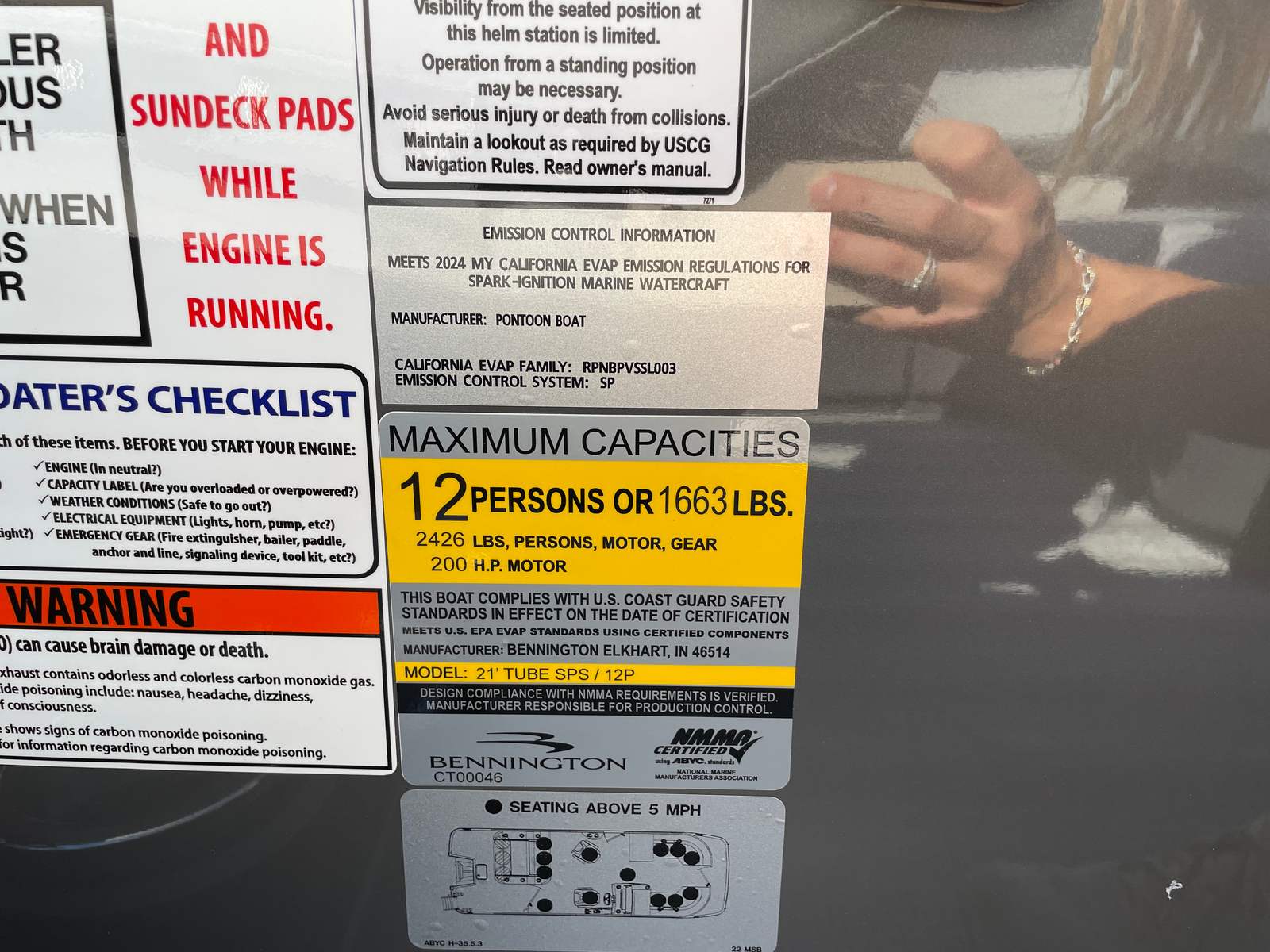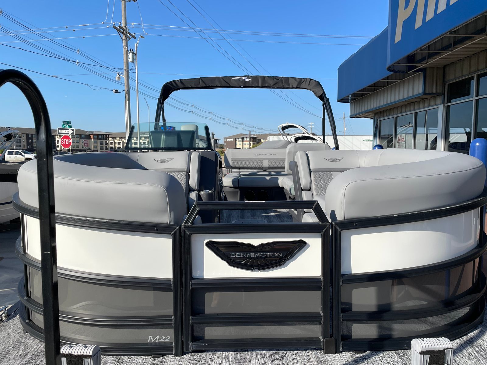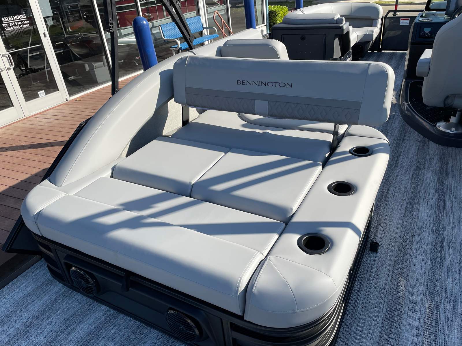 Step aboard and discover a host of premium features that set this pontoon apart. The interior accent in Graphite Simtex creates a sophisticated atmosphere, complemented by the Base Furniture M Series for ultimate comfort and style. The Zebrawood Matte Slate finish adds a touch of elegance, while the Accent - Smooth Metallic White provides a modern, eye-catching contrast. The Canvas - Midnight Black and Bimini - Curved M/LXS No Light Blk offer shade and protection from the elements, ensuring you can enjoy your time on the water in any weather.Practicality meets innovation with the Battery - Dual with Switch, giving you peace of mind and extended power for all your onboard electronics. The Ski Tow Bar opens up a world of recreational possibilities, from water skiing to tubing, making this Bennington boat for sale a versatile choice for thrill-seekers and families alike.