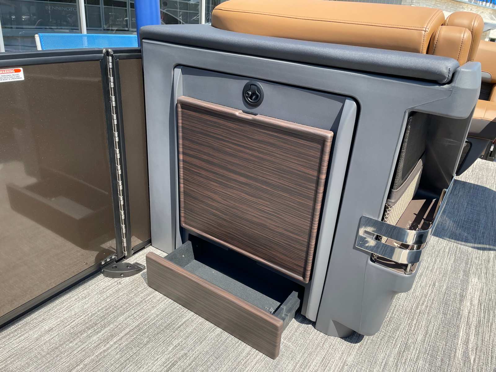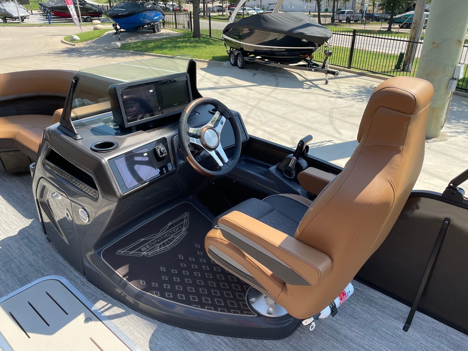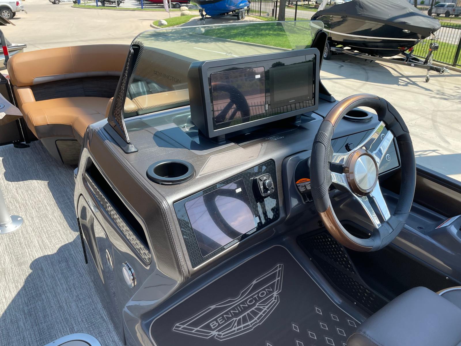 The 2026 Bennington 22 MSB SPS is loaded with features that enhance both comfort and convenience. The dual battery switch with fuse provides peace of mind and reliable power management, allowing you to enjoy extended days on the water without worry. Toekick lights (1-37" and 1-41") add a stylish and functional touch, illuminating key areas for safety and ambiance during evening cruises.Step aboard and you will immediately notice the sophisticated Interior Accent in Graphite Simtex, which pairs beautifully with the luxurious M Series furniture. The seating is designed for maximum comfort, inviting you and your guests to relax and unwind in style. The Zebrawood Matte Beige accents add a touch of elegance, while the smooth metallic Sorrel panels and Midnight Black canvas create a striking visual appeal. Lumbar lighting further enhances the onboard atmosphere, providing a warm and inviting glow that sets the perfect mood for any occasion.