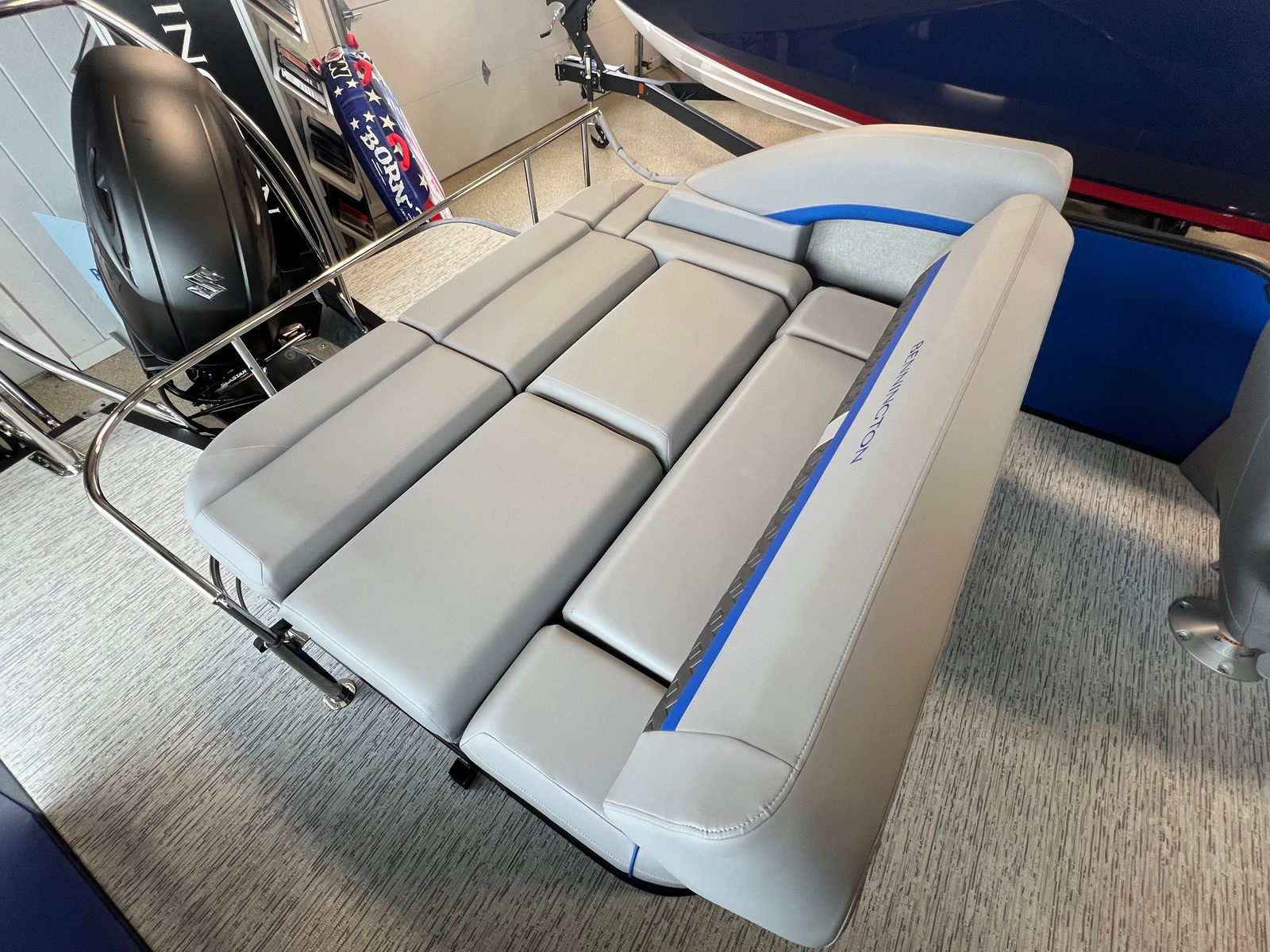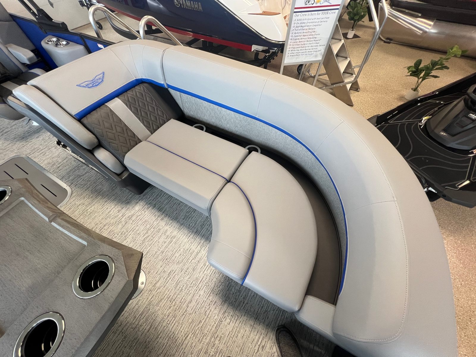 The 2026 Bennington 22 MSB SPS is a 24.25-foot pontoon that embodies the renowned craftsmanship and innovation that Bennington is known for. With its sleek profile and eye-catching color scheme, this Bennington boat for sale is sure to turn heads at the marina and on the open water. The smooth matte Luminous Blue panels, accented by Smooth Gemini Black, create a modern and sophisticated look, while the Graphite Veneto and Luminous Blue Simtex interior accents add a touch of elegance and comfort to every journey.