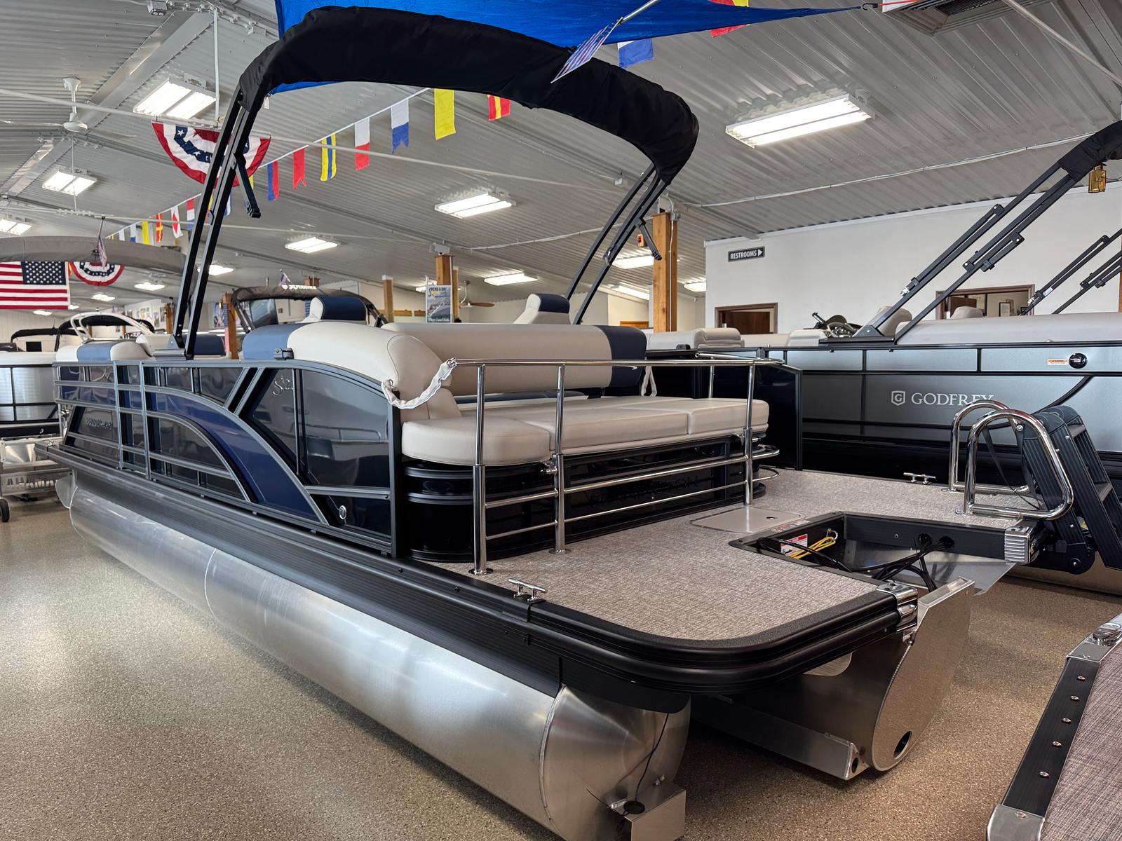 Owning a Bennington 22 SSB SPS pontoon boat means unlocking a world of fun and relaxation. The spacious deck layout is perfect for socializing, allowing you to host gatherings, enjoy meals, or simply lounge in comfort. The plush seating and thoughtful design create an inviting atmosphere, making every outing feel like a special occasion. Whether you’re soaking up the sun, taking a refreshing swim, or enjoying a sunset cruise, this pontoon boat offers the ideal setting for making memories with family and friends.The advanced engine and fuel systems ensure that your time on the water is worry-free, with reliable performance and efficient operation. The electric power top makes it easy to adjust your shade on the fly, so you can stay comfortable no matter the weather. With its stylish accents and premium materials, the Bennington 22 SSB SPS is as much a pleasure to look at as it is to own.