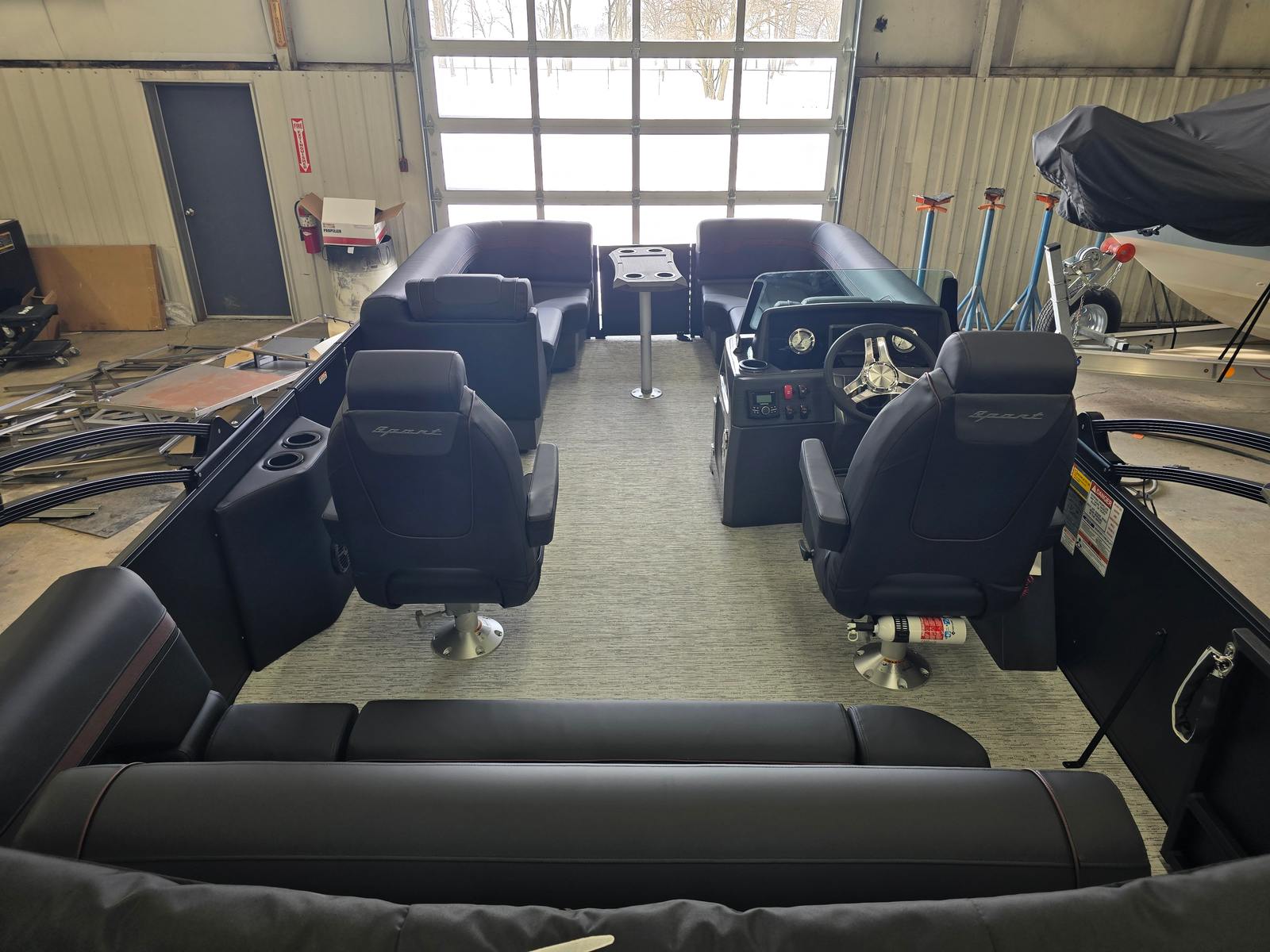 The Bennington 22 SSB SPS is loaded with features that enhance both its functionality and visual appeal. The single switch battery system provides reliable power management, giving you peace of mind during extended trips. The Blackout Logos and Blackout Luxe Package add a touch of sophistication and modern flair, making this pontoon a true head-turner wherever you go.For those who appreciate comfort and style, the interior accent in Sunset Red Simtex and the smooth Sunset Red accent create a warm and inviting atmosphere. The Ironwood Dash Accent adds a touch of elegance to the helm, while the canvas in Midnight Black offers both protection and a sleek look. The Bimini - Electric Power Top Curved Analog S Blk provides effortless shade and shelter, allowing you to enjoy the outdoors in comfort regardless of the weather.