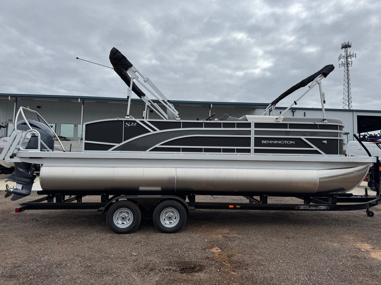The Bennington 22 SSB SPS is packed with features that enhance comfort, convenience, and enjoyment on the water. Its spacious 22-foot layout provides ample room for family and friends to relax, socialize, and soak up the sun. The thoughtfully designed seating arrangement ensures everyone has a comfortable spot, while the sturdy construction and premium materials reflect Bennington’s dedication to quality.Special features of the 22 SSB SPS include a stylish and functional layout that maximizes both space and usability. The pontoon’s design allows for easy movement throughout the deck, making it ideal for entertaining guests or simply enjoying a peaceful day on the water. With its modern aesthetic and attention to detail, this Bennington boat for sale is as visually appealing as it is practical.
