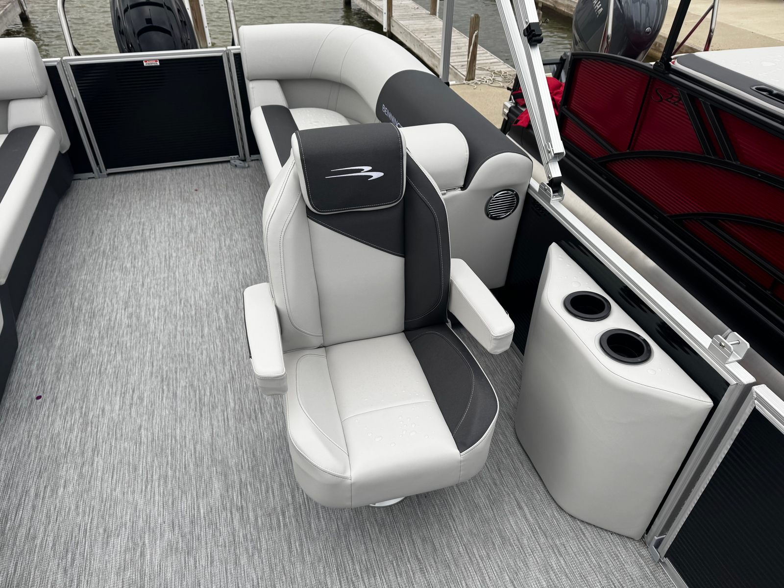 The 2026 Bennington 22 SSR SPS is loaded with special features designed to elevate your time on the water. The Switching S Analog system provides intuitive control over your boat’s functions, while the Display Main S Analog V3 Echomap offers clear, real-time navigation and system information. The striking Gemini Black panel color, complemented by a sleek black canvas and Leon Light Silver base vinyl, creates a modern and sophisticated aesthetic. Dimensional Brushed Silver Logos add a touch of elegance, while the Package Trim S Series Snap ensures a polished finish throughout the vessel. Every detail has been thoughtfully crafted to deliver both style and functionality, making this Bennington pontoon boat for sale a true standout in its class.
