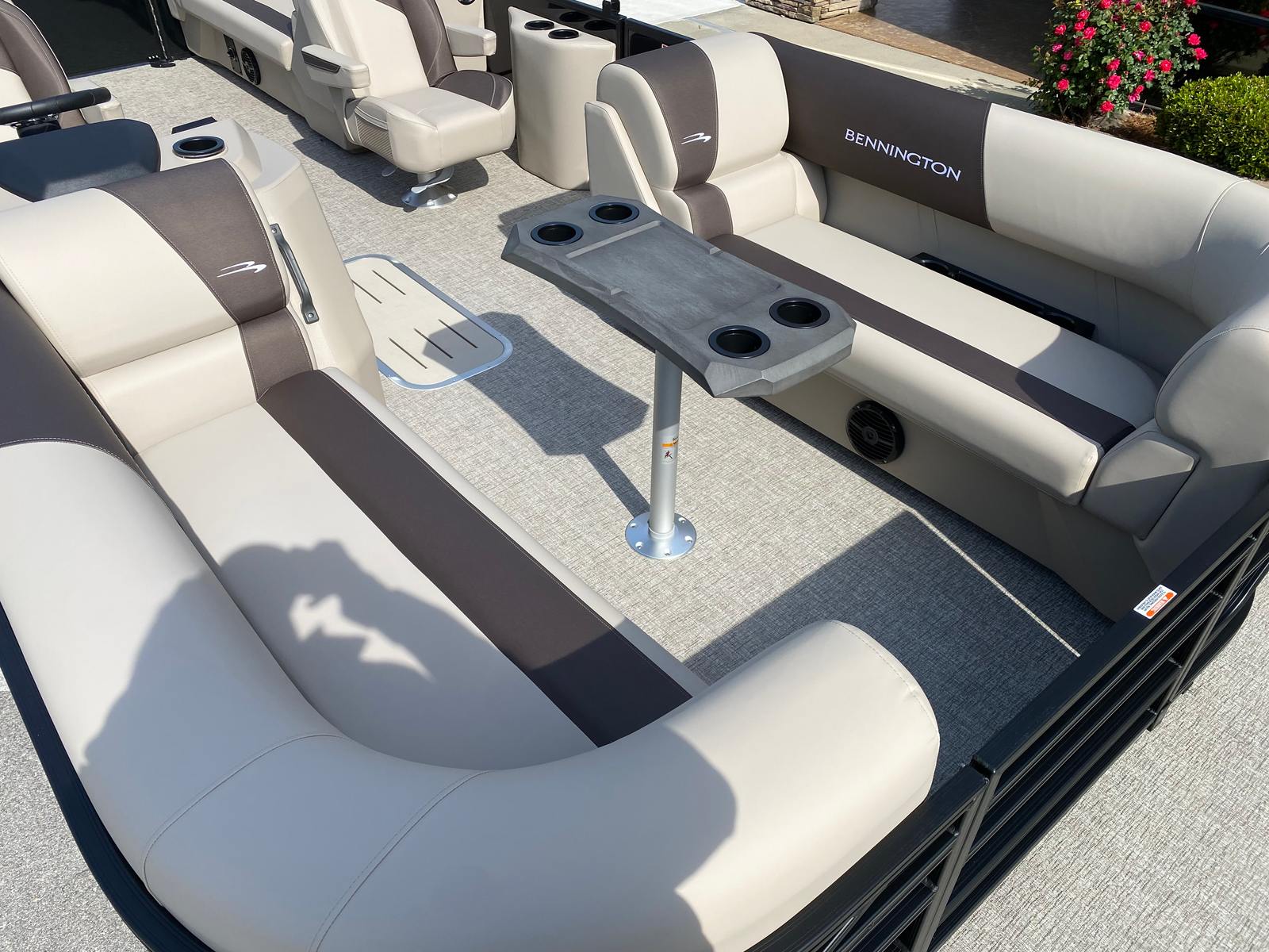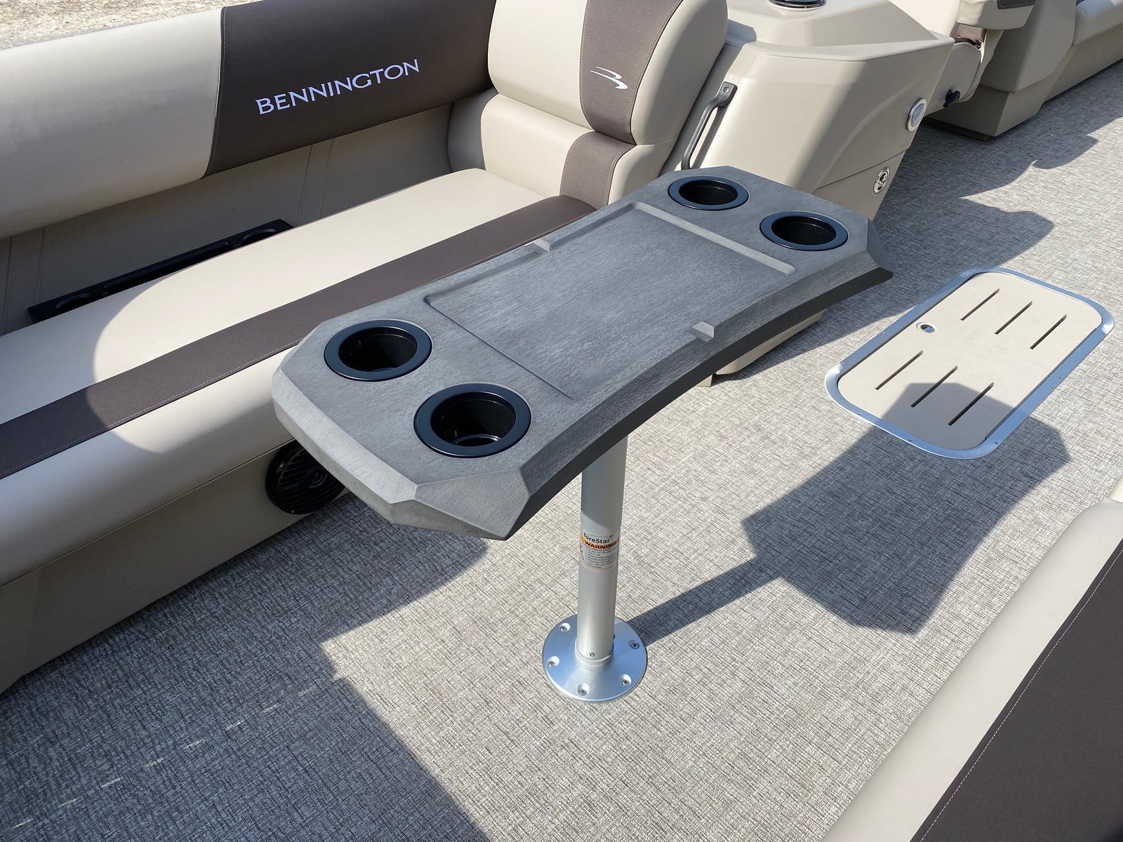 The Bennington 22 SSR SPS is designed with practicality in mind. The extended aft deck provides a convenient platform for swimming, fishing, or launching watersports, while the pop-up cleats simplify docking and mooring. The in-floor storage is perfect for stowing life jackets, fishing gear, or picnic supplies, making it easy to keep your pontoon organized.The single battery switch streamlines power management, ensuring your electrical systems are always ready when you need them. The Yamaha Mechanical Pre-Rig offers reliable engine control, so you can focus on the fun without worrying about complicated maintenance.