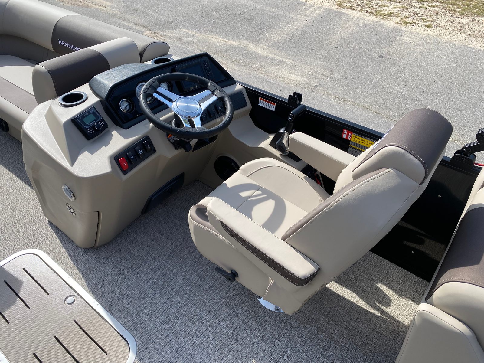 The Bennington 22 SSR SPS is loaded with special features that elevate your boating experience. The SPS Performance Package is engineered for superior handling and comfort, making every ride smooth and enjoyable. The extended aft deck offers extra space for lounging, fishing, or preparing for watersports, while the striking black anodizing adds a touch of modern elegance to the pontoon’s exterior.For those who love technology and navigation, the conNonElevated Garmin Echomap 52CV Chartplotter provides advanced charting and fish-finding capabilities, ensuring you always know where you are and what’s beneath the surface. In-floor storage keeps your gear organized and out of the way, maximizing deck space for relaxation and fun.The ski tow bar is perfect for towing water skiers, wakeboarders, or tubes, adding an extra layer of excitement to your outings. Pop-up cleats at both the bow and aft make docking and securing your pontoon effortless, while the single battery switch offers simple and reliable power management.