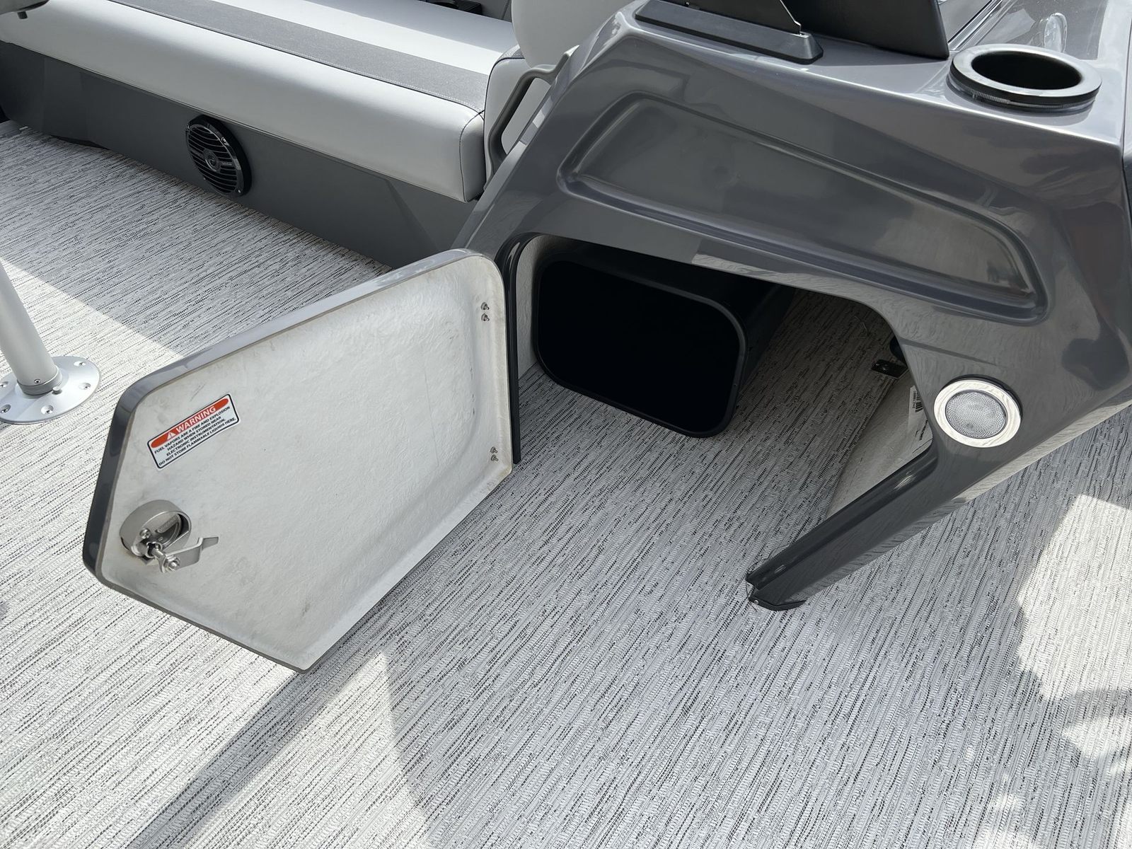 Beyond its luxurious amenities, the Bennington 22 SSR SPS is engineered for practical, everyday use. The spacious deck offers plenty of room for coolers, gear, and personal items, making it easy to prepare for a day on the water. The efficient Yamaha F150XD engine helps keep fuel costs manageable, while the single switch battery system simplifies operation and maintenance. Docking is a breeze thanks to the pontoon’s stable design and extended aft deck, allowing for easy boarding and unloading. Whether you’re planning a quick afternoon escape or a full-day adventure, this pontoon boat for sale is equipped to handle your needs with style and reliability.