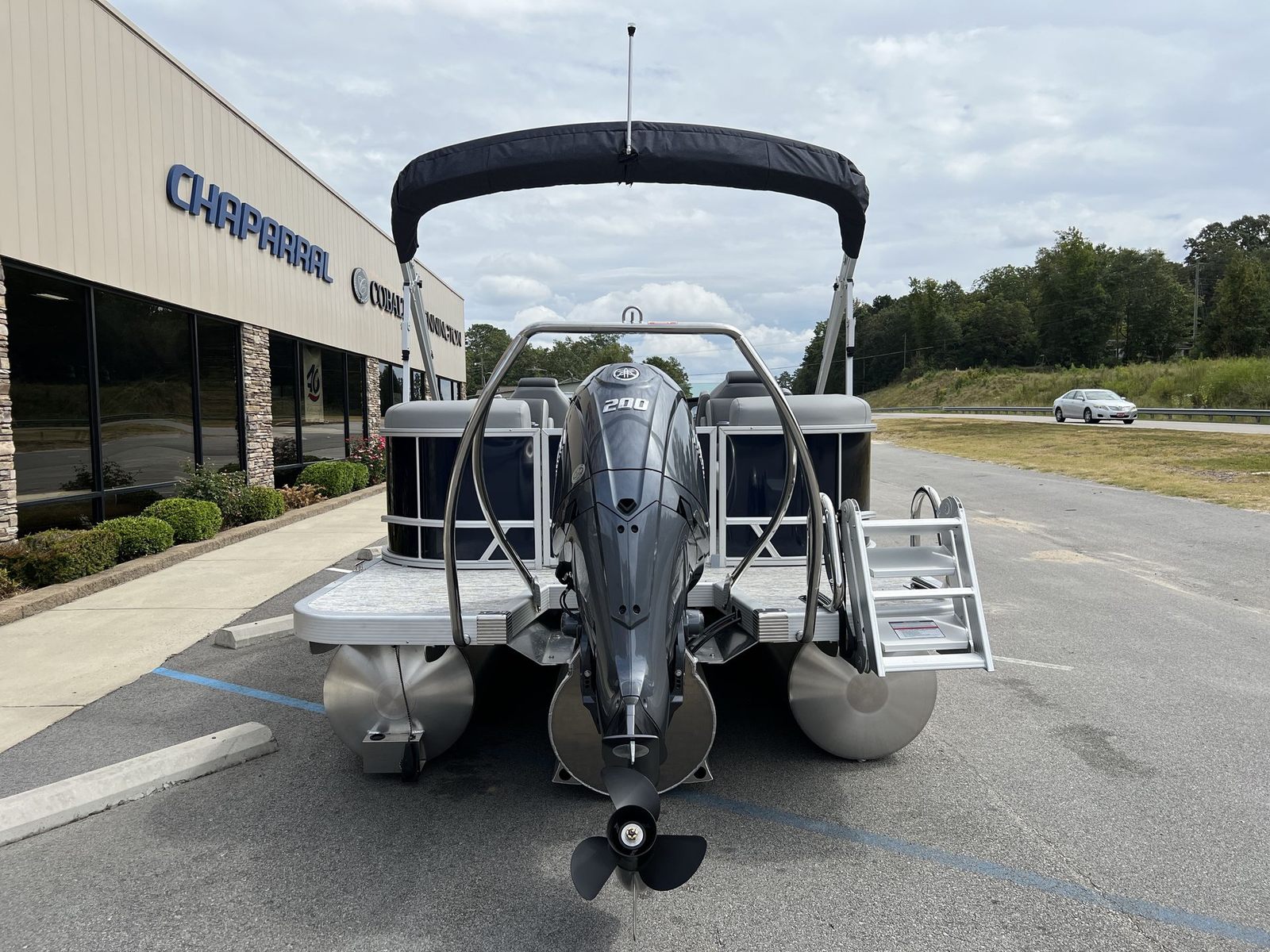 Step aboard the Bennington 22 SSR SPS and discover a world of comfort and innovation. The Serene Soft Touch Vinyl with Simtex accents provides a plush, inviting seating experience, while the Shadow Gray color scheme and Ironwood dash accent create a sophisticated atmosphere. The extended aft deck, finished with standard trim, offers additional space for relaxation and activities, complemented by the ski tow bar for those who love water sports. Dimensional brusher silver logos add a touch of elegance, and the midnight blue canvas ensures protection from the elements while enhancing the boat’s visual appeal. The smooth, no-accent design keeps the look clean and modern, making this pontoon boat for sale a true standout on any waterway.