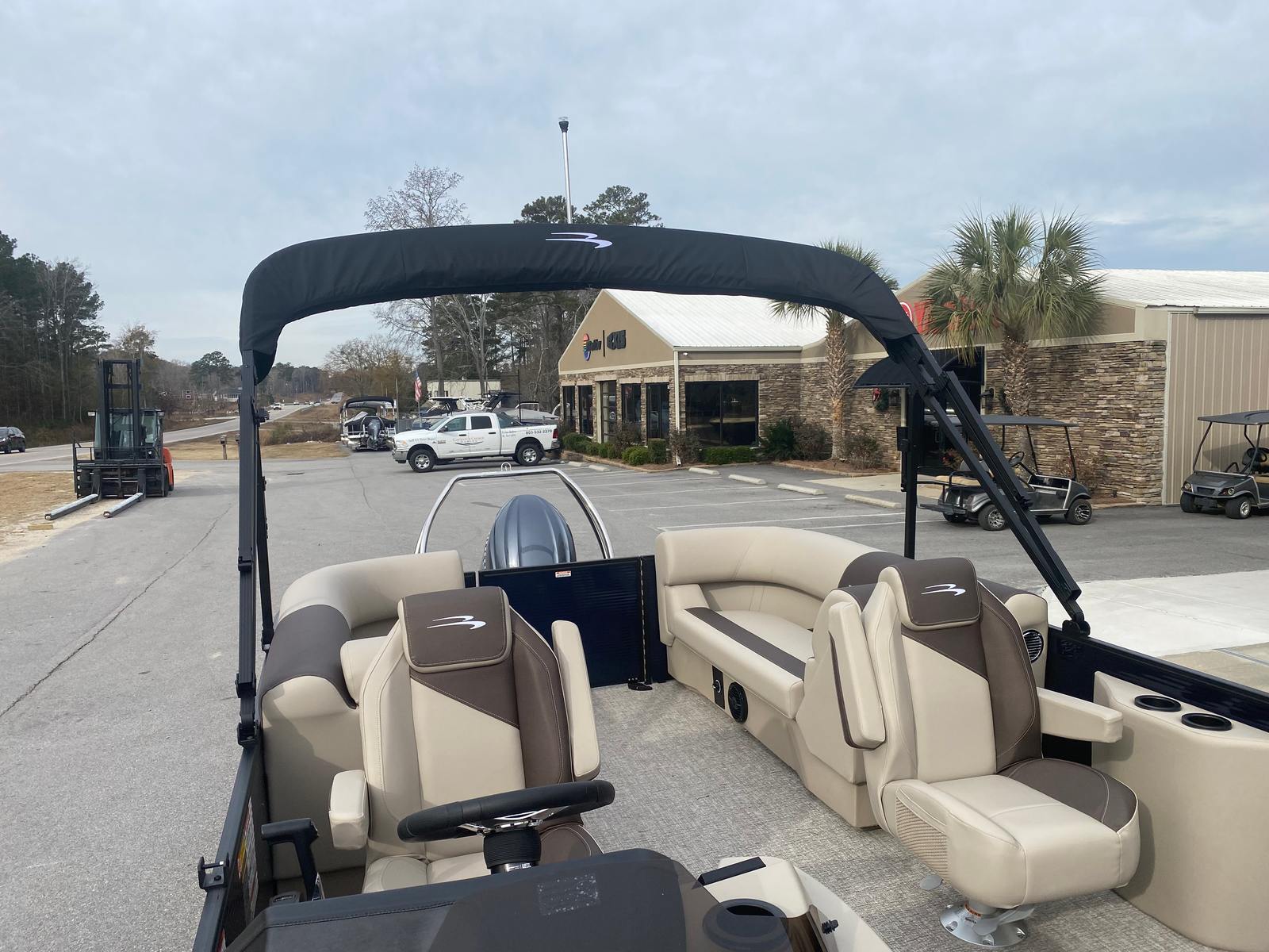 The Bennington 22 SSR SPS is loaded with special features that enhance both its appearance and functionality. The striking Panel in Midnight Blue, complemented by Smooth Satin Black accents, gives this pontoon a modern, upscale look. The Base and Accent in Dolce/Espresso, along with Dolce upholstery, create a warm and inviting atmosphere throughout the boat. The Console Dolce adds a touch of sophistication to the helm, ensuring that every detail is thoughtfully designed.For those who appreciate style, the Blackout Logos provide a sleek, contemporary finish, while the Canvas in Midnight Black offers both protection and aesthetic appeal. The single battery switch simplifies power management, allowing you to focus on enjoying your time on the water. Every element of the Bennington 22 SSR SPS is crafted to deliver a premium boating experience, making it a top contender among pontoon boats for sale.