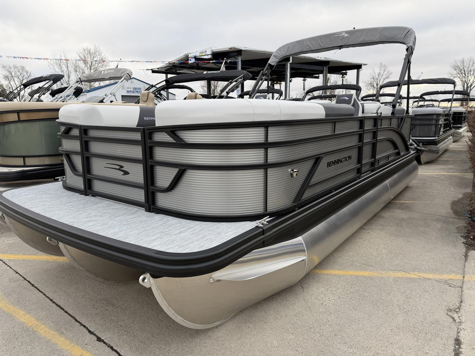 The 2026 Bennington 22 SSR SPS pontoon is a standout choice for anyone seeking a new pontoon boat for sale that combines luxury, performance, and versatility. With its powerful Yamaha F150XD engine, stunning Metallic Silver finish, and a host of premium features—including the Blackout Luxe Package, Ironwood Dash Accent, wireless charger, Ski Tow Bar – SPS, and spacious Bimini—this boat is designed to make every outing memorable.Experience the ultimate in comfort, style, and fun with the Bennington 22 SSR SPS. Whether you are planning family adventures, thrilling watersports, or relaxing cruises, this exceptional pontoon is ready to exceed your expectations. Don’t miss your chance to own a Bennington boat for sale that truly stands out—contact your local dealer today to learn more and start your next adventure on the water.