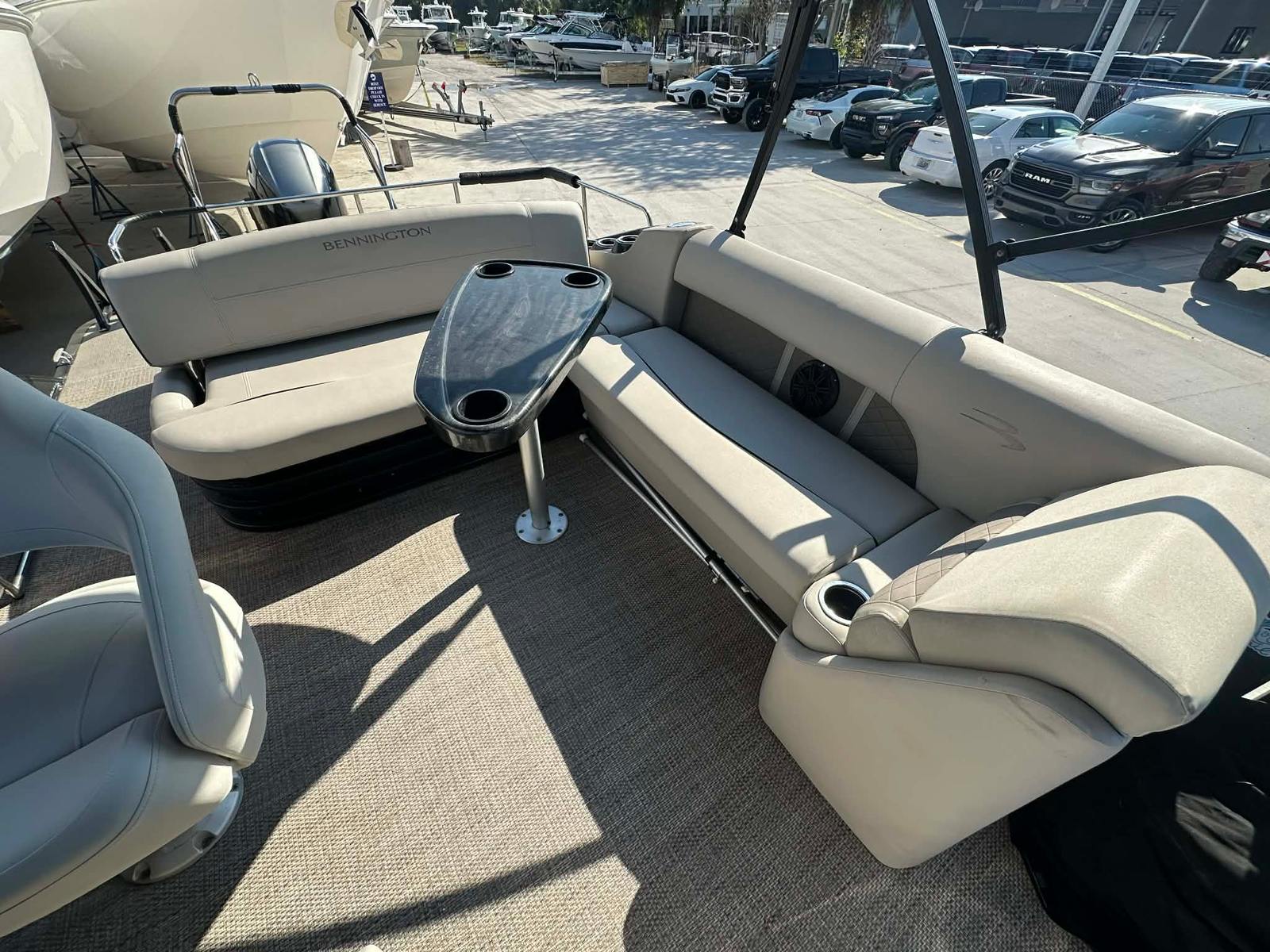 The Bennington 22 SX is renowned for its thoughtful design and attention to detail. The spacious deck layout provides plenty of room for passengers to move about comfortably, making it perfect for entertaining or relaxing. The high-quality construction and durable materials ensure that this pontoon boat remains in excellent condition, even after years of use. The seating is plush and ergonomically designed, offering maximum comfort during long days on the water. Storage compartments are strategically placed throughout the boat, allowing you to keep your gear organized and easily accessible.