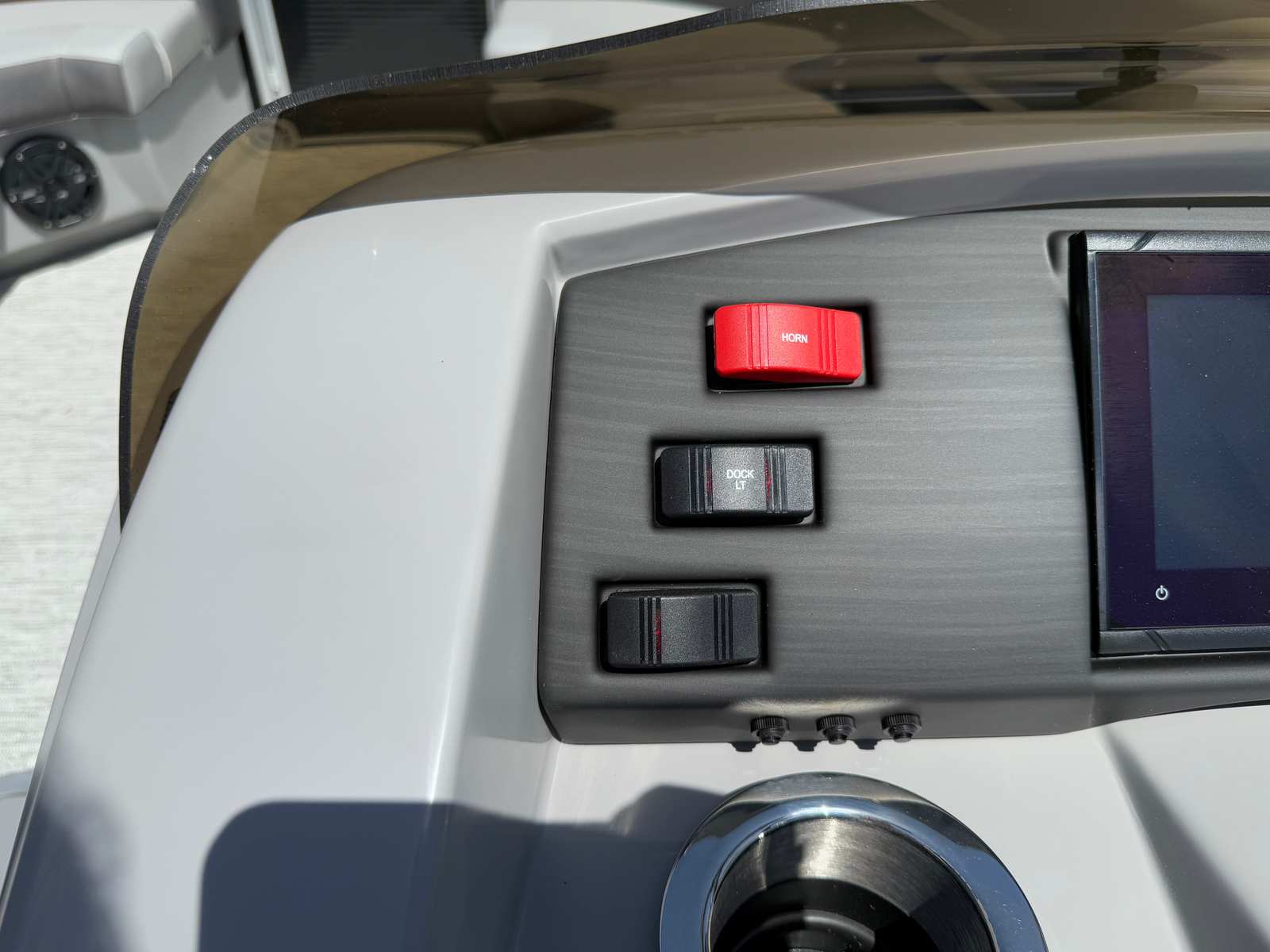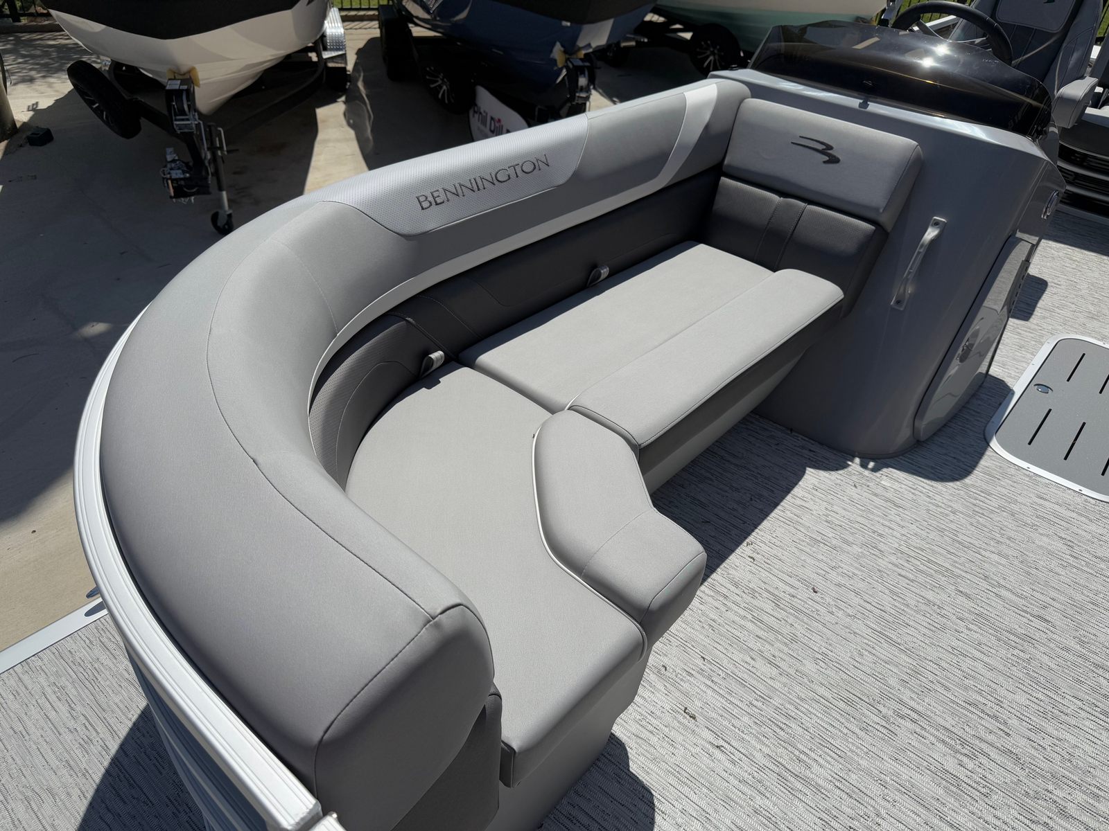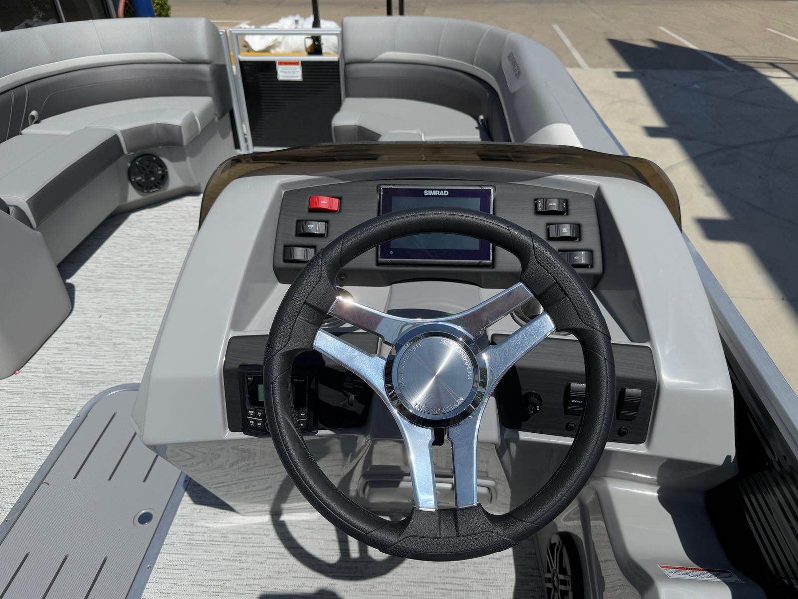 The Bennington 22 Sxsb SPS is loaded with features designed to enhance your boating experience. The portable armrest with stainless steel cup holders offers flexible comfort and convenience, allowing you and your guests to relax in style. Rub rail protectors safeguard your pontoon from everyday bumps and scrapes, preserving its pristine appearance for years to come.For those who love to set the mood, the RGB toe kick lighting and RGB controller SX provide customizable ambient lighting throughout the boat. Whether you are hosting an evening gathering or enjoying a quiet sunset cruise, you can tailor the atmosphere to suit any occasion. The Rockford Fosgate M1 lighted speakers deliver premium sound quality, ensuring your favorite playlists sound incredible on the water, while also adding a visual flair with their integrated lighting.The combination of Metallic Silver accents, Zebrawood Matte Slate finishes, and Arctic Ice White Diamante interior creates a sophisticated and inviting space. Every detail is thoughtfully designed to maximize comfort, style, and functionality, making this Bennington boat for sale a true standout in its class.