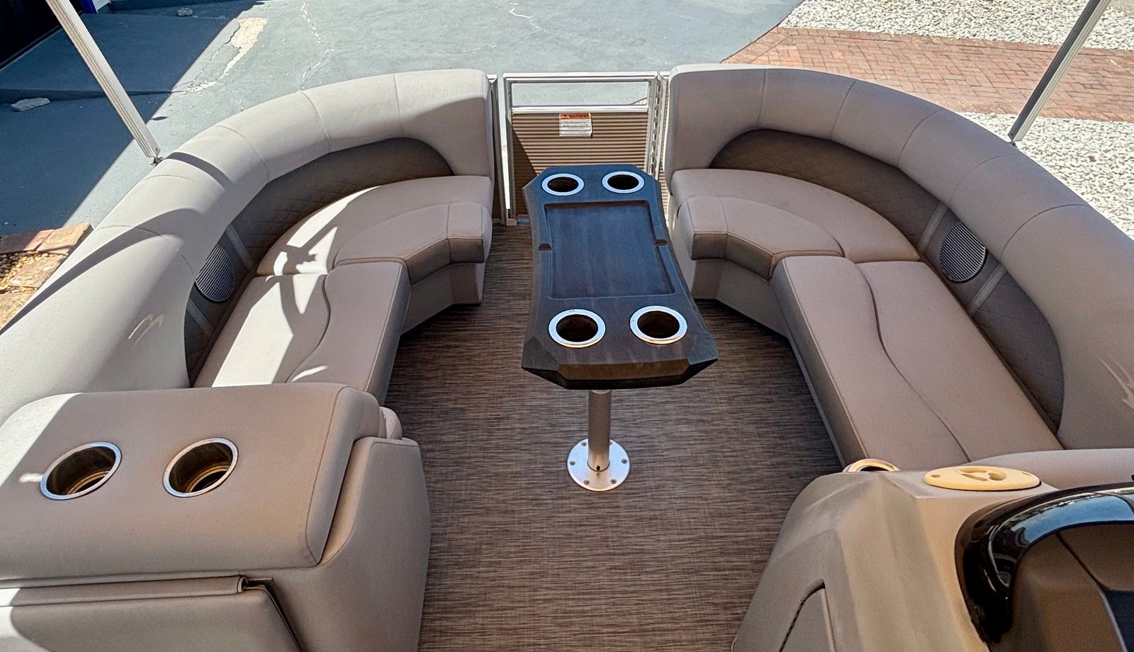 Powered by a single engine with an impressive 150 horsepower, the Bennington 22SSRXP delivers a smooth and responsive ride. This pontoon boat is engineered for both leisurely cruising and spirited adventures, allowing you to glide effortlessly across lakes, rivers, and calm coastal waters. The 150-horsepower engine offers the perfect balance of power and efficiency, ensuring you can enjoy extended outings without worrying about fuel consumption. Whether you’re towing water toys, heading to your favorite fishing spot, or simply enjoying a sunset cruise, the performance of this Bennington boat for sale will exceed your expectations.