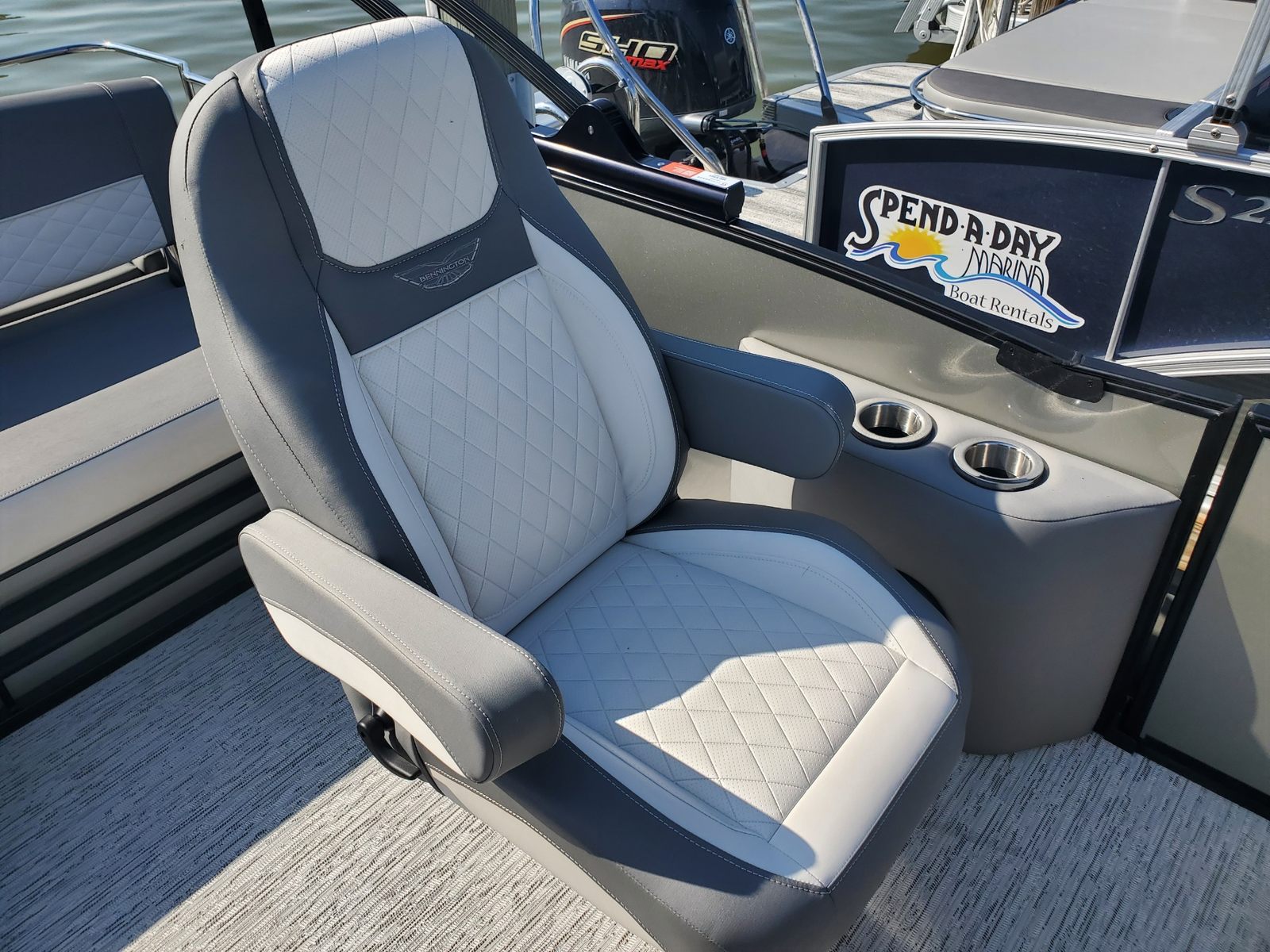 Powering the Bennington 23 Ltsb V is the robust Yamaha F250XB engine, delivering an exhilarating 250 horsepower for smooth cruising, quick acceleration, and effortless handling. This high-performance engine is complemented by Yamaha Digital Pre-Rig technology, ensuring precise control and seamless integration for a superior boating experience. The advanced Sea Star Hydraulic Steering and Power Hydraulic Assist systems provide responsive, effortless maneuverability, making docking and navigating tight spaces a breeze. Whether you’re gliding across calm waters or tackling choppy conditions, this Bennington boat for sale offers the power and agility you need for every adventure.