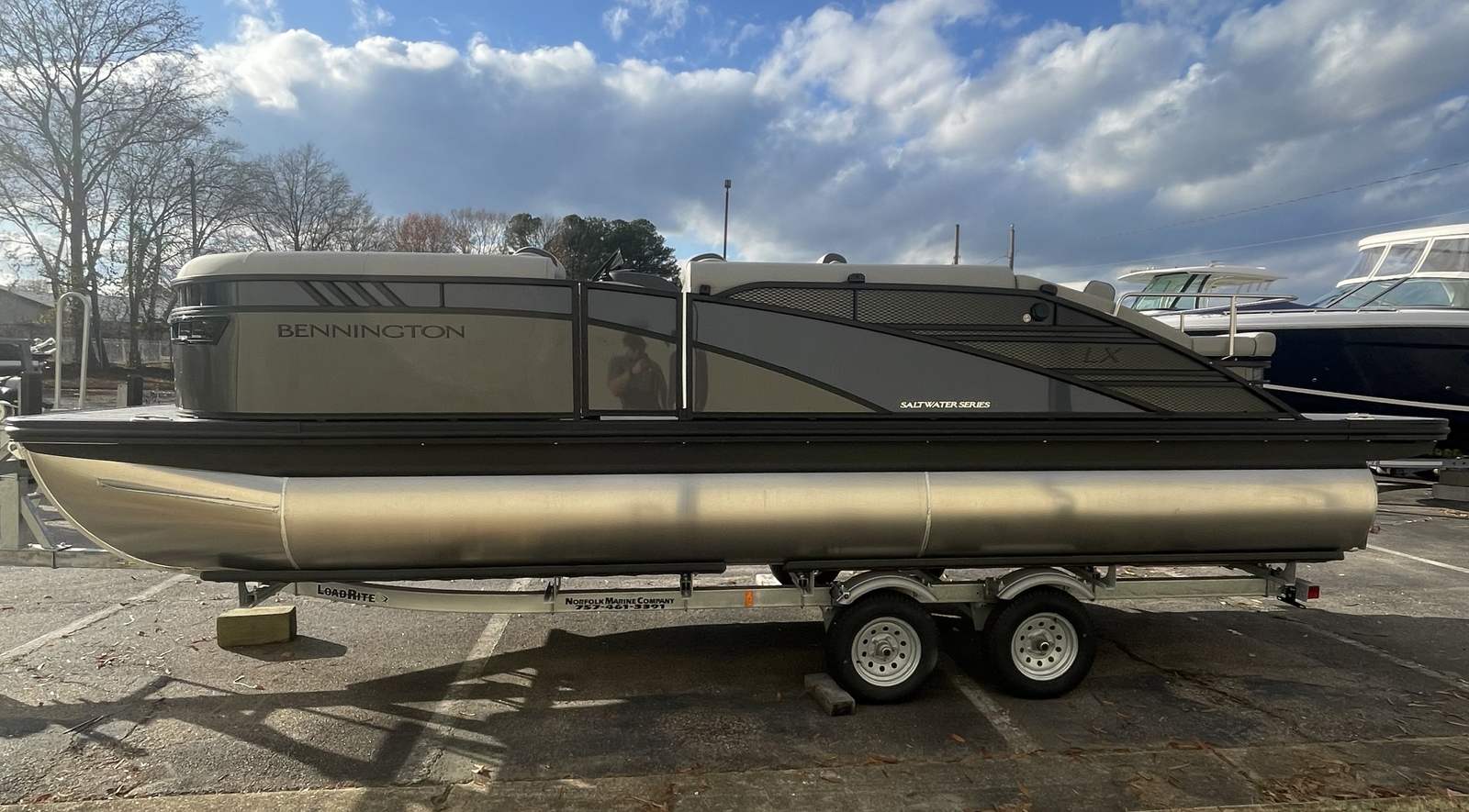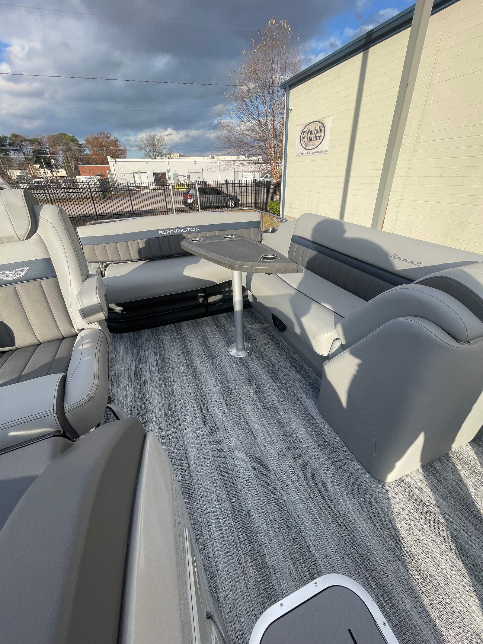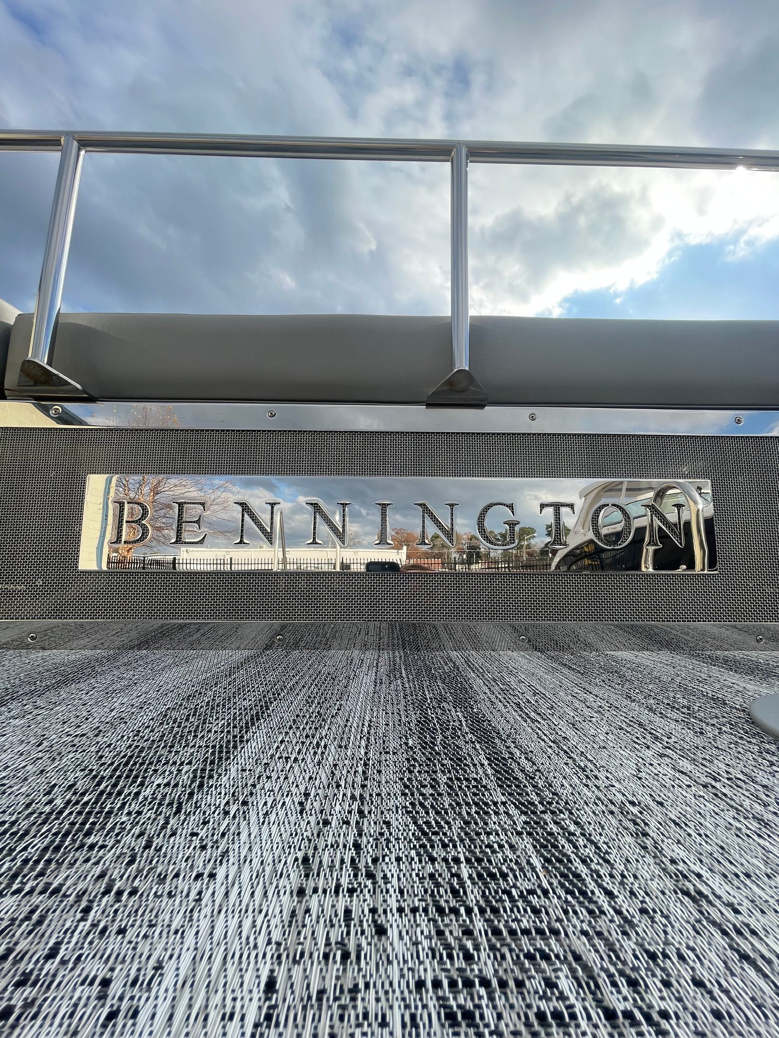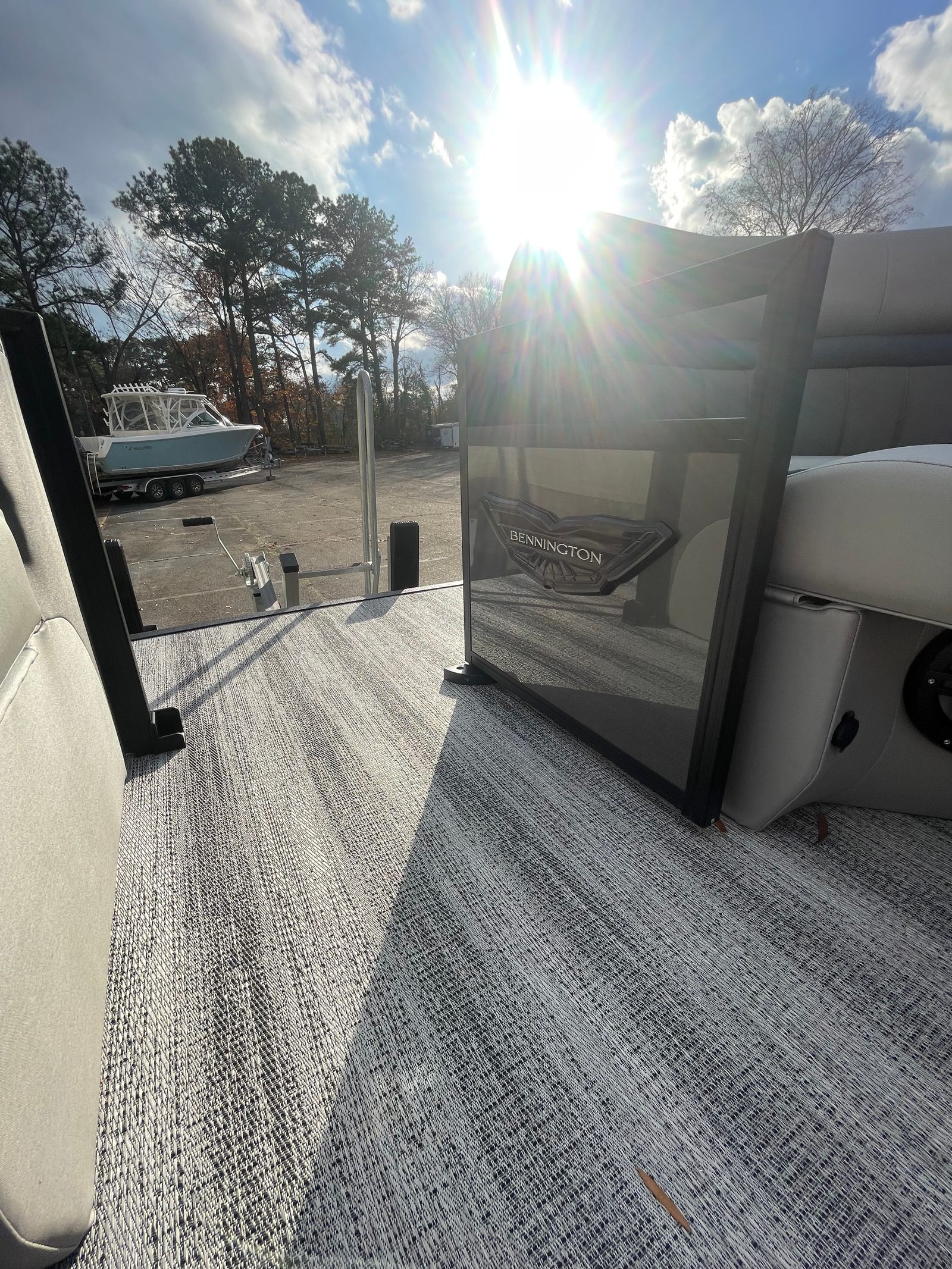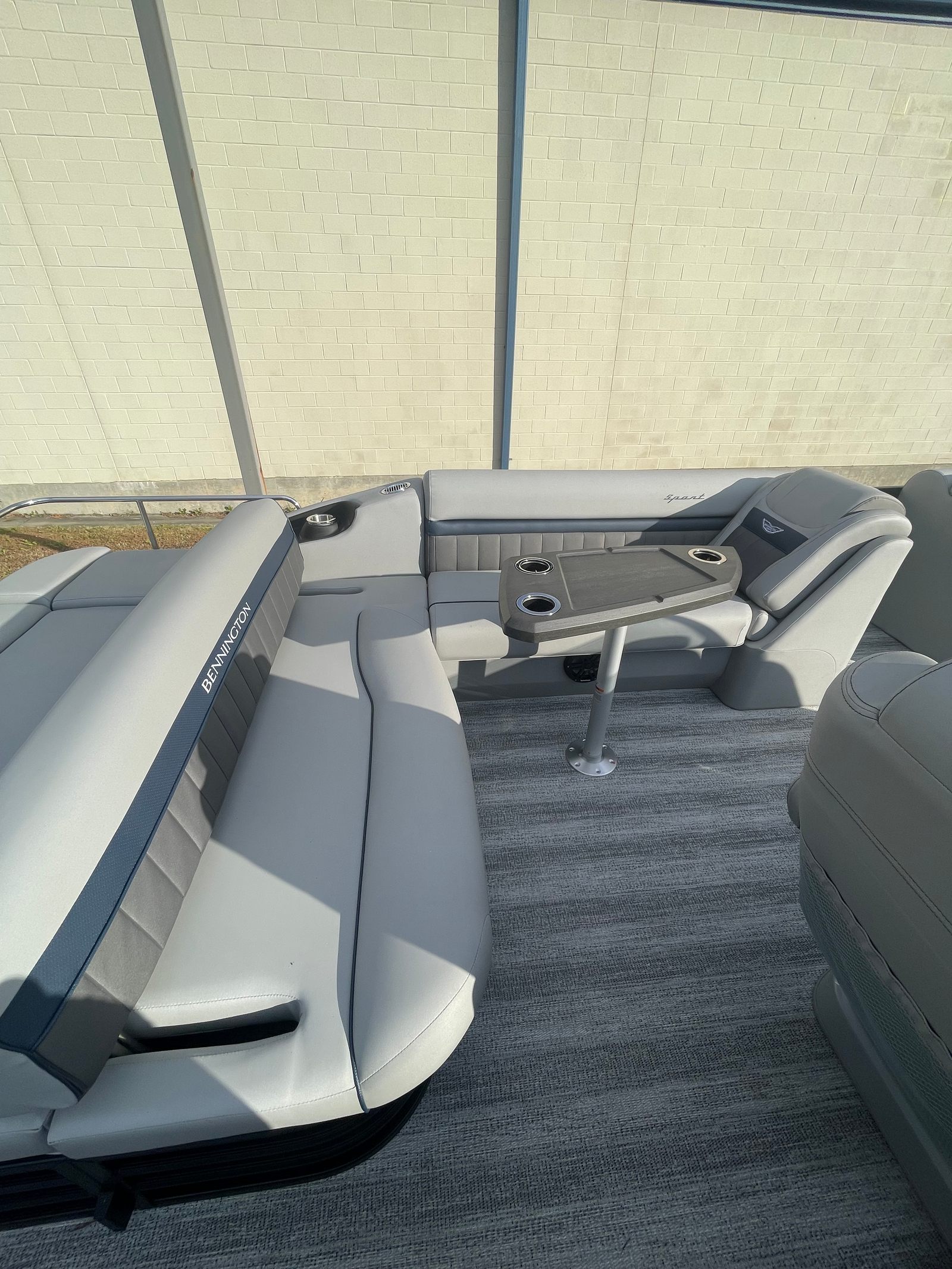 This Bennington pontoon boat for sale is loaded with special features that elevate both its aesthetics and functionality. The Blackout Logos add a touch of modern sophistication, while the Elevated Console Silver enhances visibility and command at the helm. Inside, the Interior Accent - Perforated Ocean Blue brings a fresh, vibrant look, complemented by the Zebrawood Matte Slate trim for a refined finish. The Base Sport Upholstery (LXS) and Silver Simtex materials provide plush seating and durability, ensuring comfort for all passengers. The Stainless Steel Keeper Rail offers added safety and style, rounding out the boat’s premium feel.
