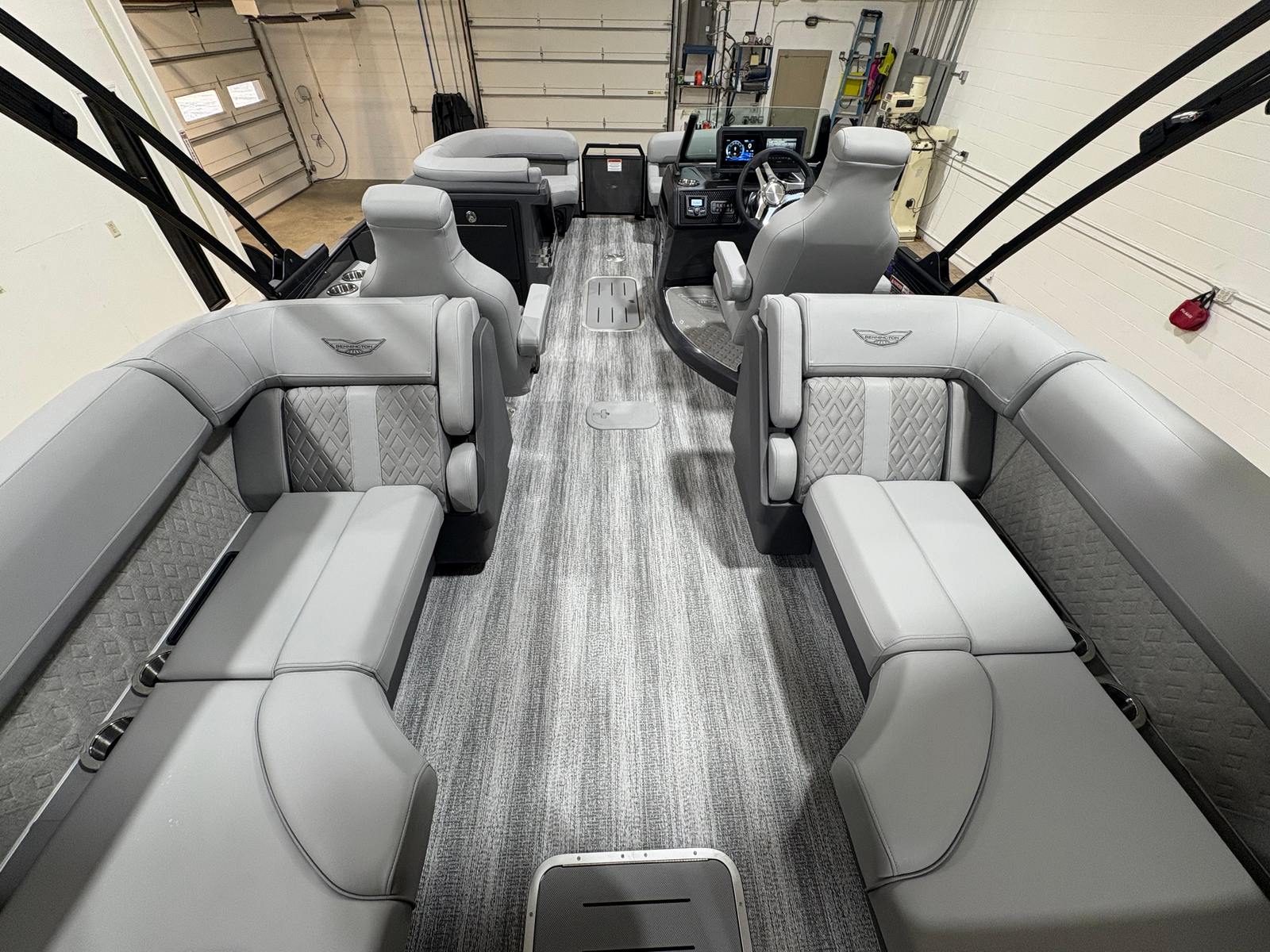Powering the Bennington 23 MFB ESP is a robust Yamaha F250XSB engine, delivering an impressive 250 horsepower. This powerful outboard ensures smooth acceleration, responsive handling, and the ability to cruise effortlessly across lakes, rivers, and coastal waters. The Yamaha Integrated Steering Pre-Rig enhances maneuverability, providing precise control whether you are docking, navigating tight spaces, or enjoying high-speed runs. With this advanced engine setup, you can expect a thrilling yet comfortable ride every time you hit the water.