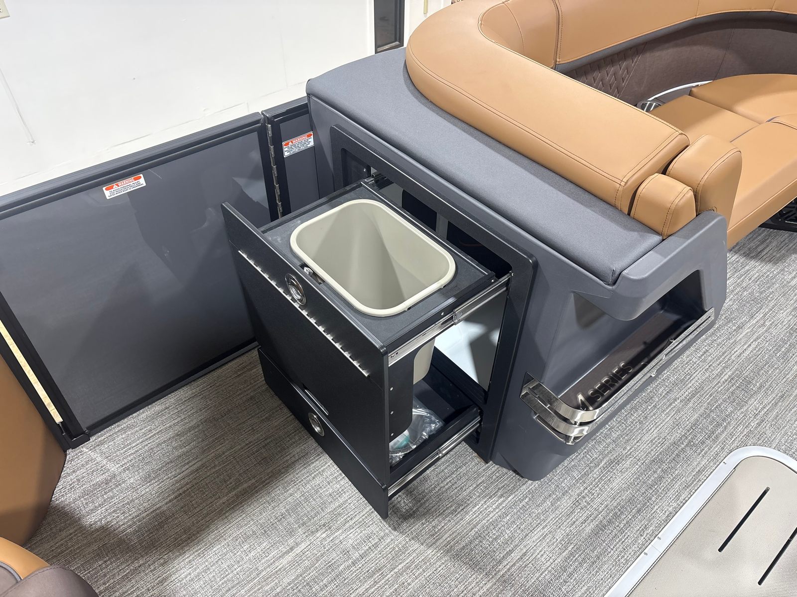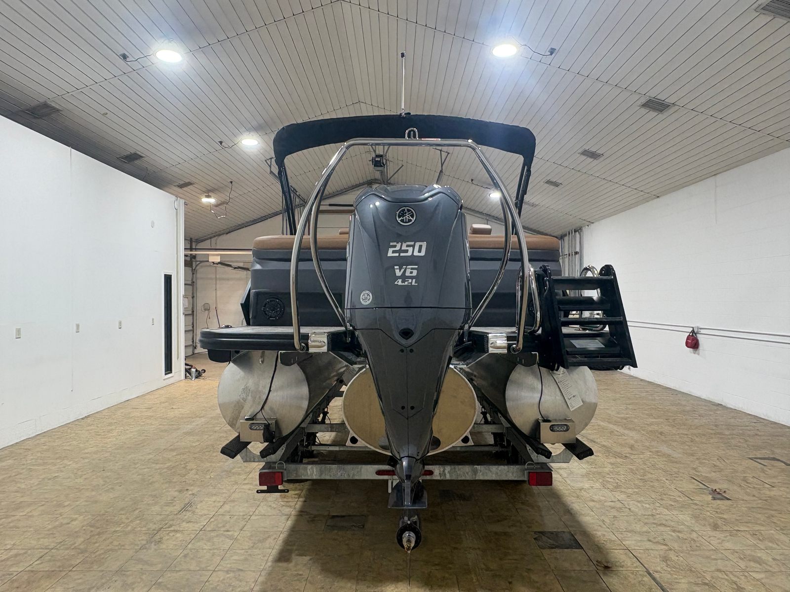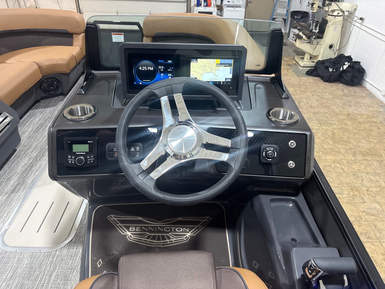 Powering the Bennington 23 MFB ESP is a single Yamaha F250XSB engine, delivering a robust 250 horsepower for exhilarating performance and smooth cruising. The Yamaha Integrated Steering Pre-Rig ensures precise handling and effortless maneuverability, allowing you to navigate lakes, rivers, and coastal waters with confidence. Whether you’re gliding across calm waters or picking up speed for a thrilling ride, this pontoon boat offers a dynamic and responsive experience that will impress both seasoned boaters and newcomers alike.