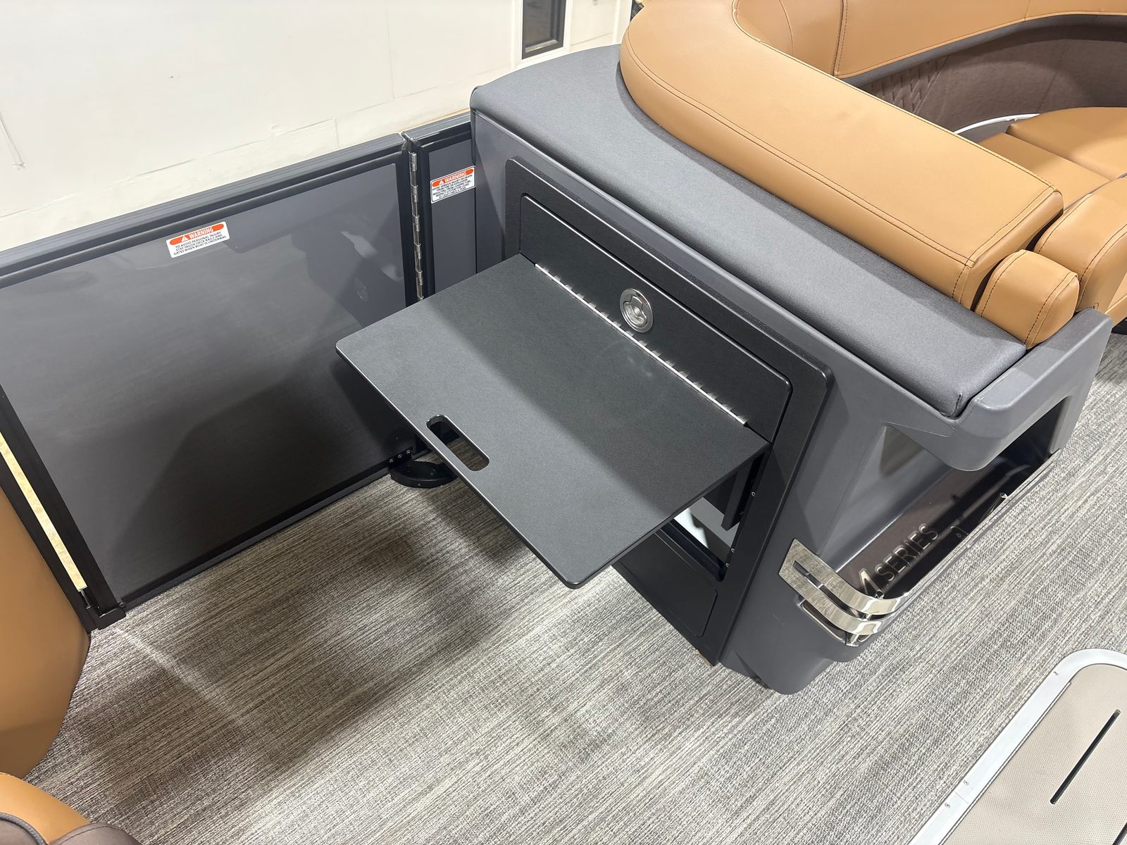 Owning the Bennington 23 MFB ESP pontoon boat means embracing a lifestyle of fun, relaxation, and social connection. The spacious layout is perfect for entertaining guests, hosting family outings, or enjoying a romantic sunset cruise. The illuminated cupholders and ambient lighting create a festive atmosphere, while the premium sound system ensures your favorite tunes are always part of the experience.Comfort is at the forefront of this pontoon’s design, with plush seating and ample room to stretch out and unwind. The electric power top makes it easy to adapt to changing weather conditions, ensuring you stay cool and comfortable throughout your journey. Whether you’re seeking adventure or tranquility, the Bennington 23 MFB ESP delivers both in abundance.