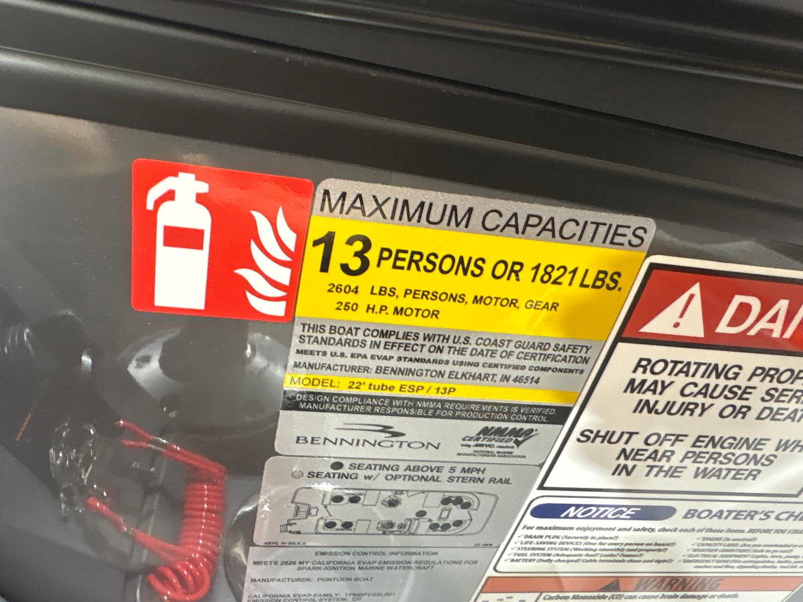The 2026 Bennington 23 MFB ESP is a new pontoon boat that measures an impressive 25.25 feet in length, offering ample space for entertaining, lounging, and enjoying the open water. Bennington is renowned for its commitment to quality and craftsmanship, and the 23 MFB ESP model exemplifies these values with its sleek lines, modern styling, and attention to detail. With its spacious deck and thoughtfully designed layout, this pontoon is ideal for hosting gatherings, soaking up the sun, or simply unwinding in style.