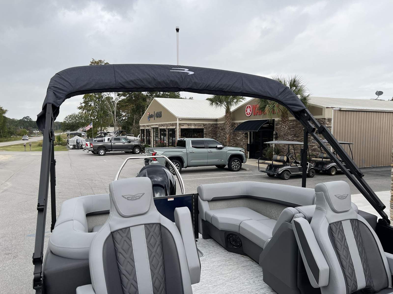 The 2026 Bennington 24 MFB ESP is packed with features that enhance both convenience and enjoyment. The 12 Button Digital Switching system puts control at your fingertips, allowing you to easily manage lighting, electronics, and other onboard systems. The Master Power feature ensures that your boat’s electrical systems are efficiently managed, while the horn adds an essential safety element for signaling on the water.For today’s connected lifestyle, the USBP Panel with Wireless Charging Dock keeps your devices powered up and ready for action. The Midnight Blue canvas not only complements the boat’s striking exterior but also provides shade and protection from the elements. The Veneto Graphite vinyl base offers a luxurious, comfortable seating experience, while the Black Logos and Blackout Luxe Package add a modern, upscale touch to the overall design.