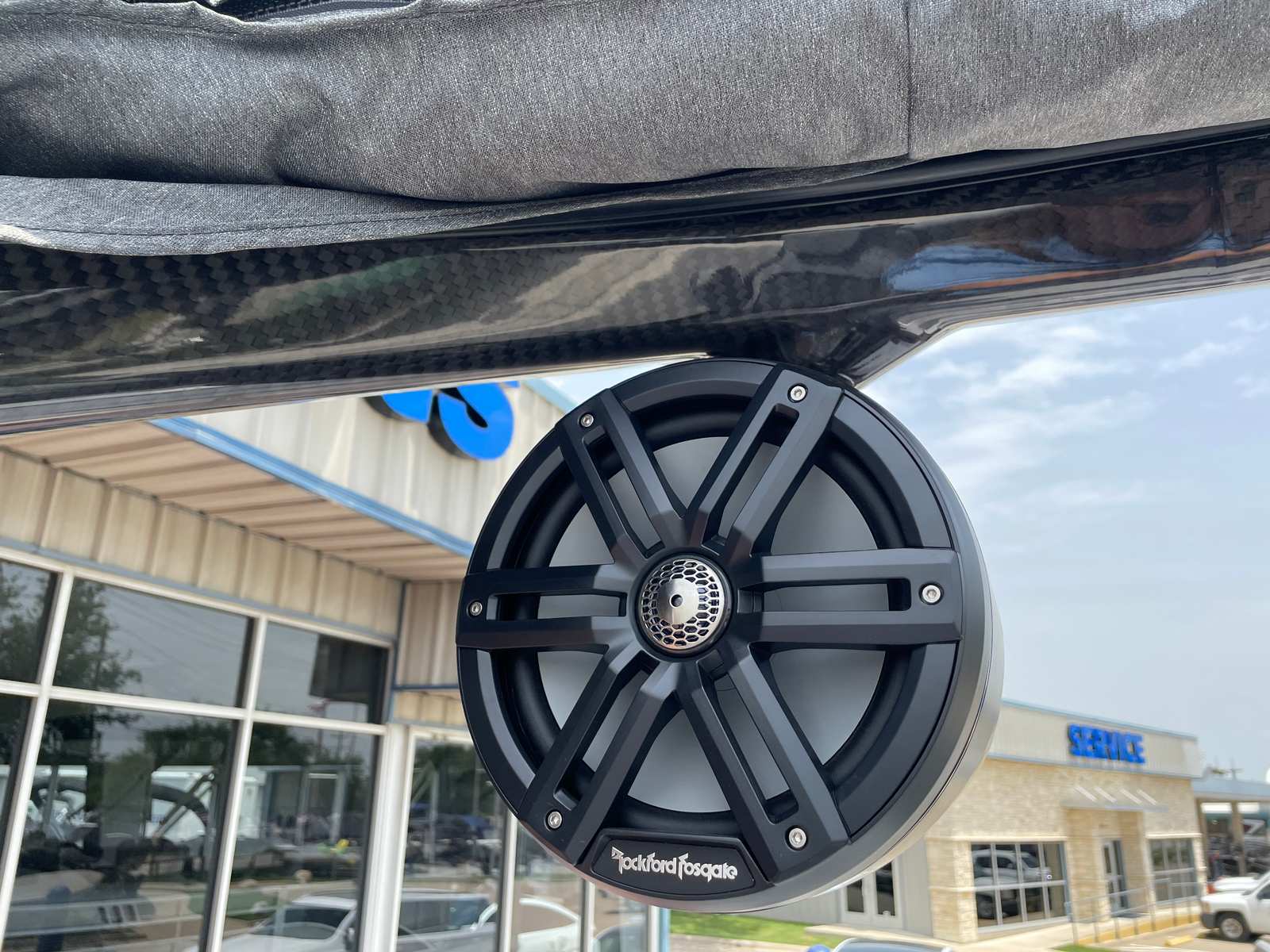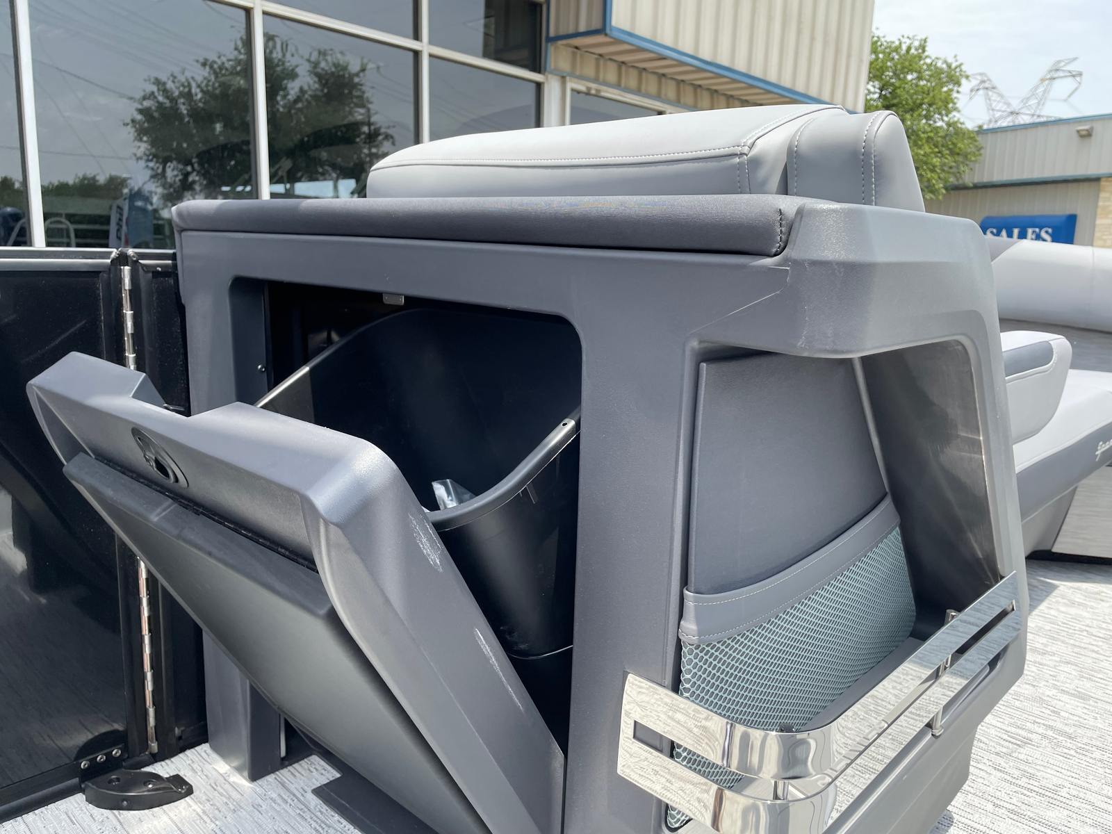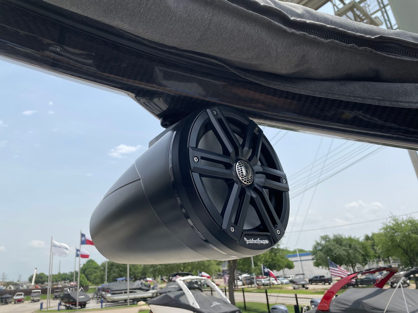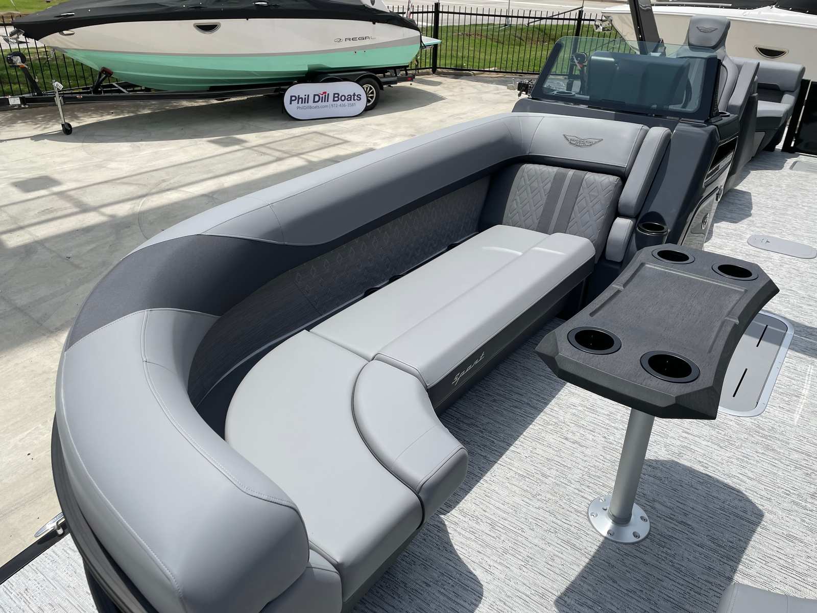 The Bennington 24 MFB SPS Plus is loaded with special features that elevate your time on the water. Enjoy a vibrant atmosphere with RGB speakers that let you set the mood with customizable lighting and high-quality sound. The toekick lights, with two 41-inch and two 62-inch fixtures, add a stylish glow to the deck, while lumbar lighting enhances both safety and ambiance during evening cruises. The Sport Furniture M Series provides plush, ergonomic seating for maximum comfort, and the Zebrawood Matte Slate accents add a touch of modern elegance to the interior.For those who love water sports, the ski tow bar makes it easy to enjoy tubing, wakeboarding, or skiing with friends and family. The Valencia Grey color scheme gives the boat a sophisticated, contemporary look, complemented by the black rub rail insert for added durability and style. Every detail of the Bennington 24 MFB SPS Plus is crafted to deliver a premium boating experience.