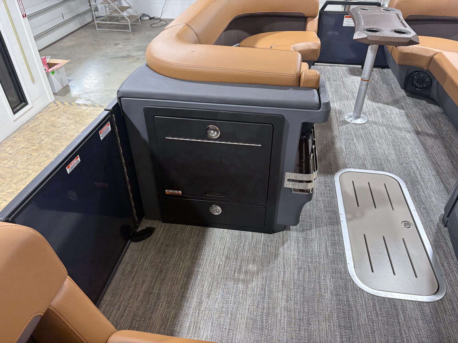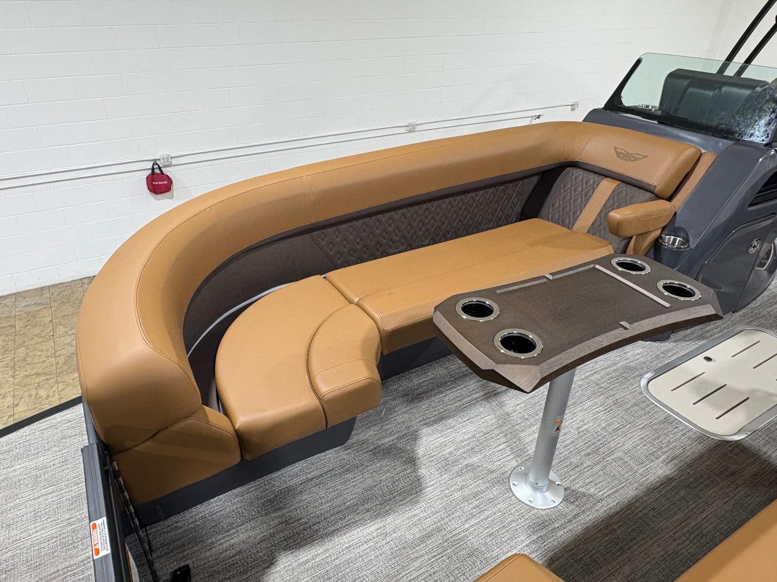 Practicality meets luxury in the Bennington 24 MSB ESP. The aft pop-up cleats simplify the docking process, making it easy to secure your boat at any location. The ESP Performance Package enhances fuel efficiency and handling, so you can spend more time enjoying the water and less time worrying about refueling or maneuvering. The spacious layout provides plenty of room for gear, coolers, and personal items, ensuring that everything you need for a day of fun is always within reach.The midnight black canvas not only adds style but also offers protection from the elements, keeping your boat looking pristine. The power hydraulic assist steering makes navigation effortless, even in challenging conditions, while the advanced touchscreen display keeps you informed and in control. Every feature is designed to make ownership easy, enjoyable, and worry-free.