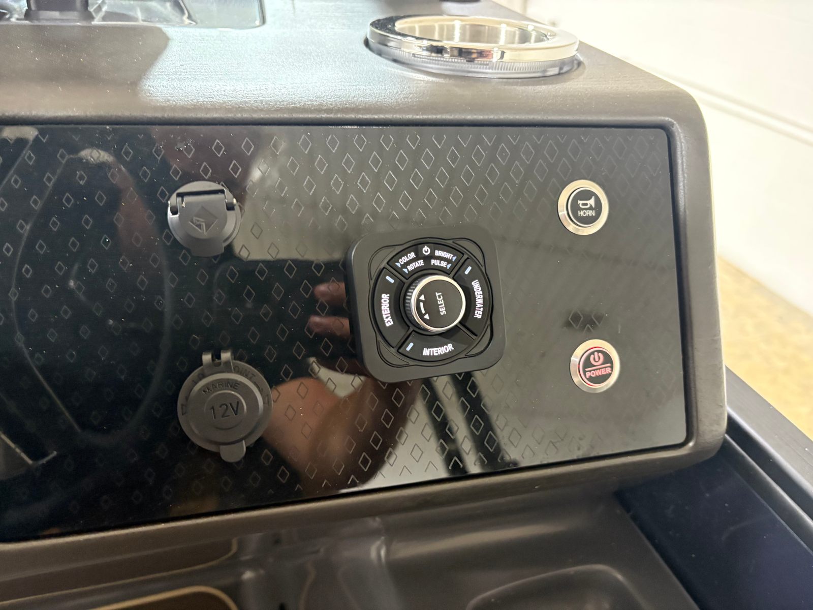 The Bennington 24 MSB ESP is packed with special features that set it apart from other pontoon boats for sale. The electric power top curved Bimini (12B S/M Blk) provides convenient shade and protection from the sun, while the midnight black canvas adds a touch of sophistication to the overall aesthetic. Aft pop-up cleats make docking and securing the boat a breeze, enhancing both safety and convenience. The RGB Control M Series allows you to customize the onboard lighting to match your mood or occasion, creating a vibrant atmosphere for evening cruises or celebrations.Entertainment is at the forefront with Rockford Fosgate M1 lighted speakers, delivering high-quality sound and immersive audio experiences. The 7" Vivid UX touchscreen display puts navigation and system controls at your fingertips, ensuring that every aspect of your journey is easily managed. The Blackout Luxe Package adds a bold, modern look, making this Bennington boat for sale a true head-turner on the water.