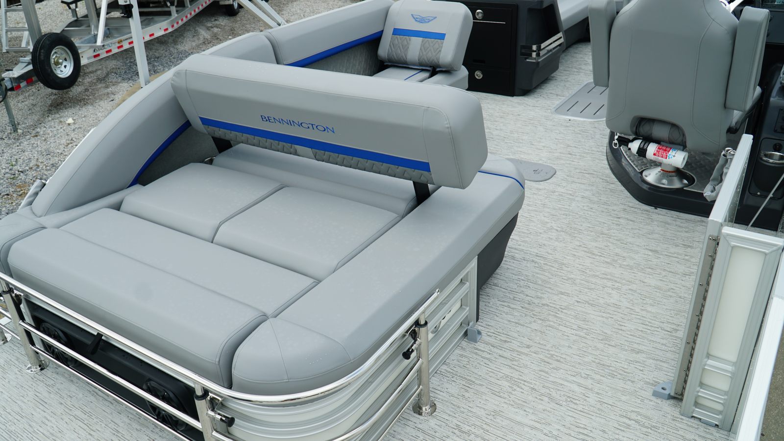 The Bennington 24 MSB ESP is loaded with features designed to enhance your on-water experience. The dual switch battery system with fuse provides peace of mind and reliable power management, ensuring your boat is always ready for action. Toekick lights (2-62") add a touch of ambiance and safety during evening cruises, creating a welcoming atmosphere for you and your guests.For music lovers, the Rockford Fosgate M2 Speaker Amplifier Upgrade and six Rockford Fosgate M1 Lighted Speakers deliver crystal-clear sound and vibrant lighting, transforming your pontoon into a floating entertainment hub. The elevated console with Pocket Mythos offers enhanced visibility and ergonomic controls, while the base furniture from the M Series ensures comfort and style throughout the deck. The elegant Zebrawood Matte Slate accents add a sophisticated touch, making this pontoon boat as visually appealing as it is functional.