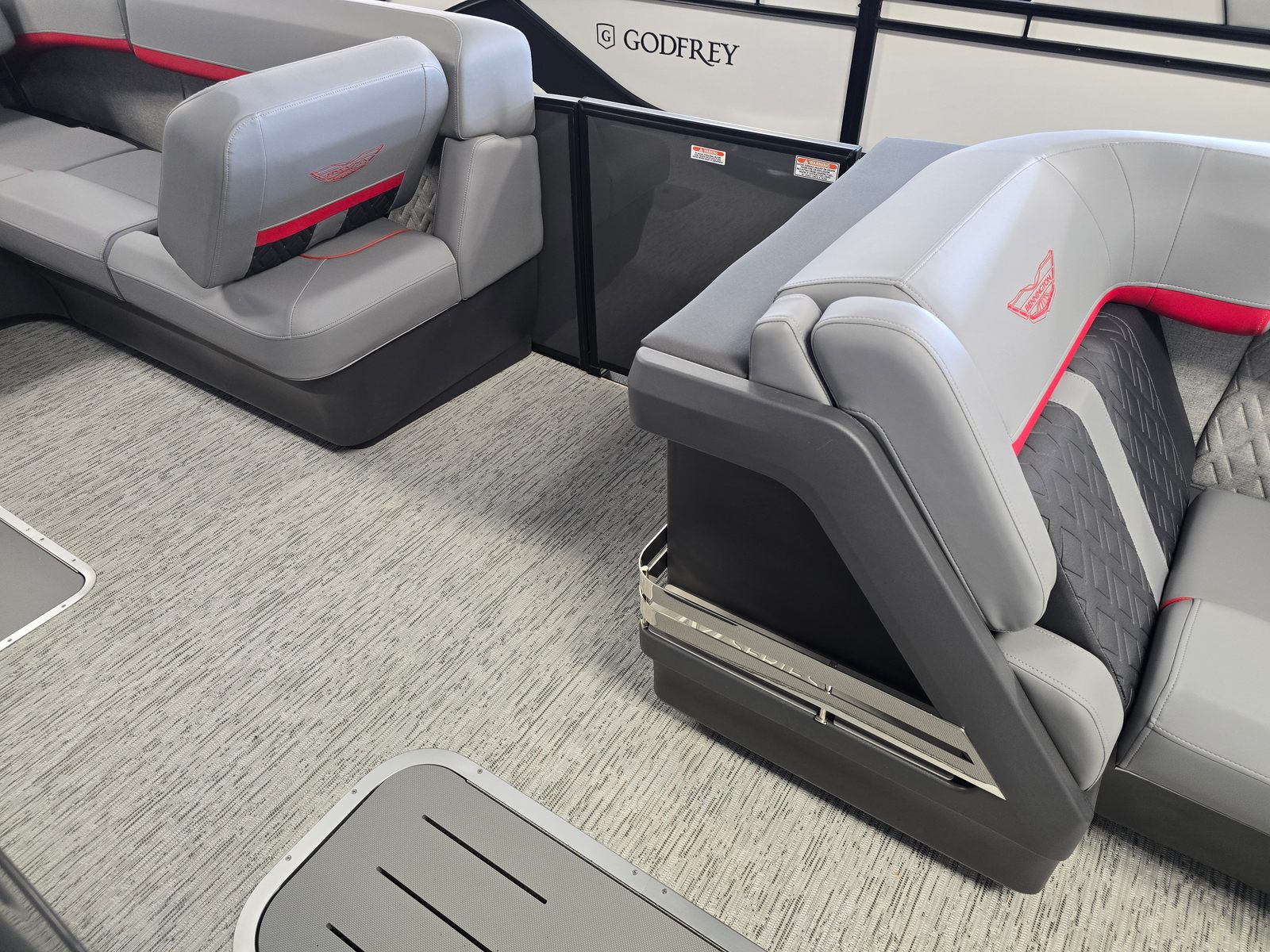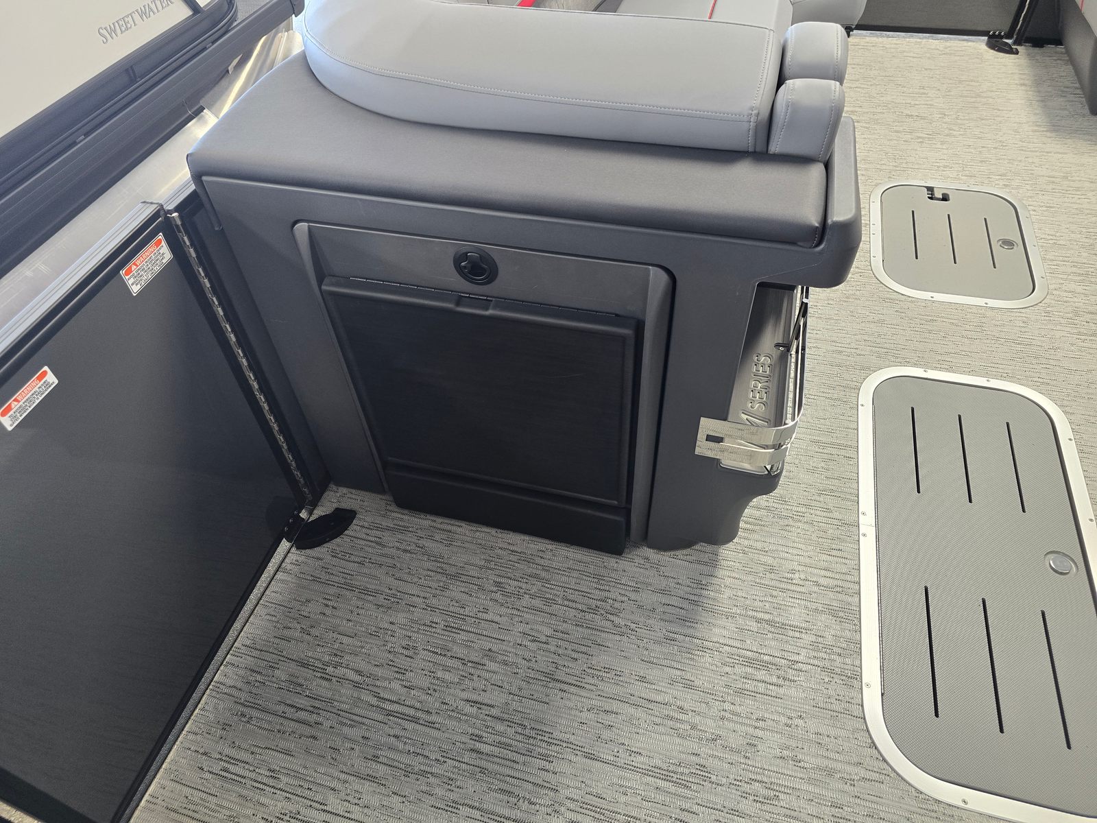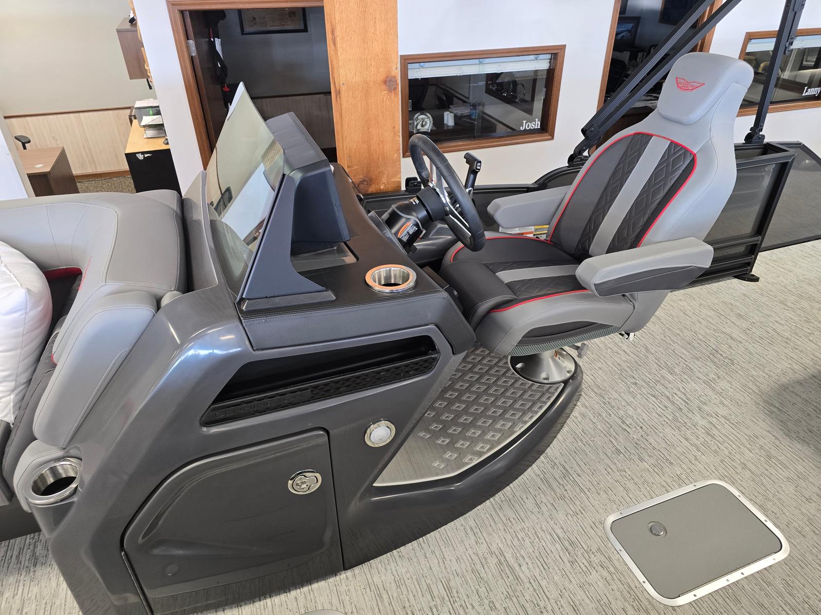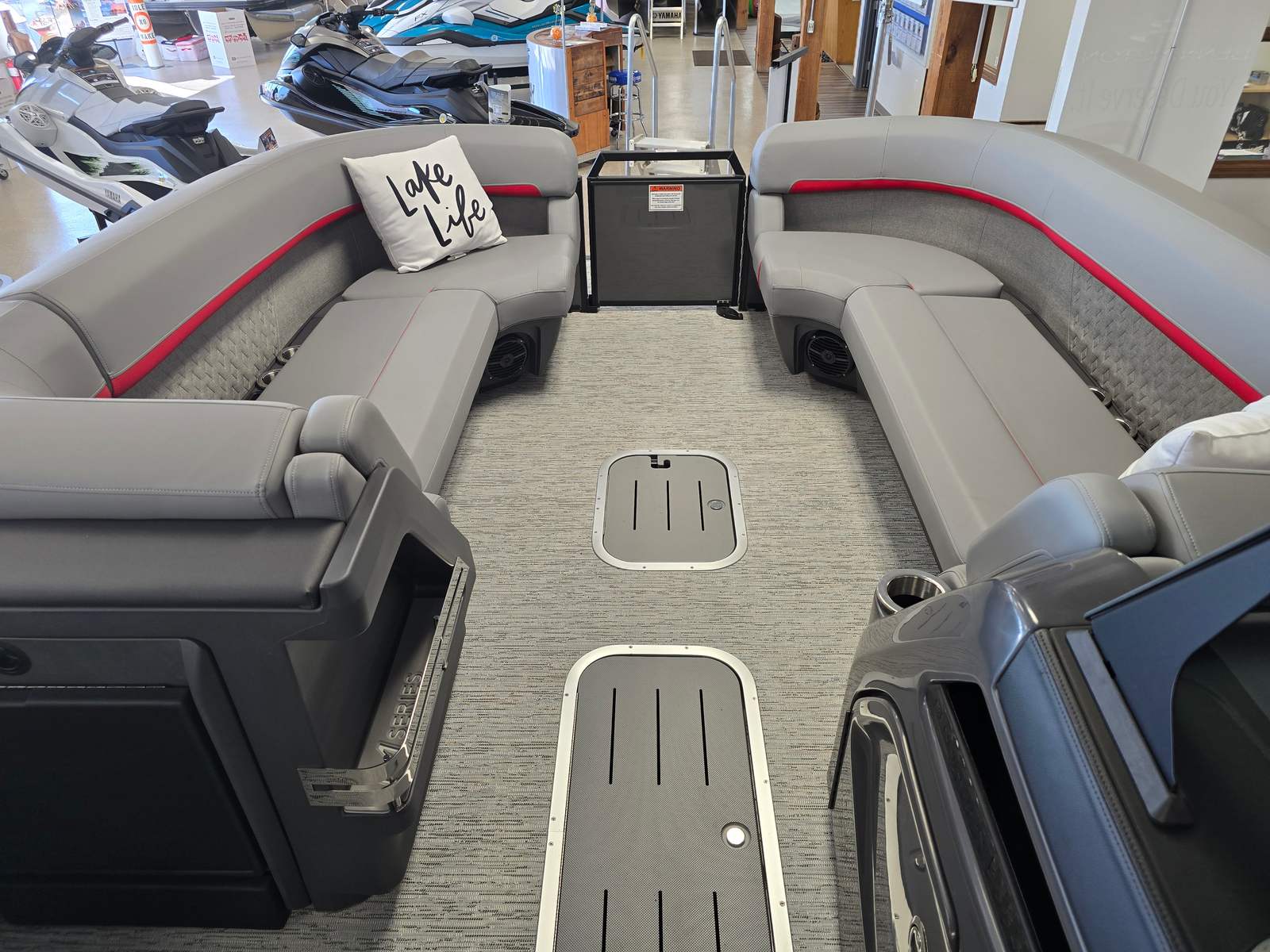 The 2025 Bennington 24 MSB SPS Plus stands out as a premier pontoon boat, offering a spacious 26.25-foot length that ensures ample room for relaxation and recreation. With its sleek Valencia Grey exterior and refined Zebrawood Matte Slate accents, this pontoon is as visually striking as it is functional. The elevated console with Pocket Mythos and Base Furniture M Series provide a sophisticated and comfortable environment for both captain and guests. As a new model, this Bennington boat for sale guarantees the latest advancements in pontoon design and craftsmanship, making it a top contender for anyone seeking a high-quality vessel.