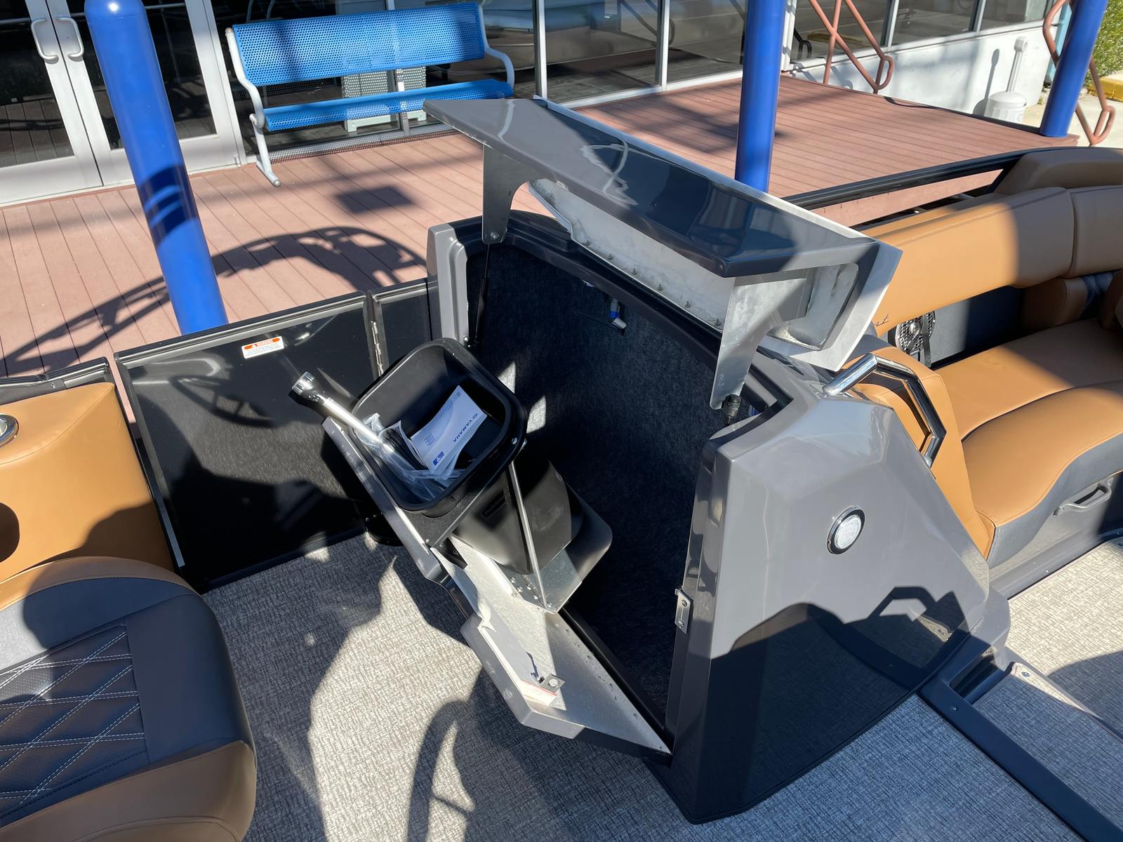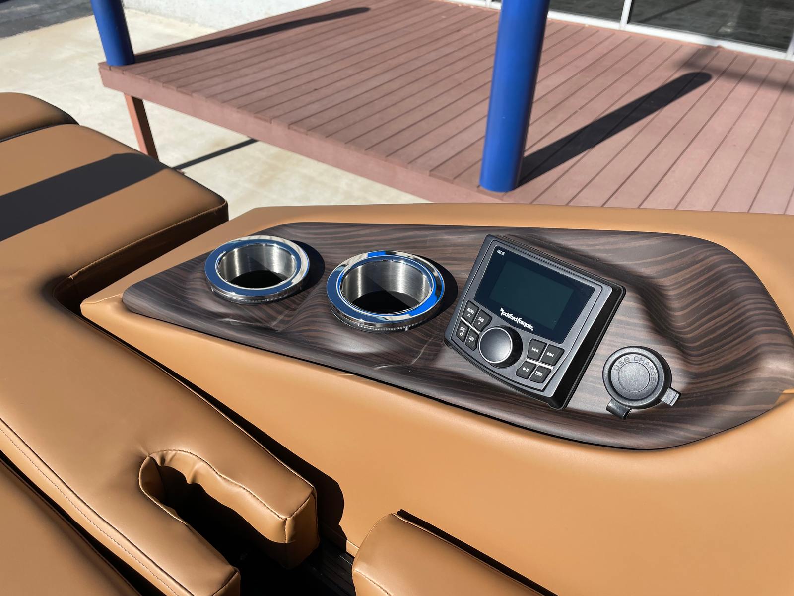 The Bennington 24 Rtsba V is loaded with special features designed to elevate your boating experience. Nine illuminated cupholders are strategically placed throughout the deck, ensuring your favorite beverages are always within reach, day or night. Exterior side lighting and toekick lights (2-72" 2-Bwrdr) create a captivating ambiance, perfect for evening cruises or dockside gatherings. The blackout logos add a touch of modern elegance, distinguishing this pontoon from the crowd.Music lovers will be thrilled with the premium Rockford Fosgate audio system, which includes two 8" M2 Arch Can Speakers, a powerful 10" M1 Subwoofer, and a dual M2 amplifier upgrade. The Rockford Fosgate PMX-1R Head Unit Remote, complete with Sirius Satellite Radio, ensures you have access to your favorite playlists and stations wherever your journey takes you. These features combine to create an immersive sound experience, transforming every trip into a floating concert.