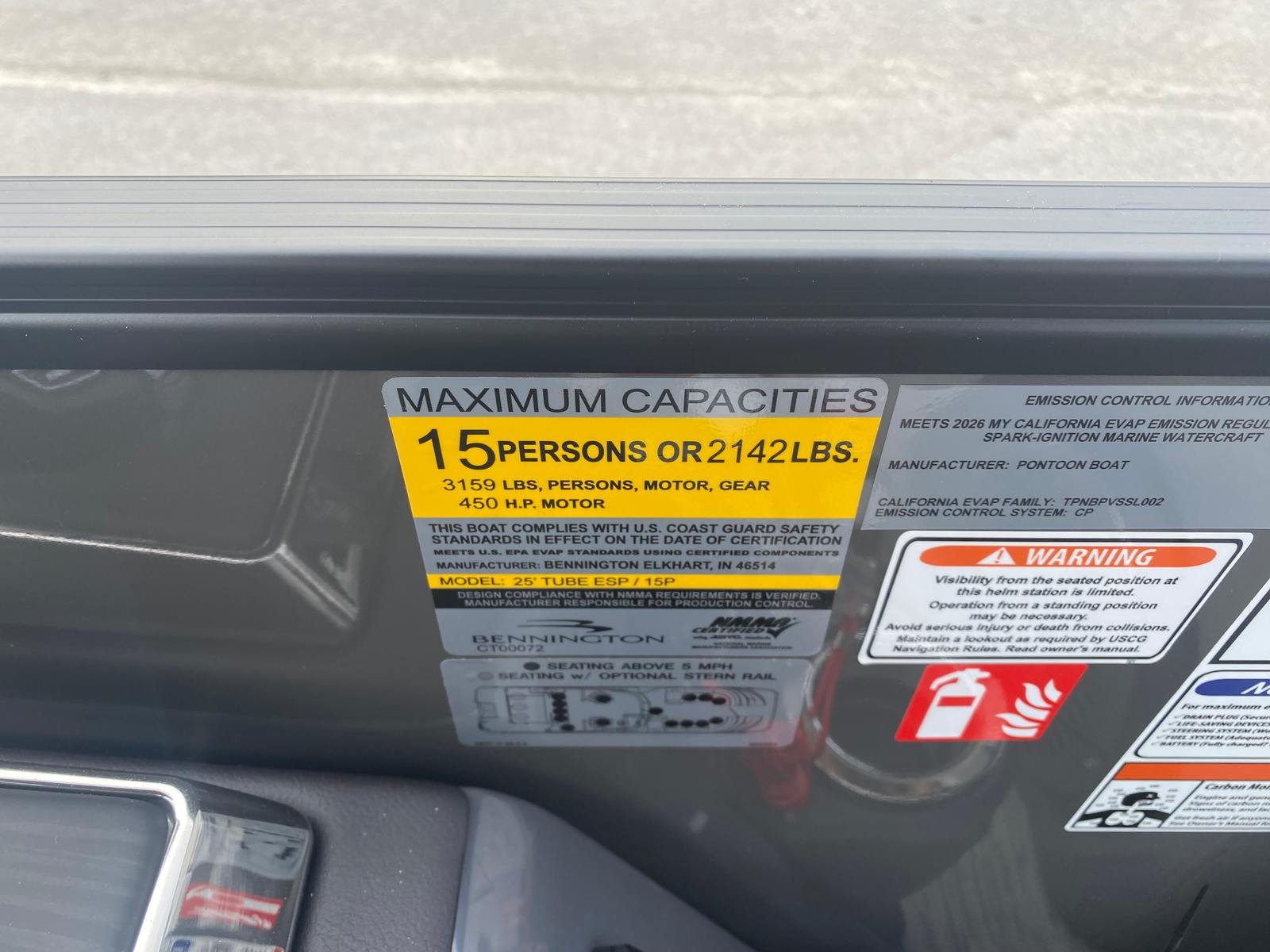 The 2026 Bennington 25 Qsba ESP is a brand-new pontoon boat that stretches an impressive 28.25 feet in length, offering ample space for relaxation, socializing, and fun. With its sleek lines, modern design, and attention to detail, this Bennington pontoon stands out on any lake or river. The Midnight Black canvas and blackout logos create a sophisticated, head-turning profile, while the Zebrawood Matte Slate accents add a touch of refined elegance to the overall aesthetic.